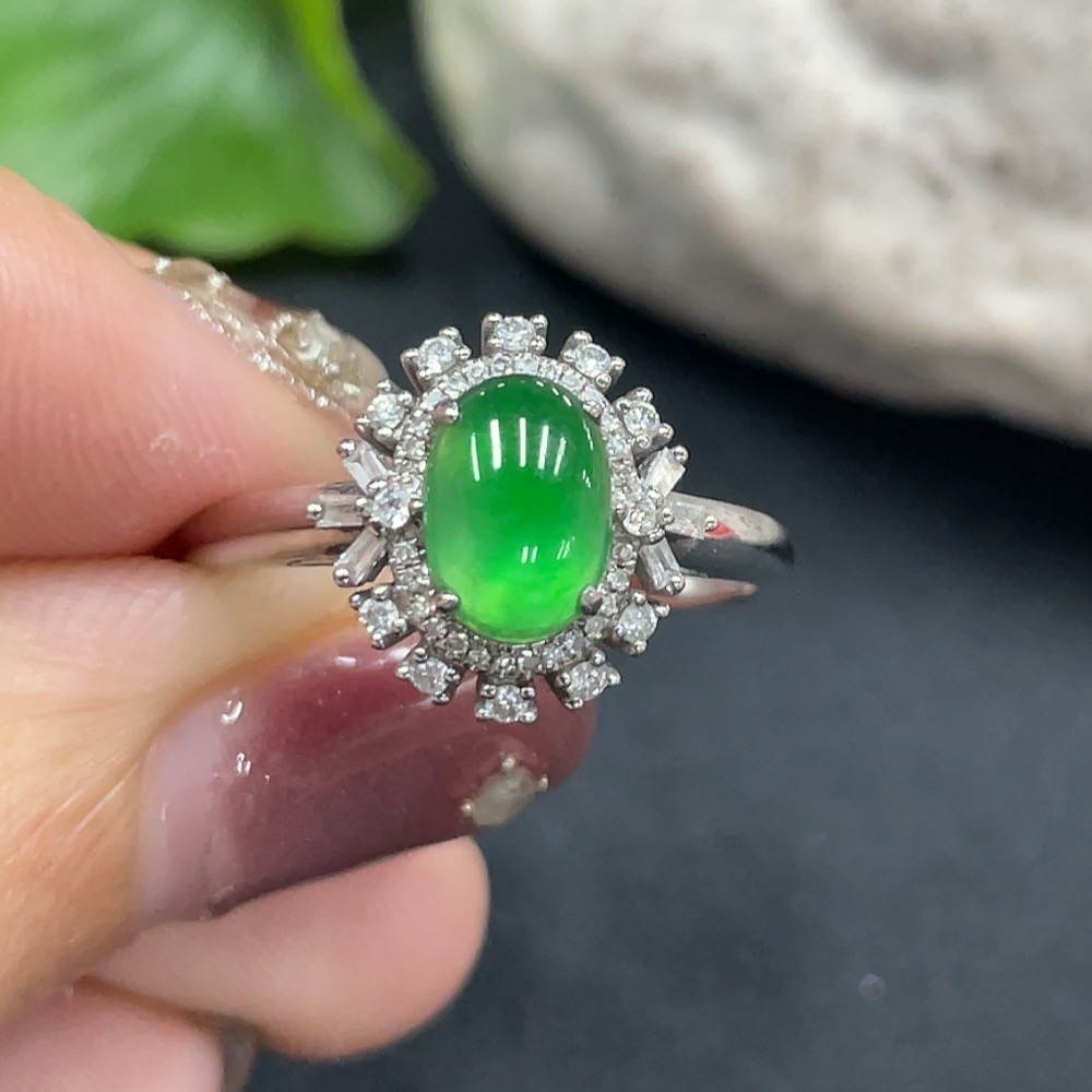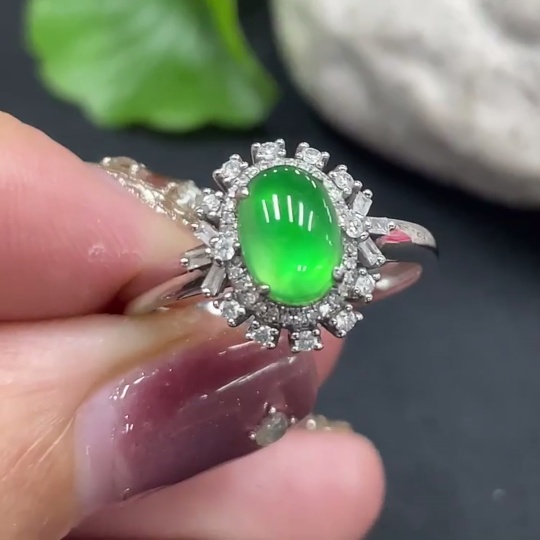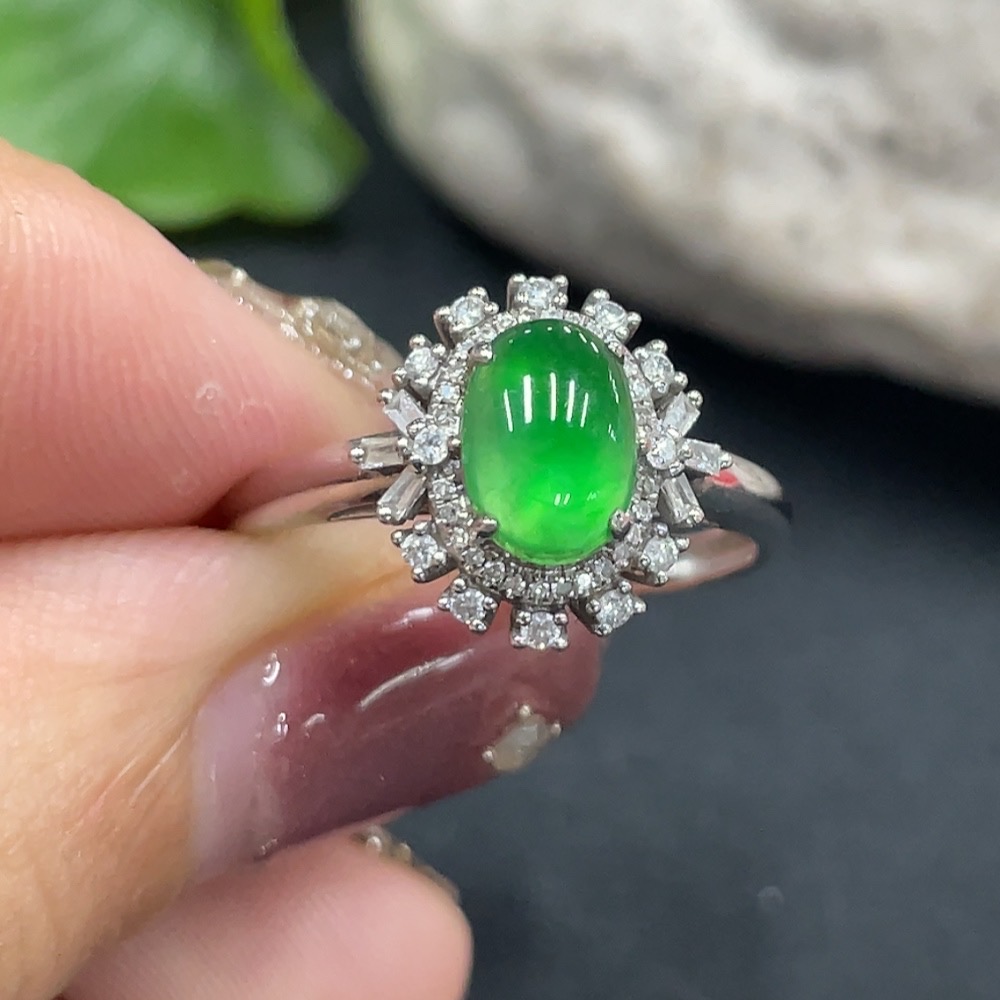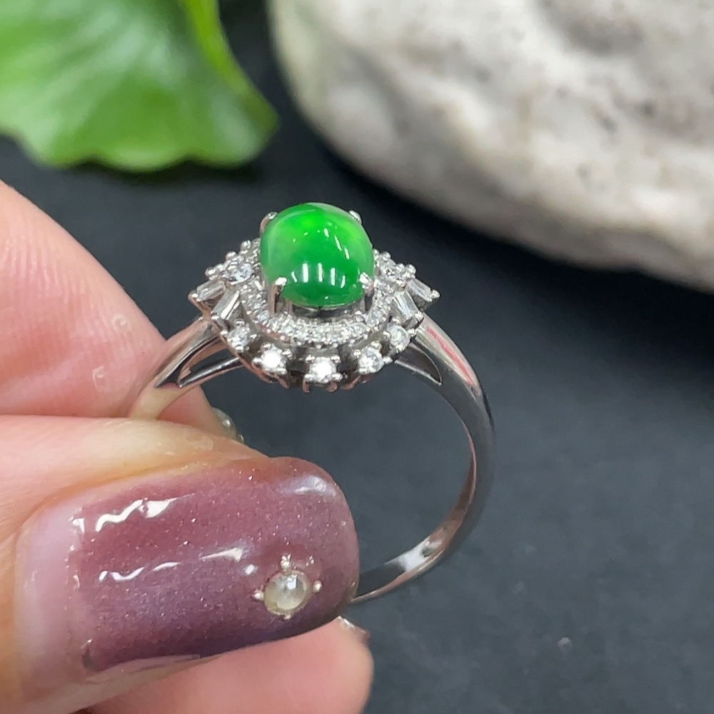 Jadeite Cabochon Ring 18K Gold Setting Size 16 Total Weight Approx. 2.81g