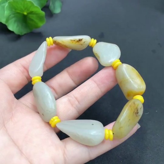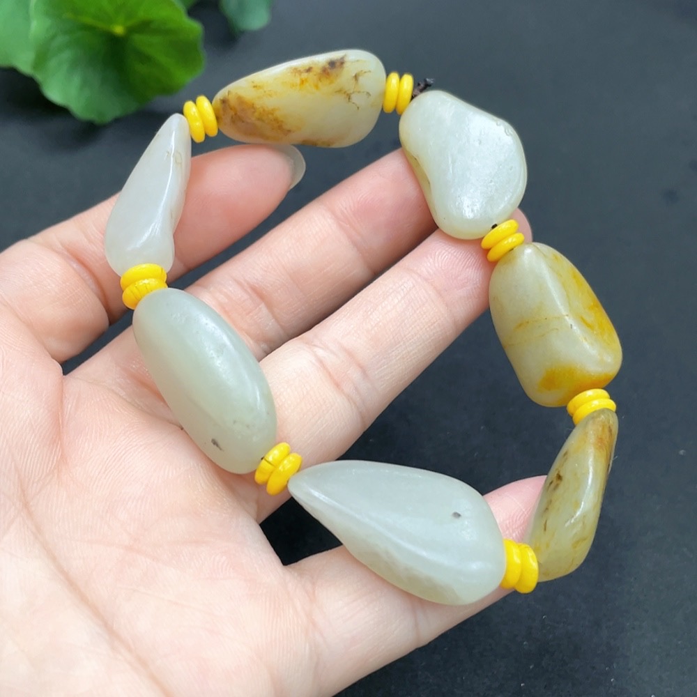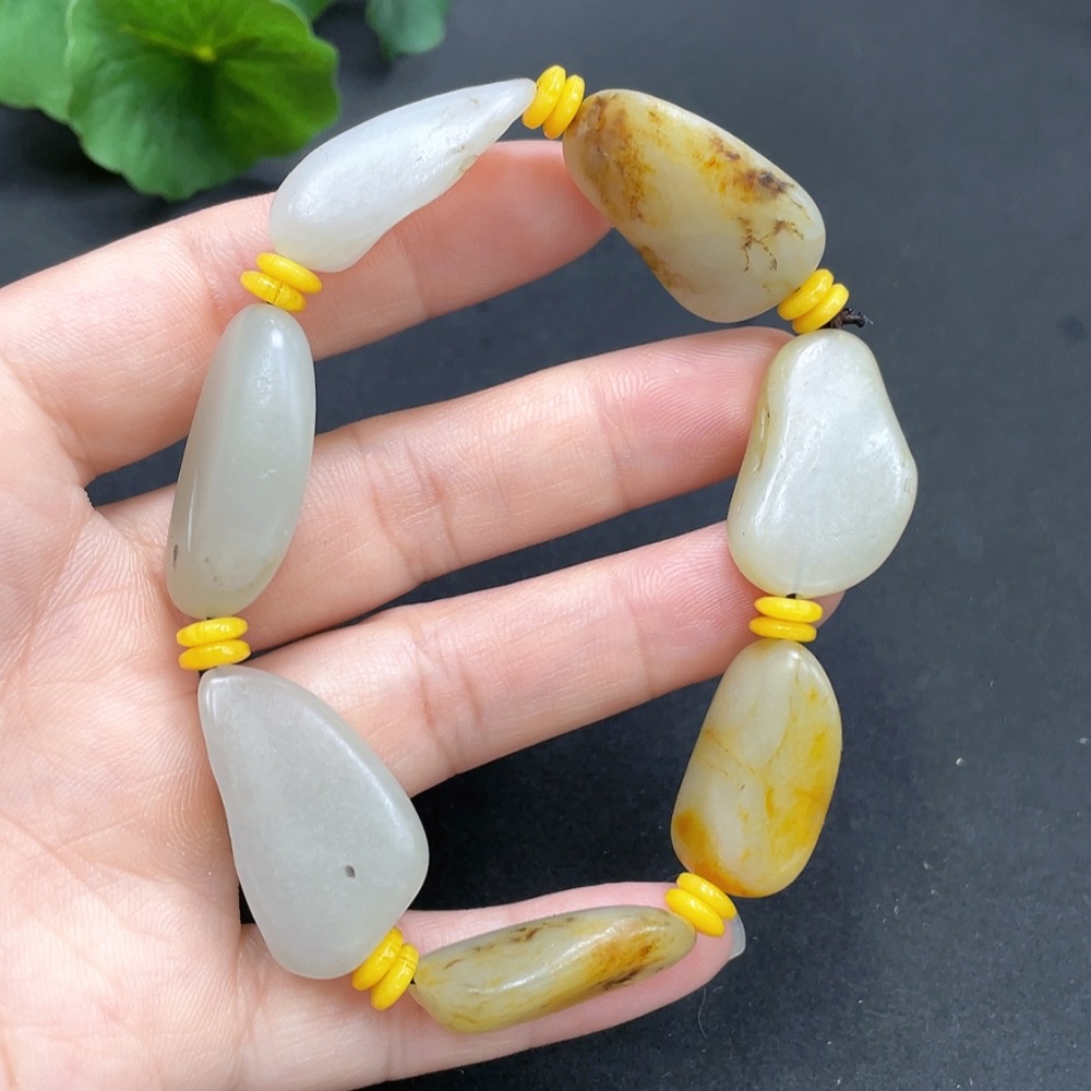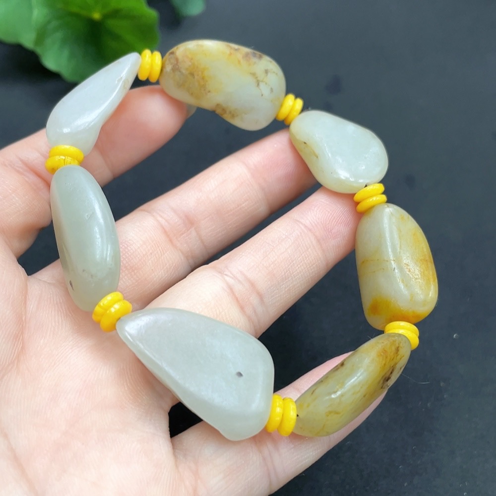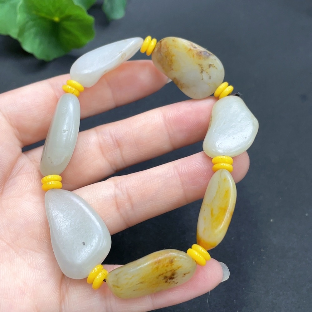 Hetian Jade Seed Bead Bracelet, Undetermined Skin Color Origin, Matching Beads Not Hetian Jade, Total Weight Approx. 38.4g