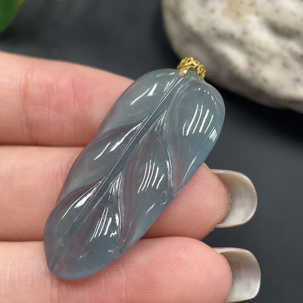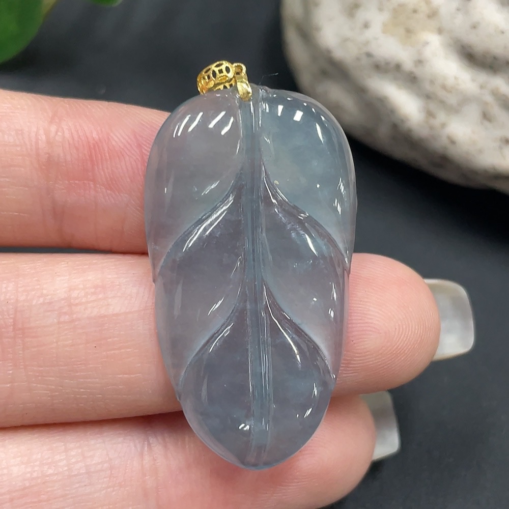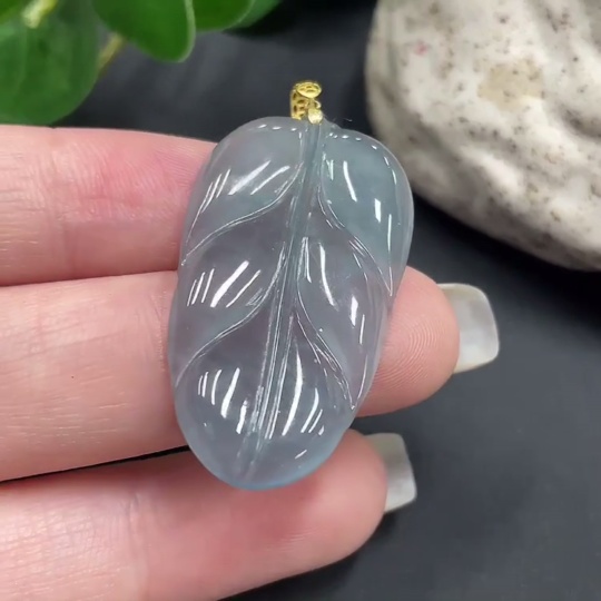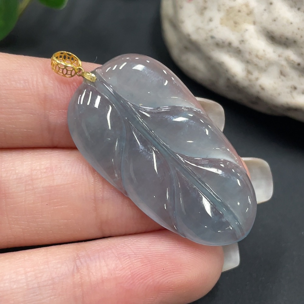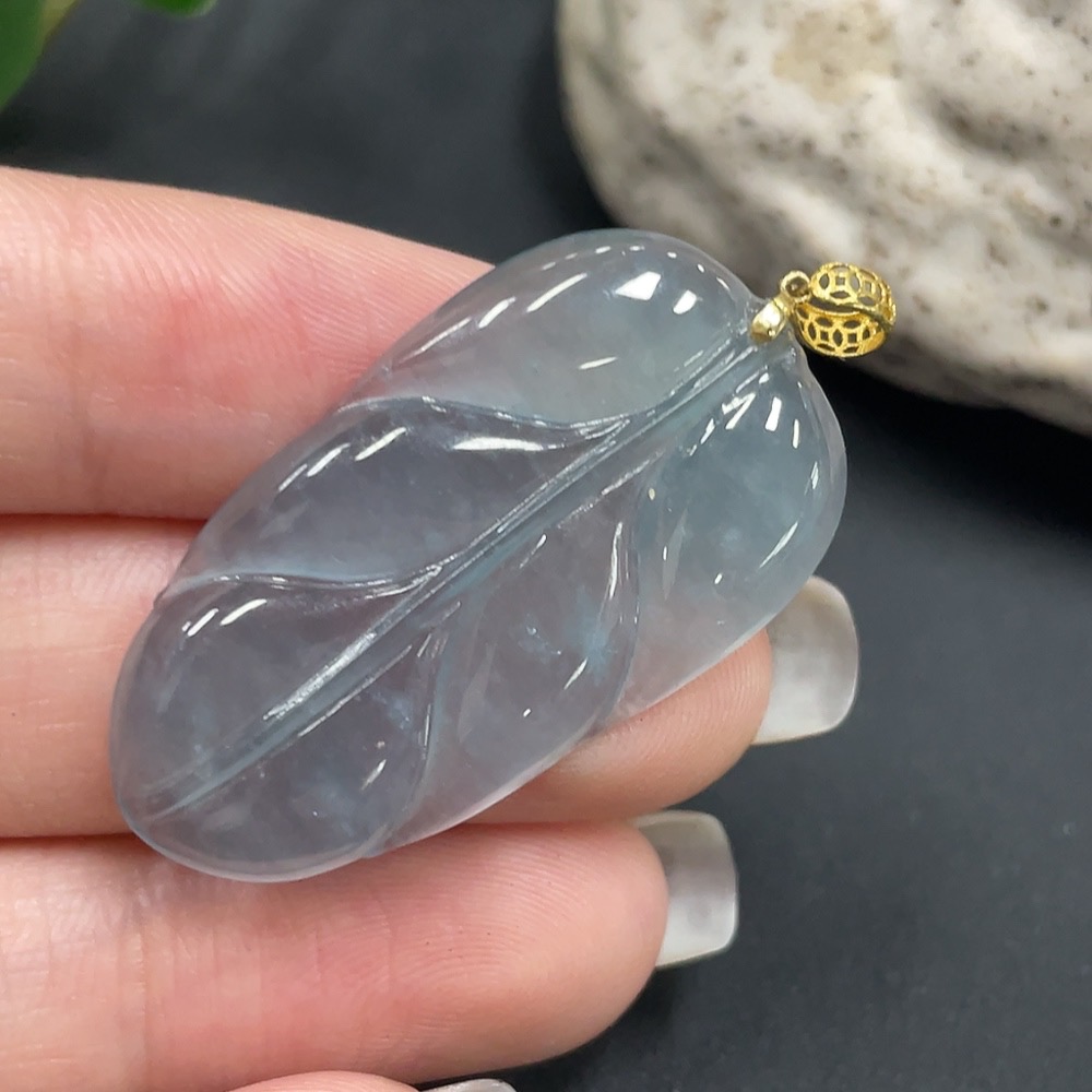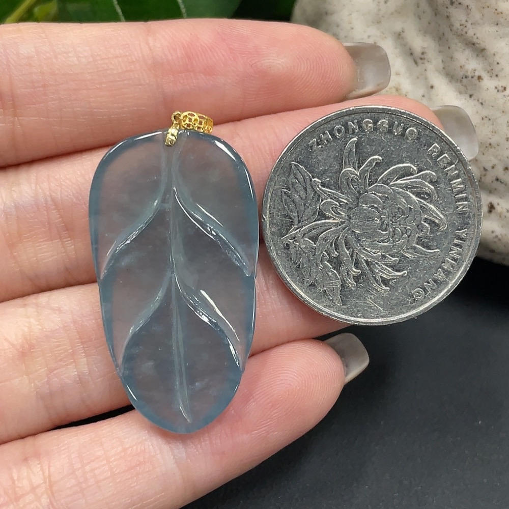 JadeitePendant Leaf with 18K Gold Clasp Total Weight 4.624g