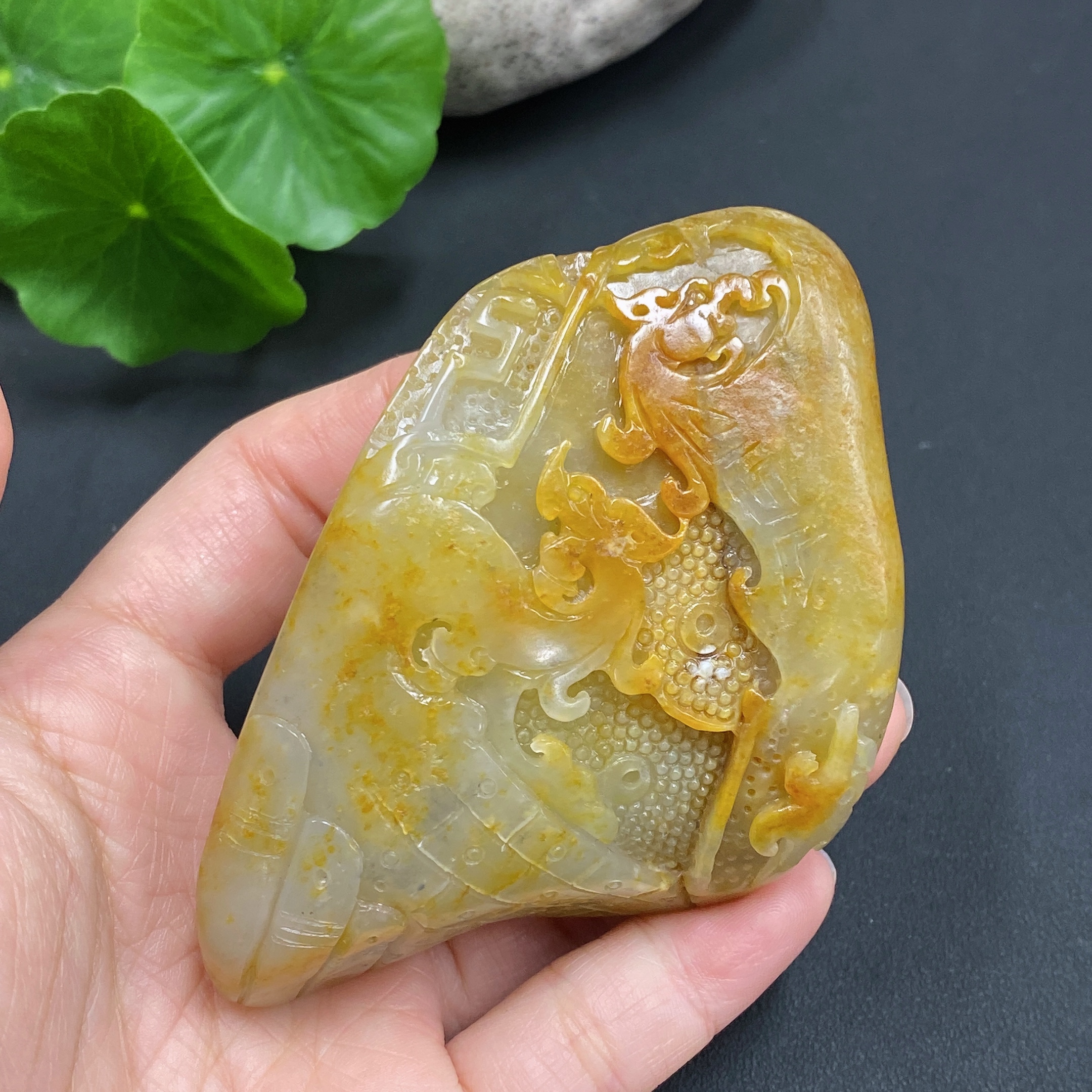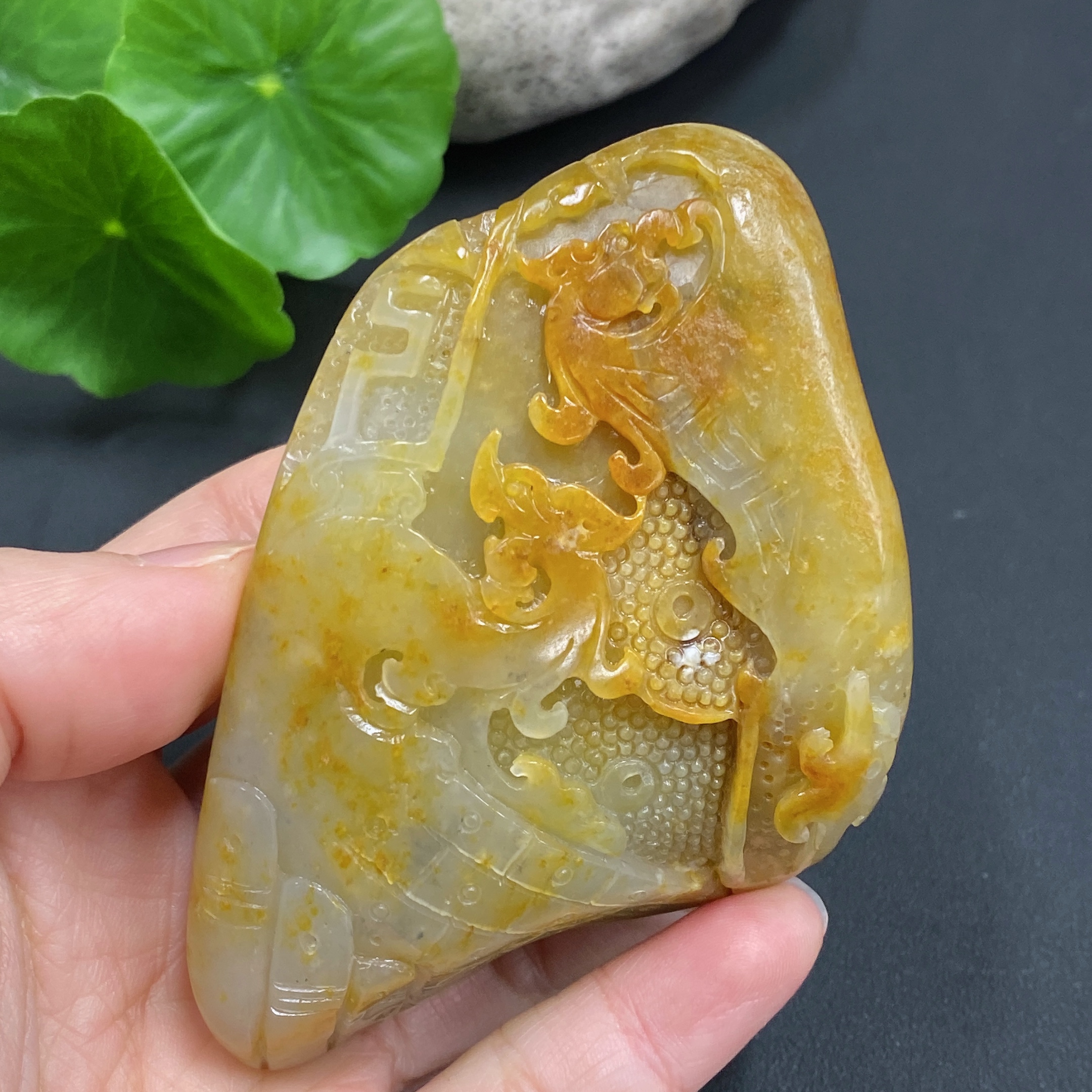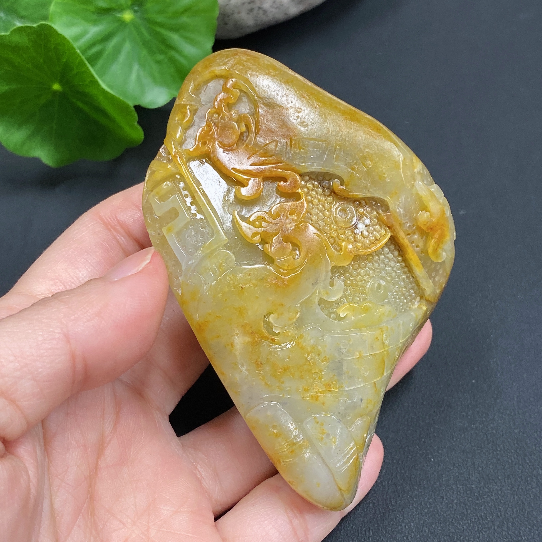 Hetian Jade Handheld Piece - Auspicious Beast, Total Weight Approx. 146.1g, Undetermined Skin Color Origin