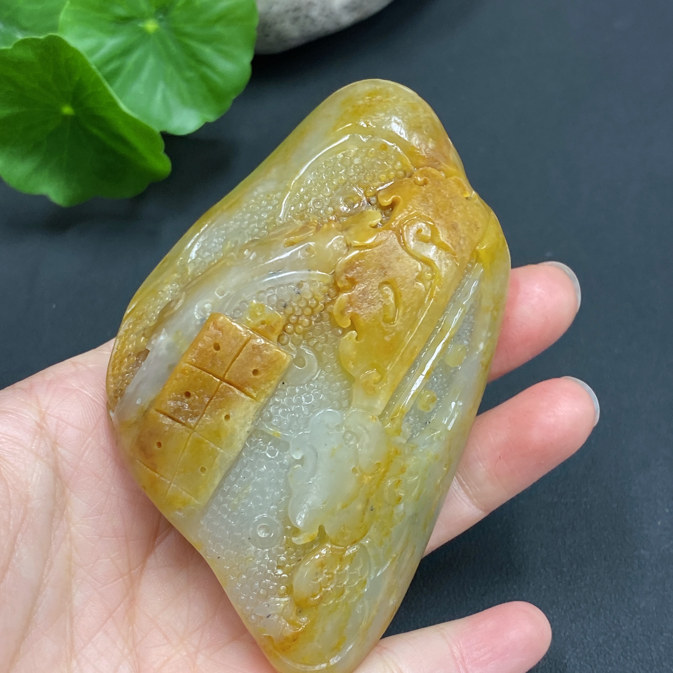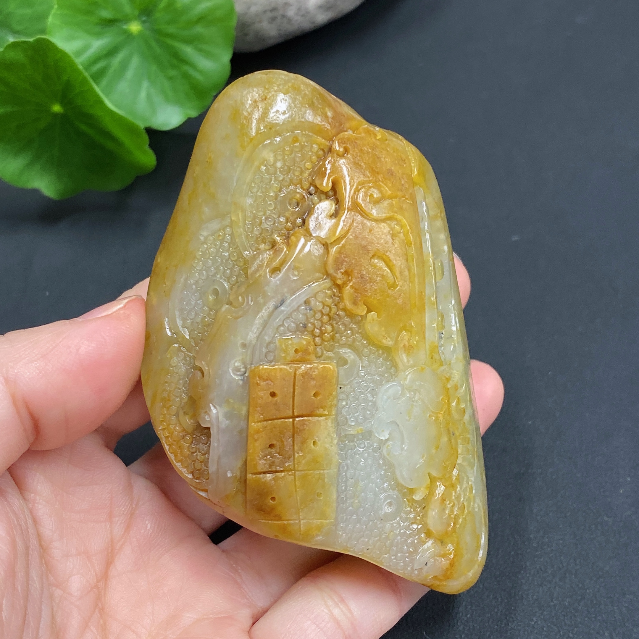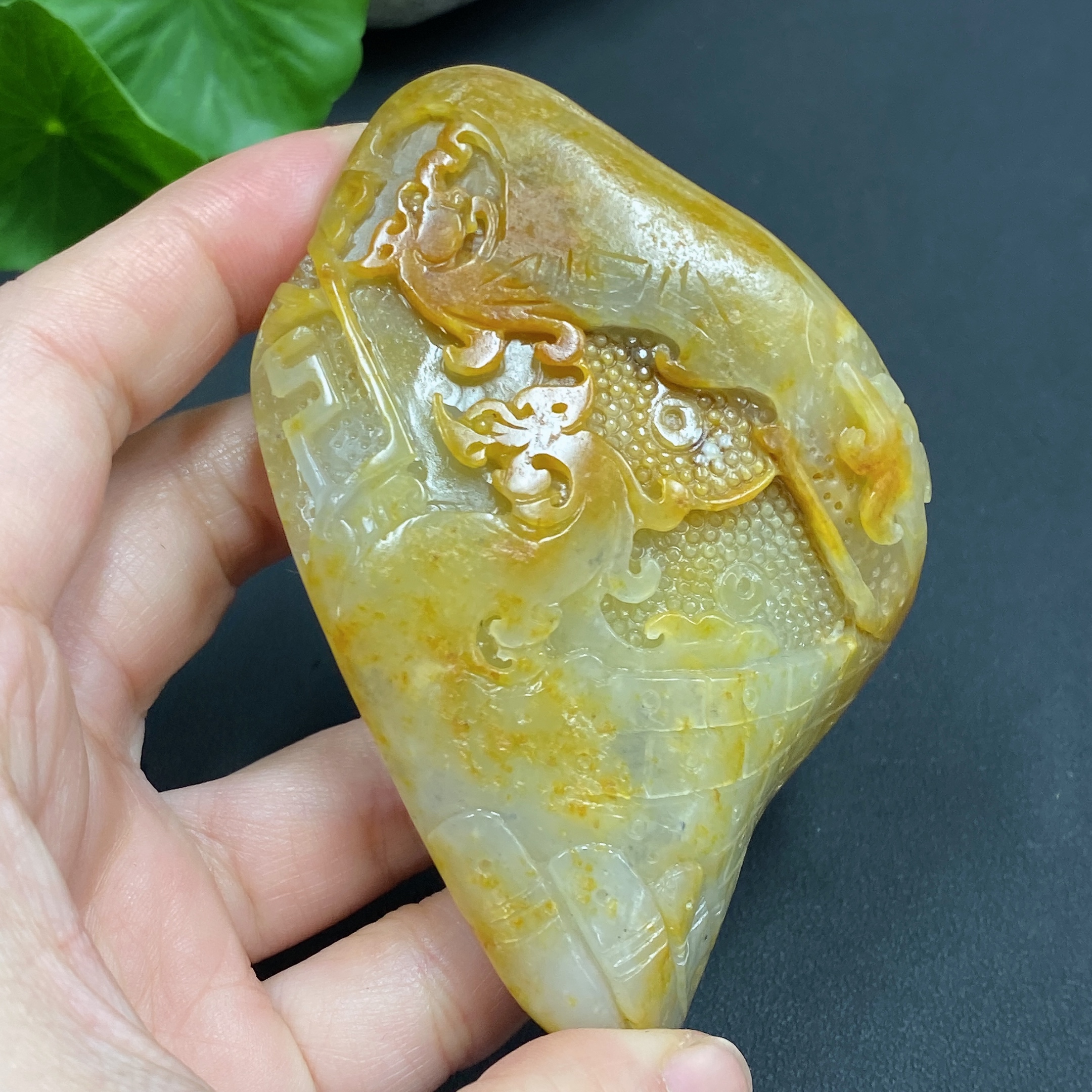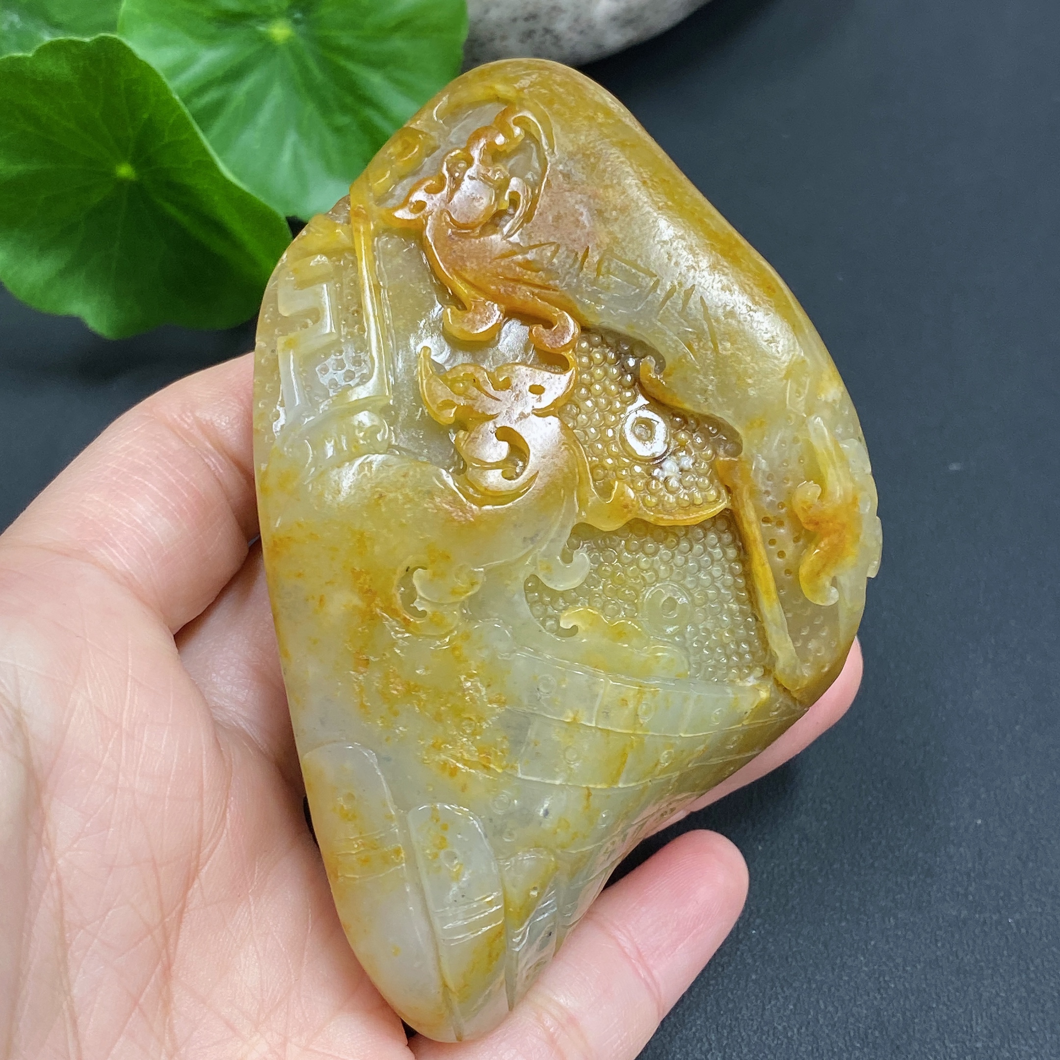 Hetian Jade Handheld Piece - Auspicious Beast, Total Weight Approx. 146.1g, Undetermined Skin Color Origin