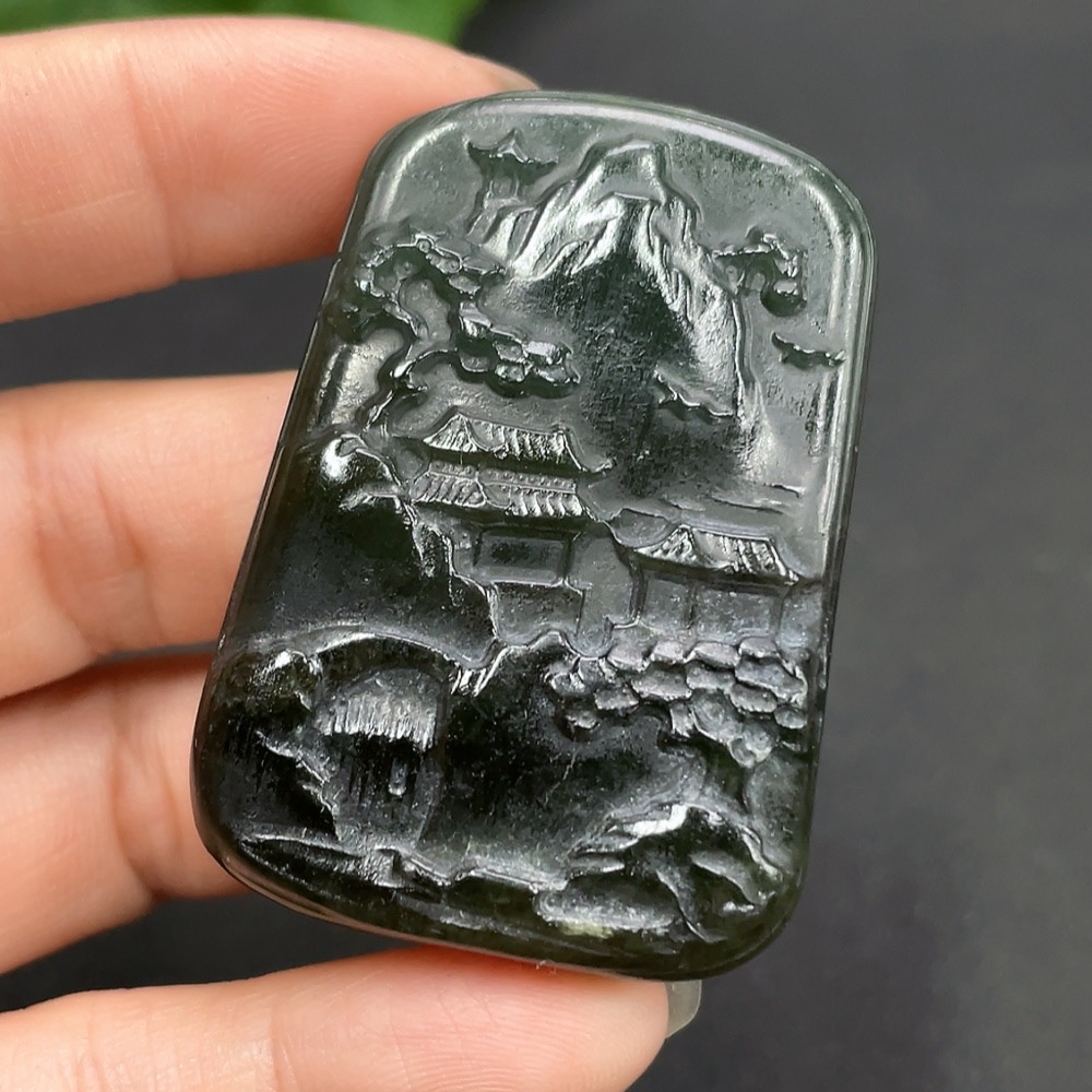 Trezaar - Hetian Jade Pendant - Landscape Plaque, Total Weight Approx.30g