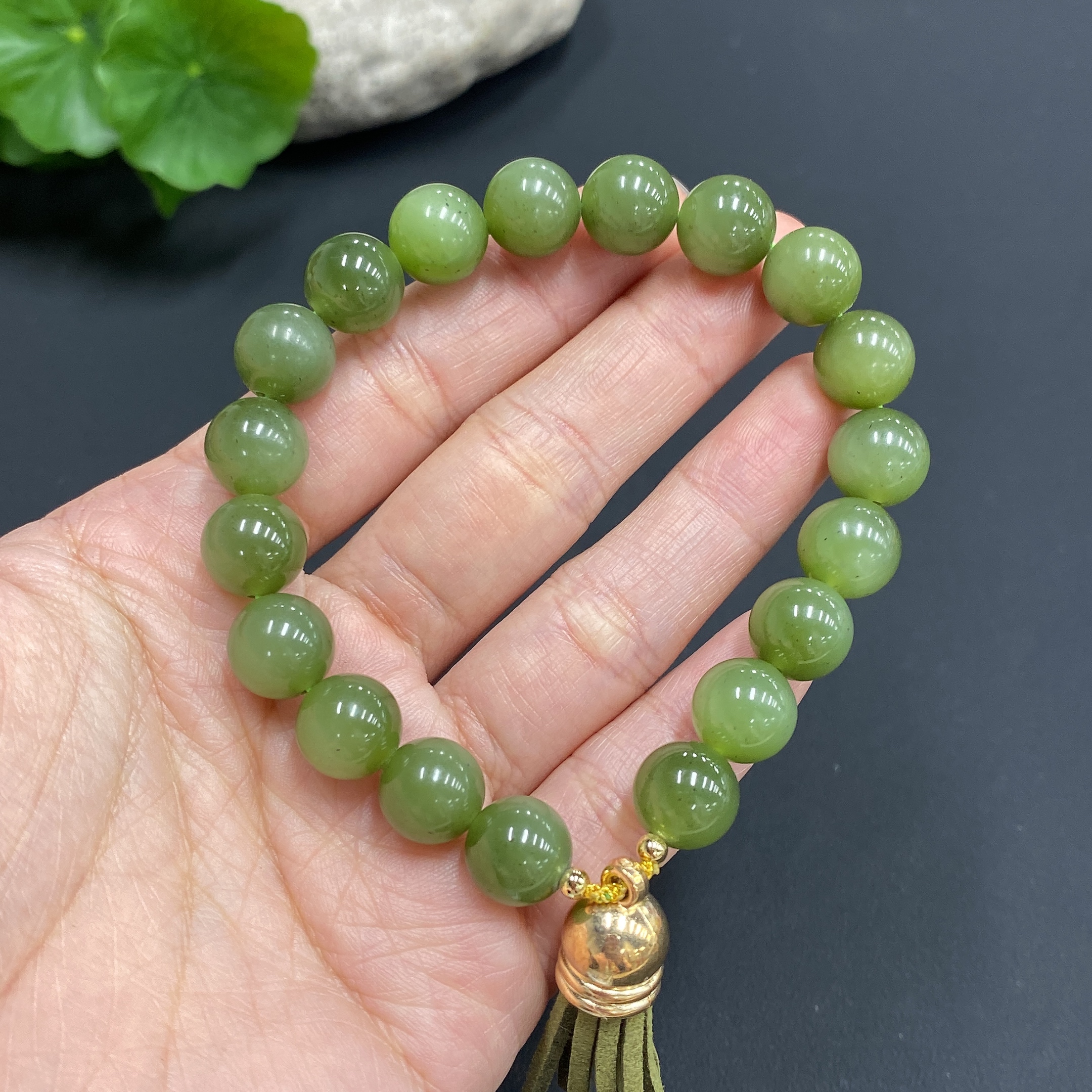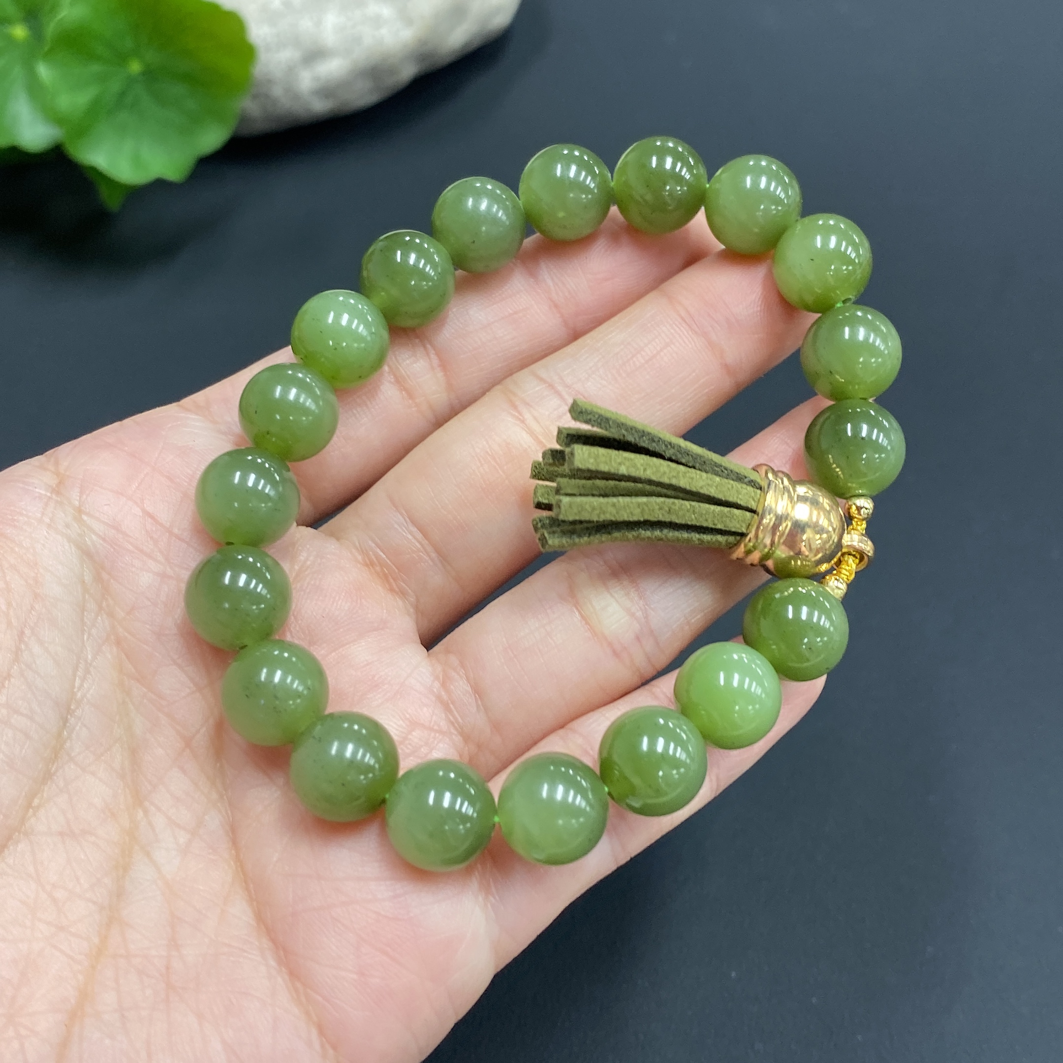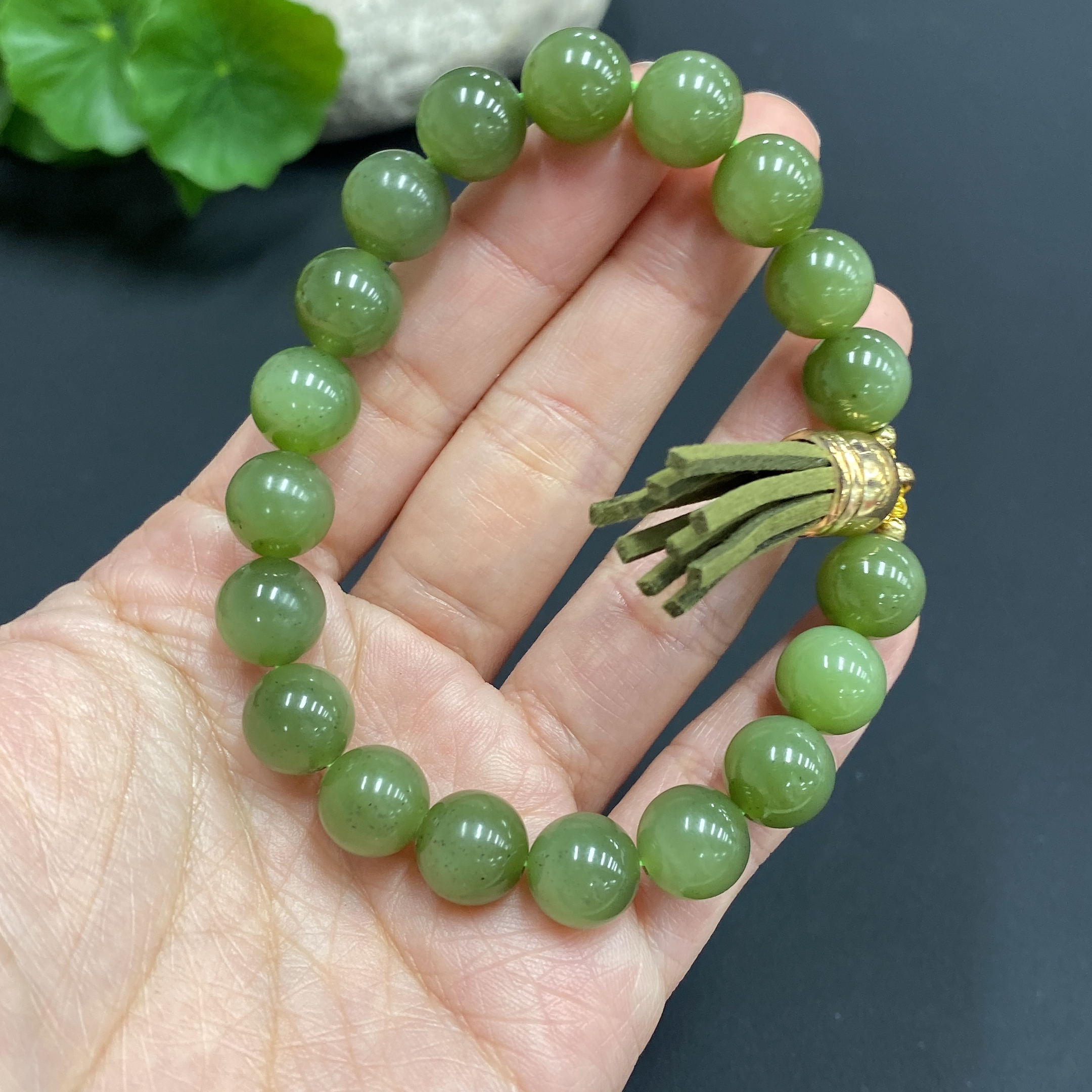 Khotan Jade Bead Bracelet, approx. 9.5mm, total weight approx. 29.7g, non-gold inlaid