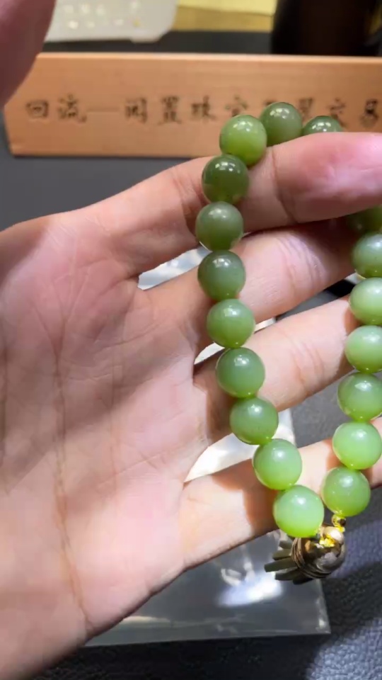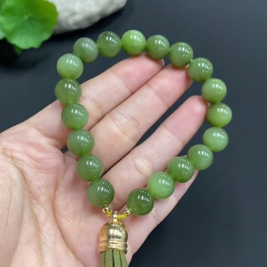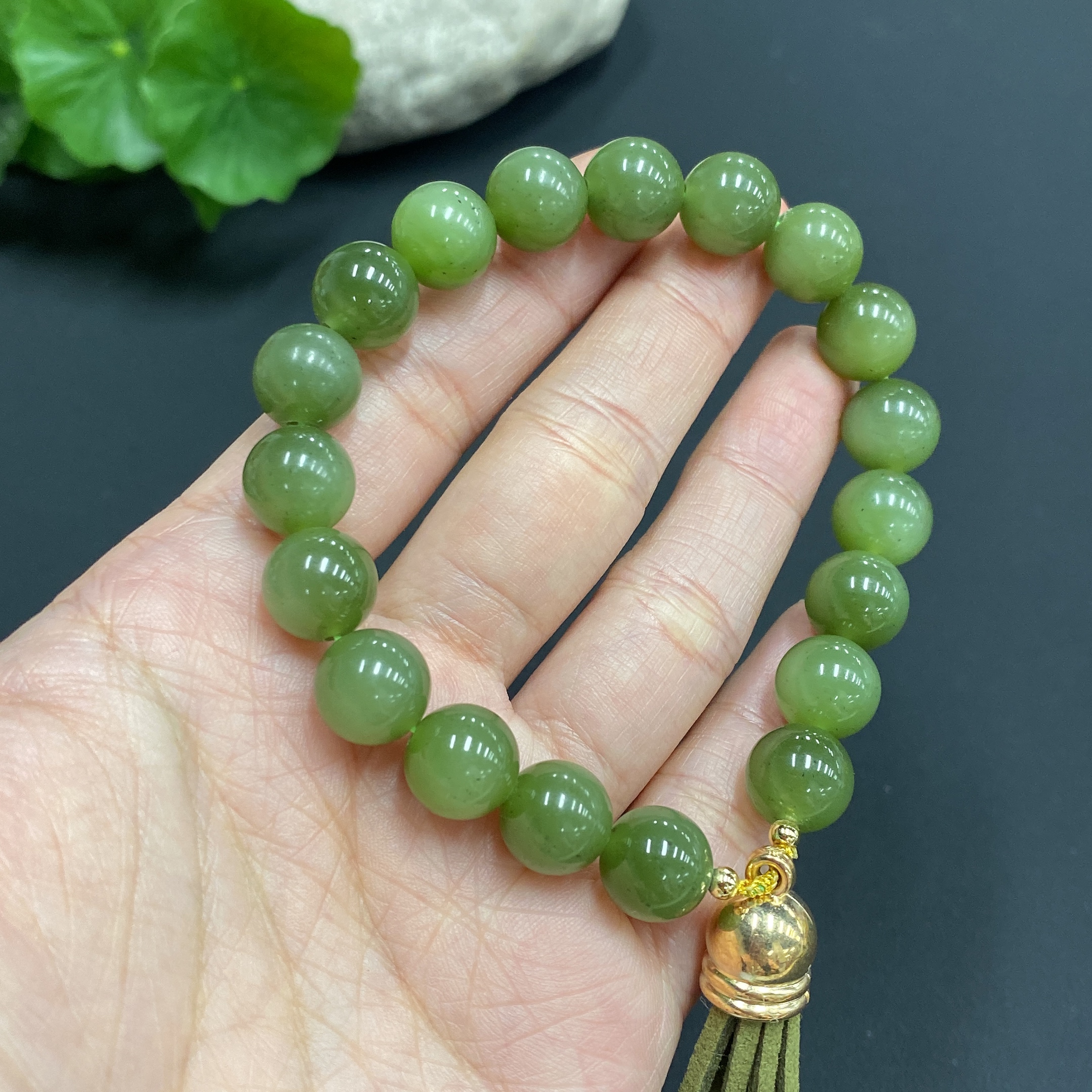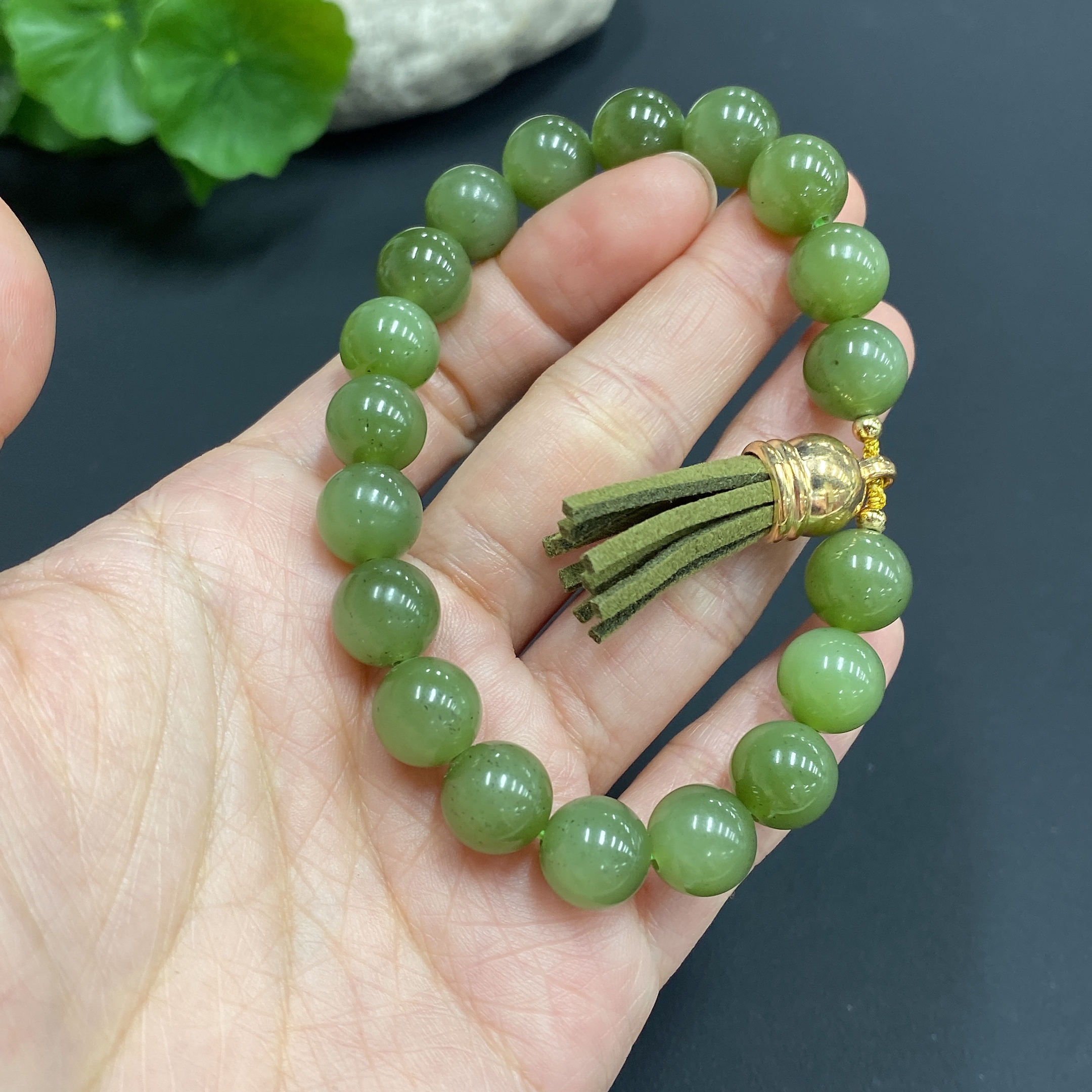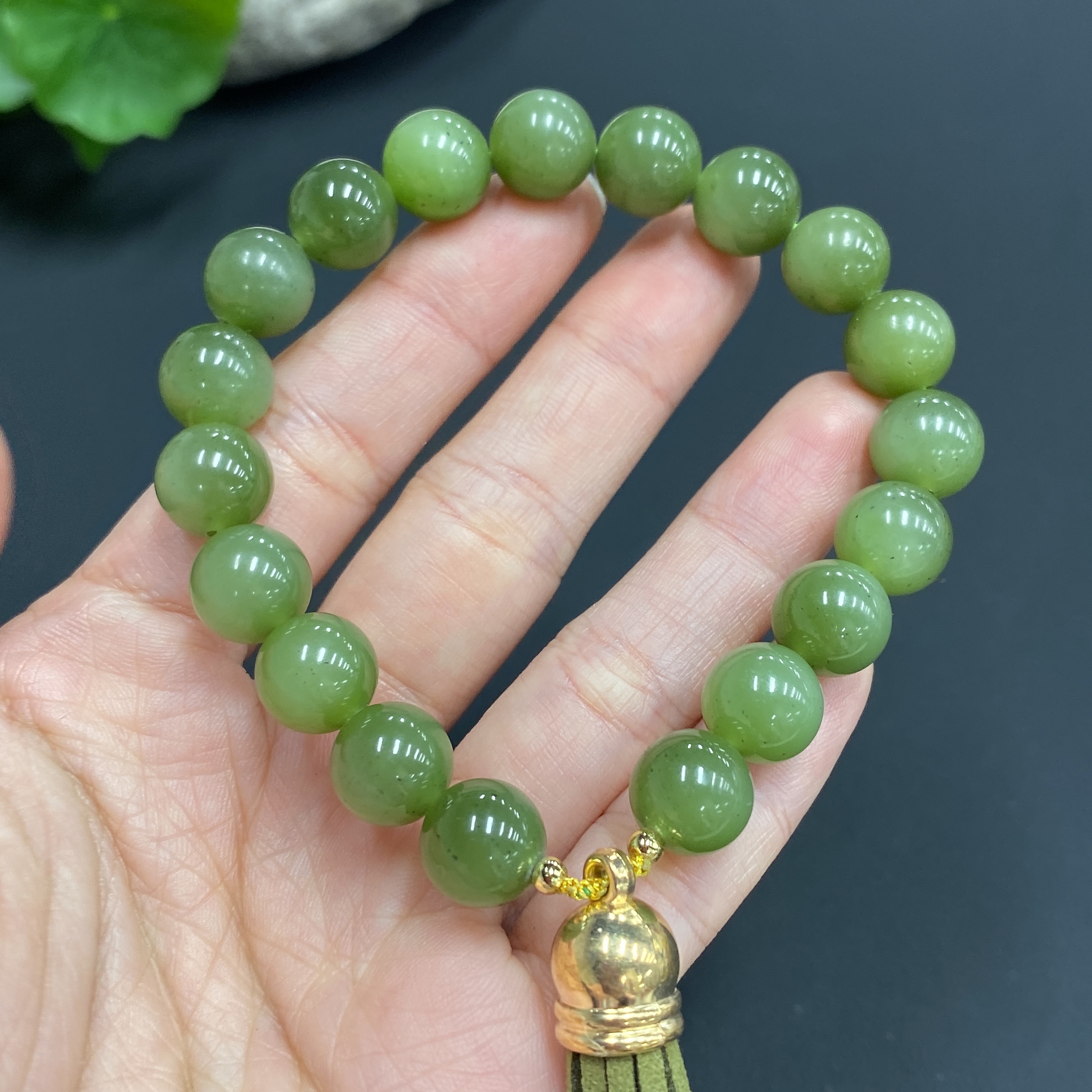 Khotan Jade Bead Bracelet, approx. 9.5mm, total weight approx. 29.7g, non-gold inlaid