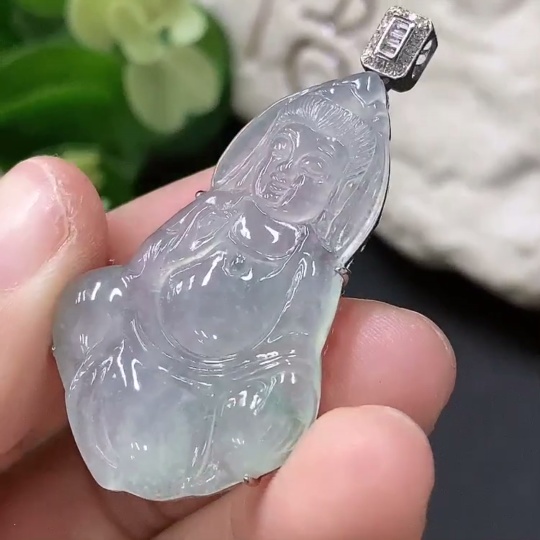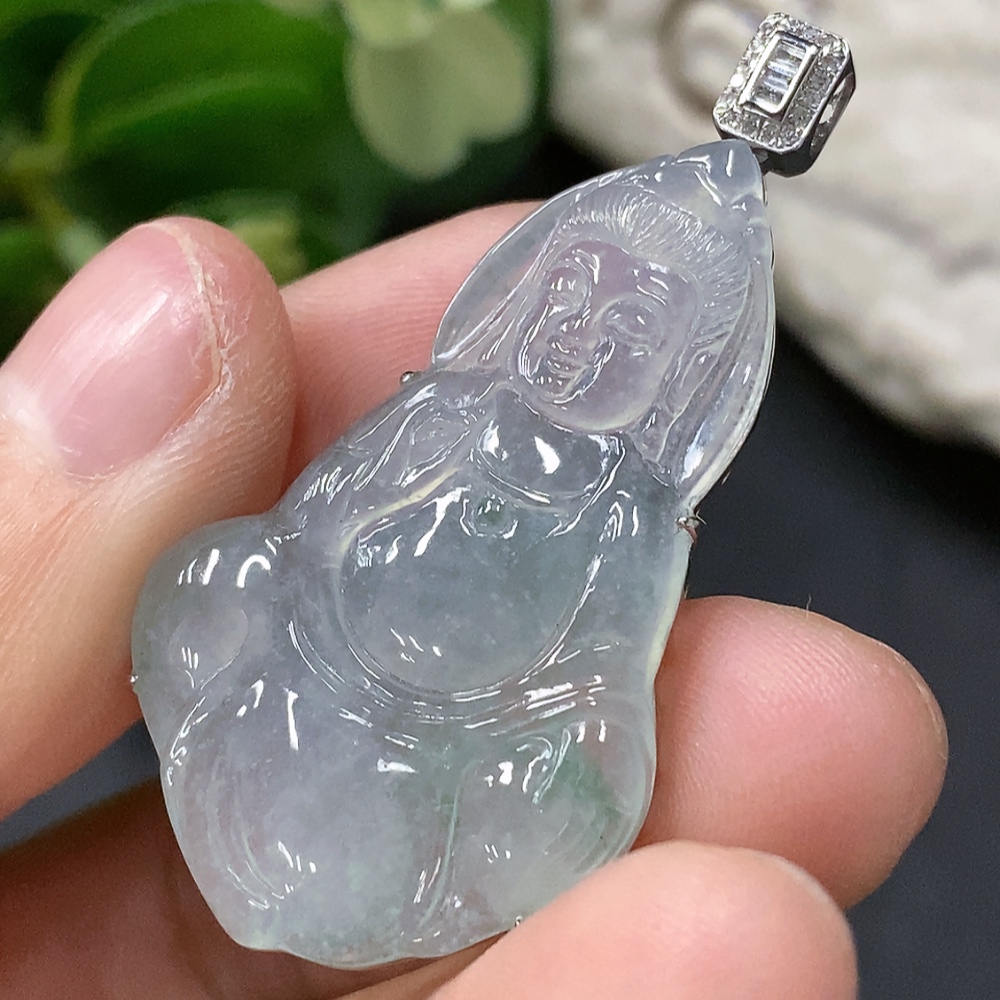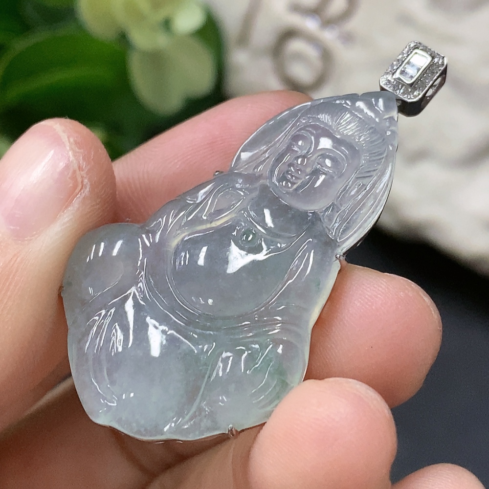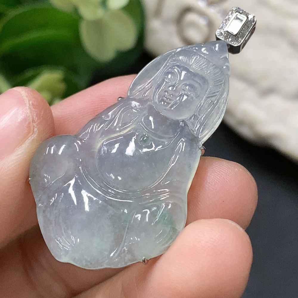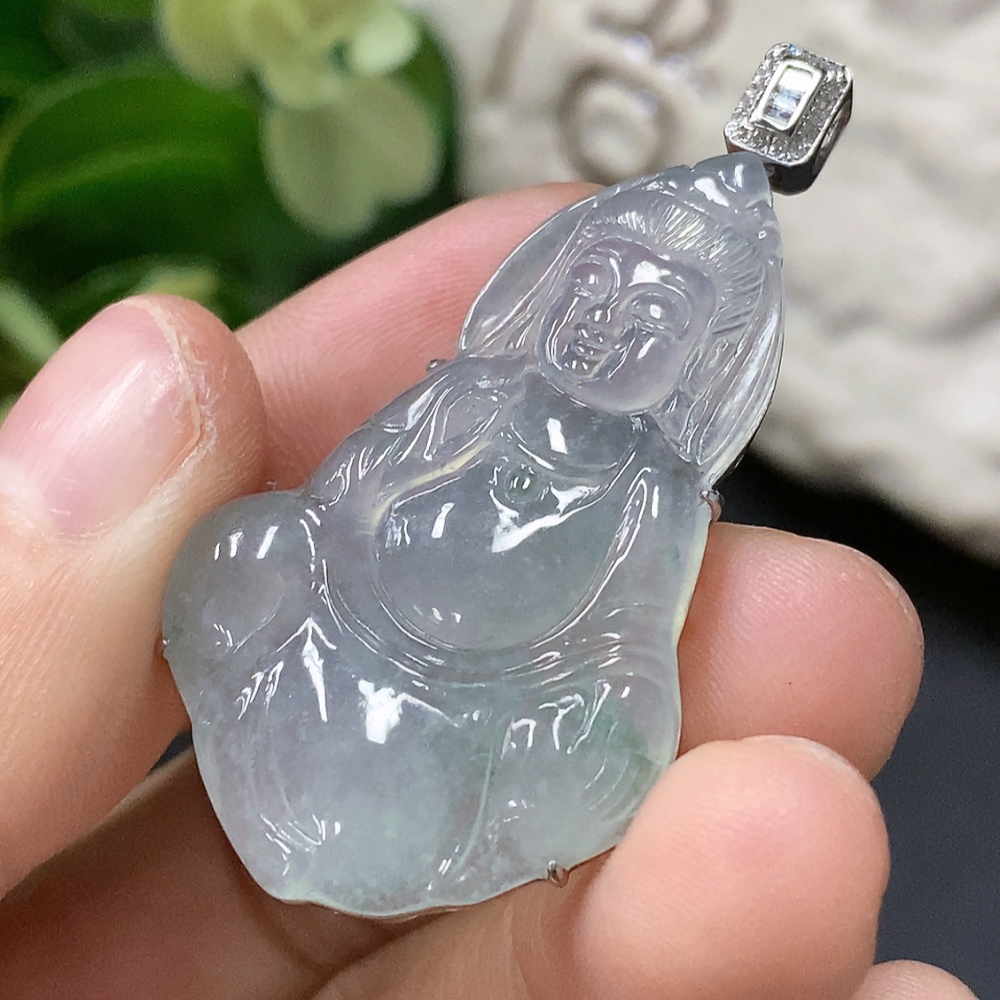 Baby Guanyin Jadeite Pendant with 18K Gold Inlay, Approx. 6.4g