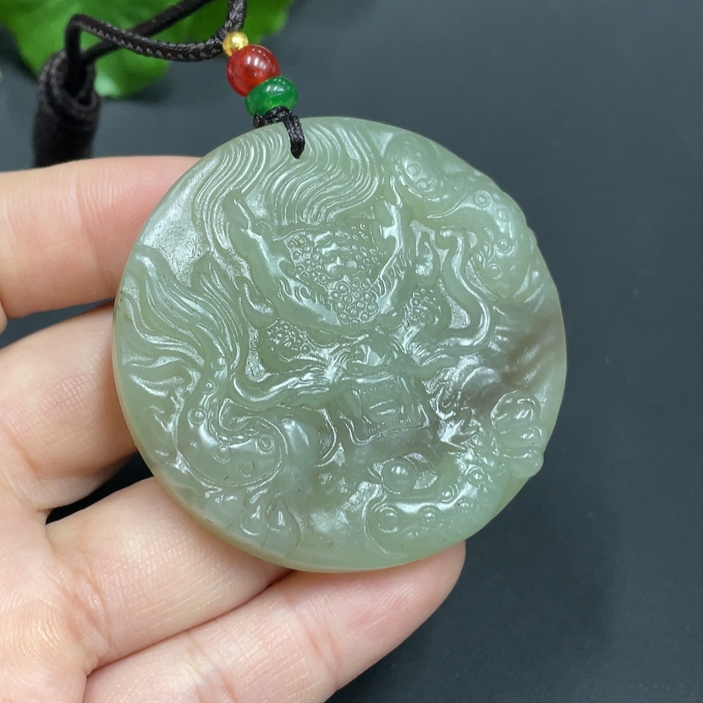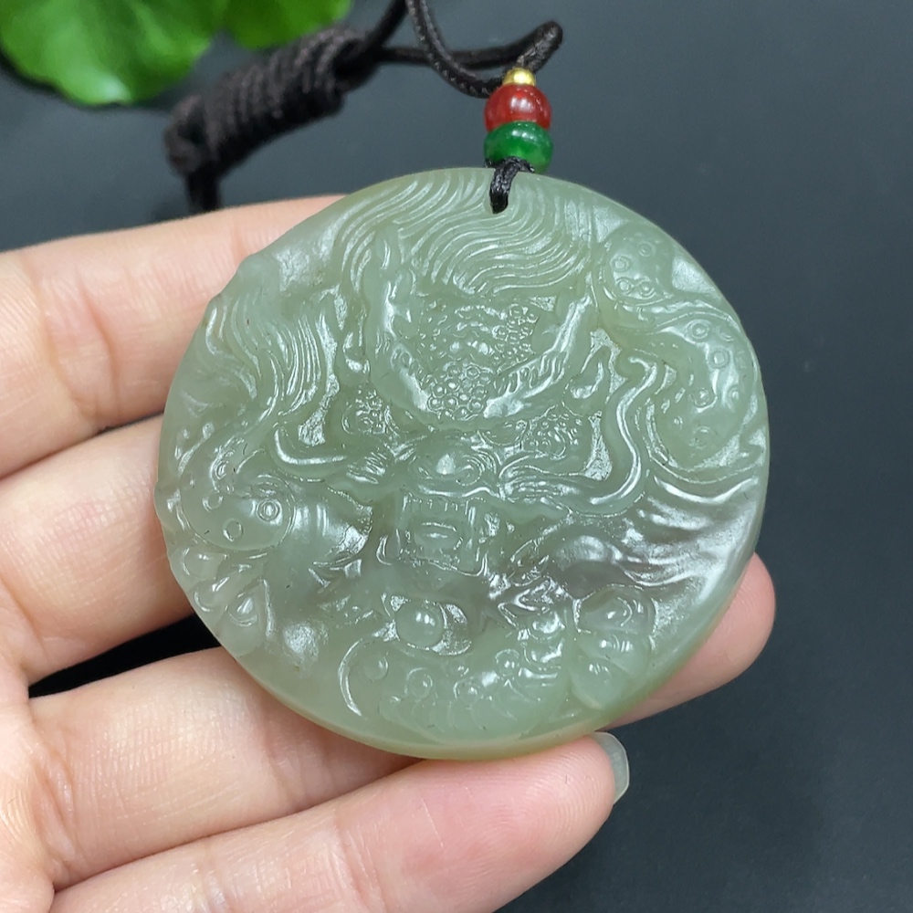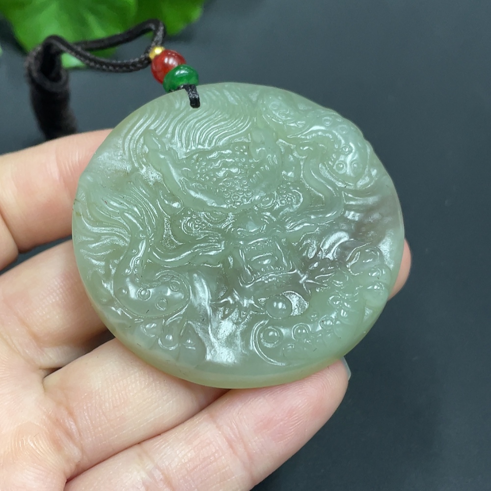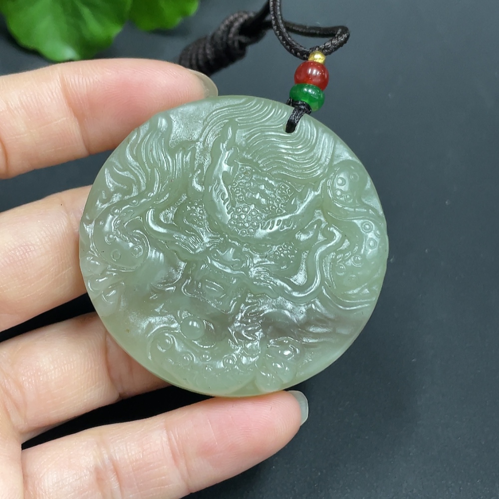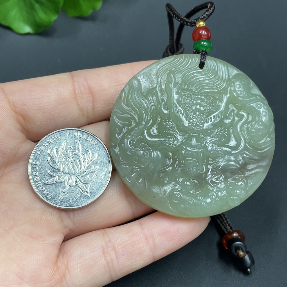 Hetian Jade Pendant Dragon Plaque Total Weight (with rope) 51.1g