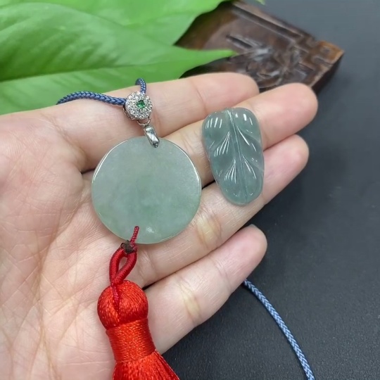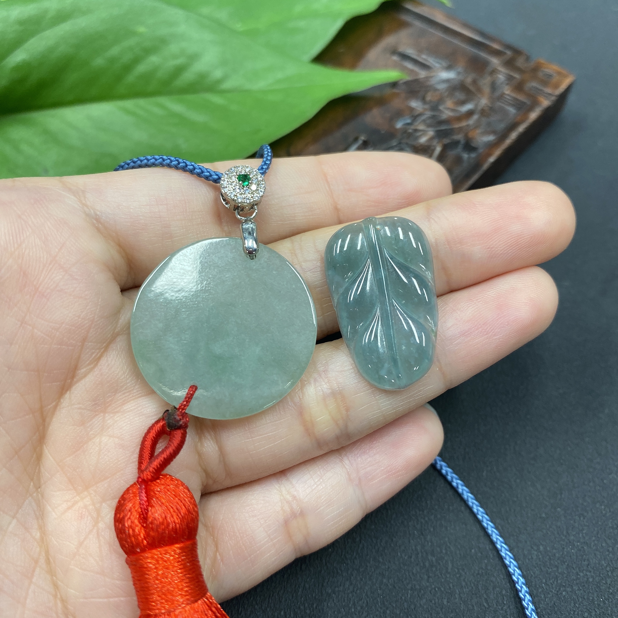 Jadeite Pendant Two Pieces Sell as a Lot Some with Cracks 925 Clasp Some with Veins