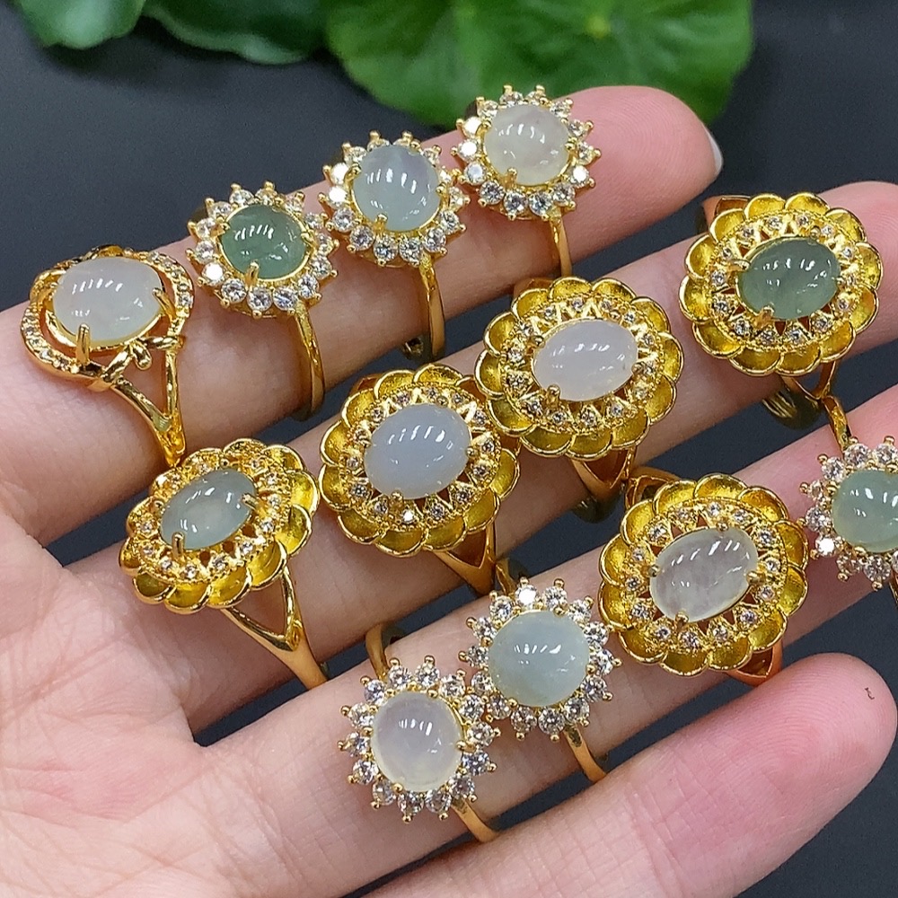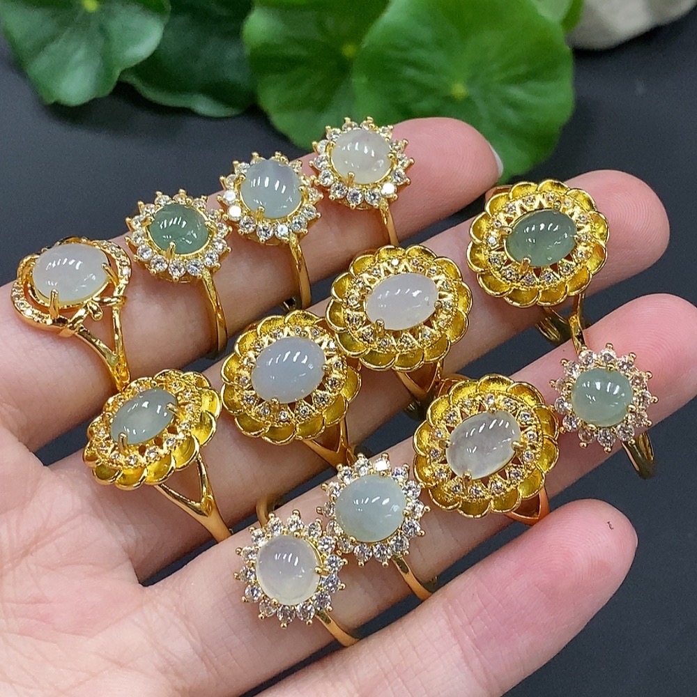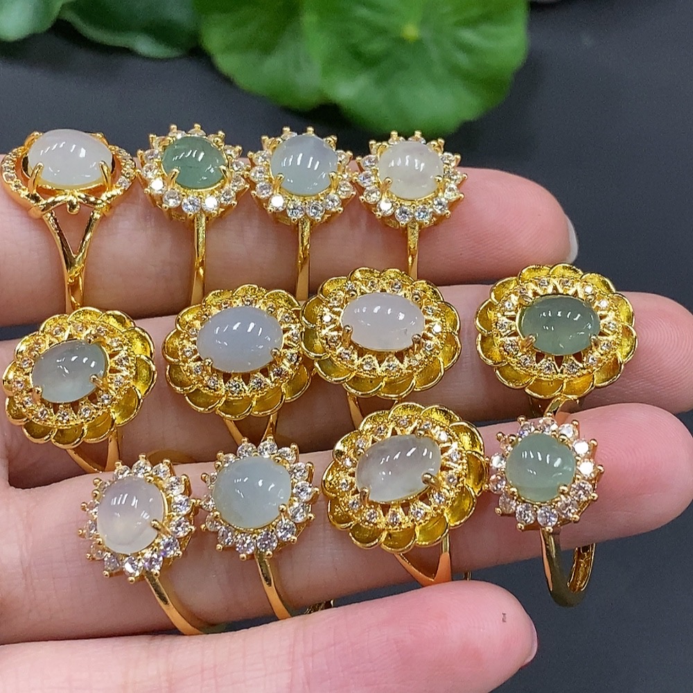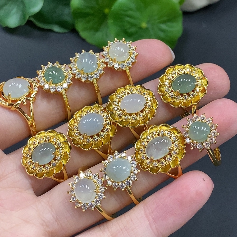 Jadeite Cabochon Ring (No Metal Inlay, Adjustable Shank)