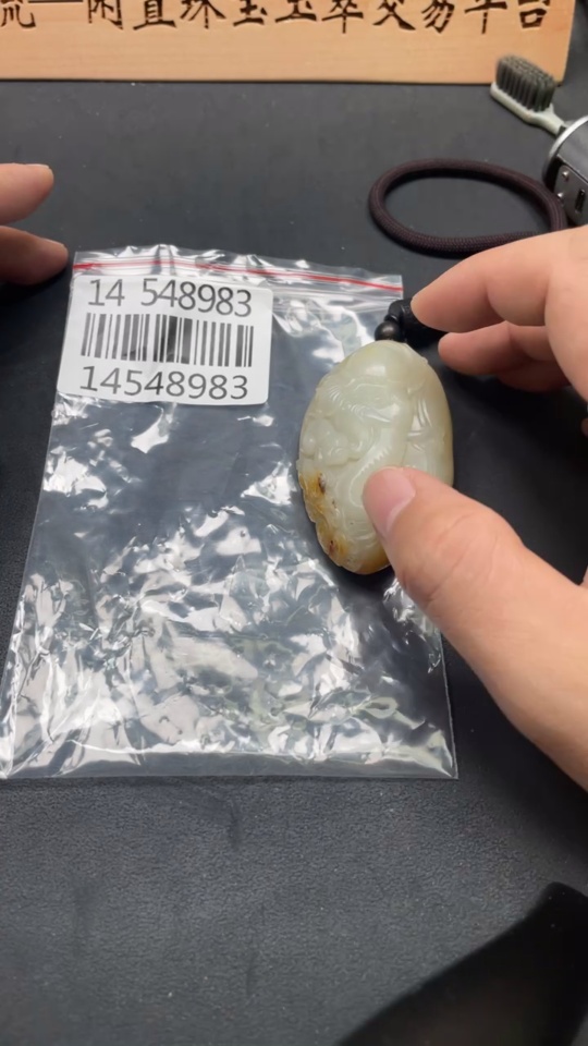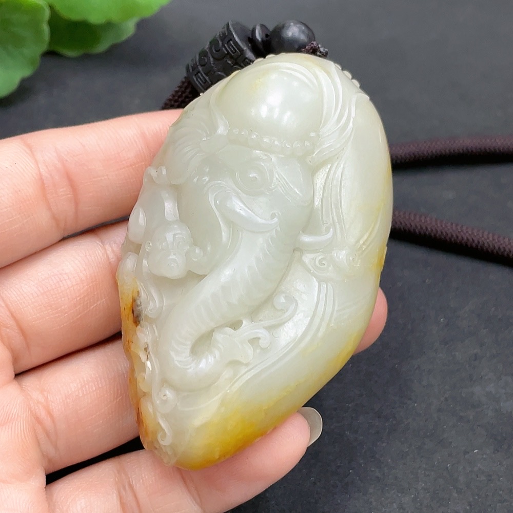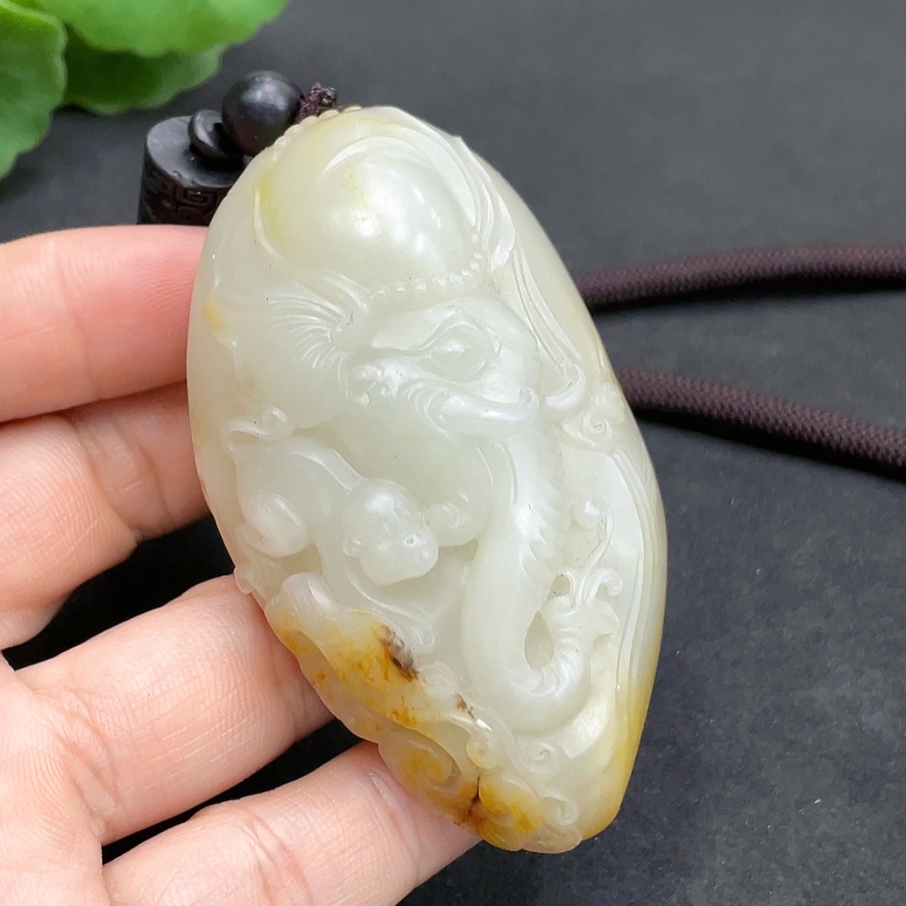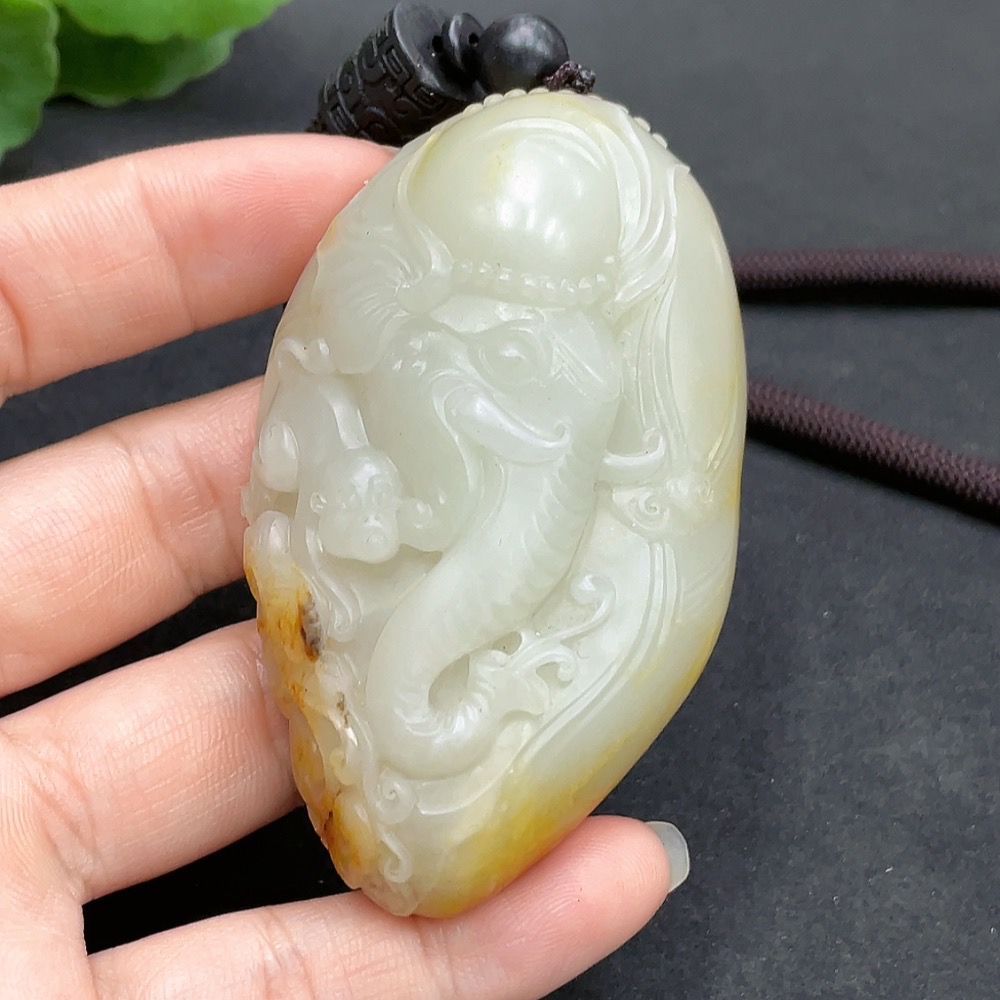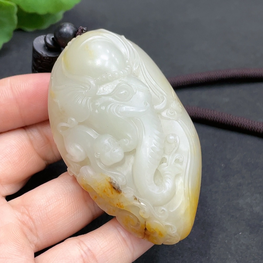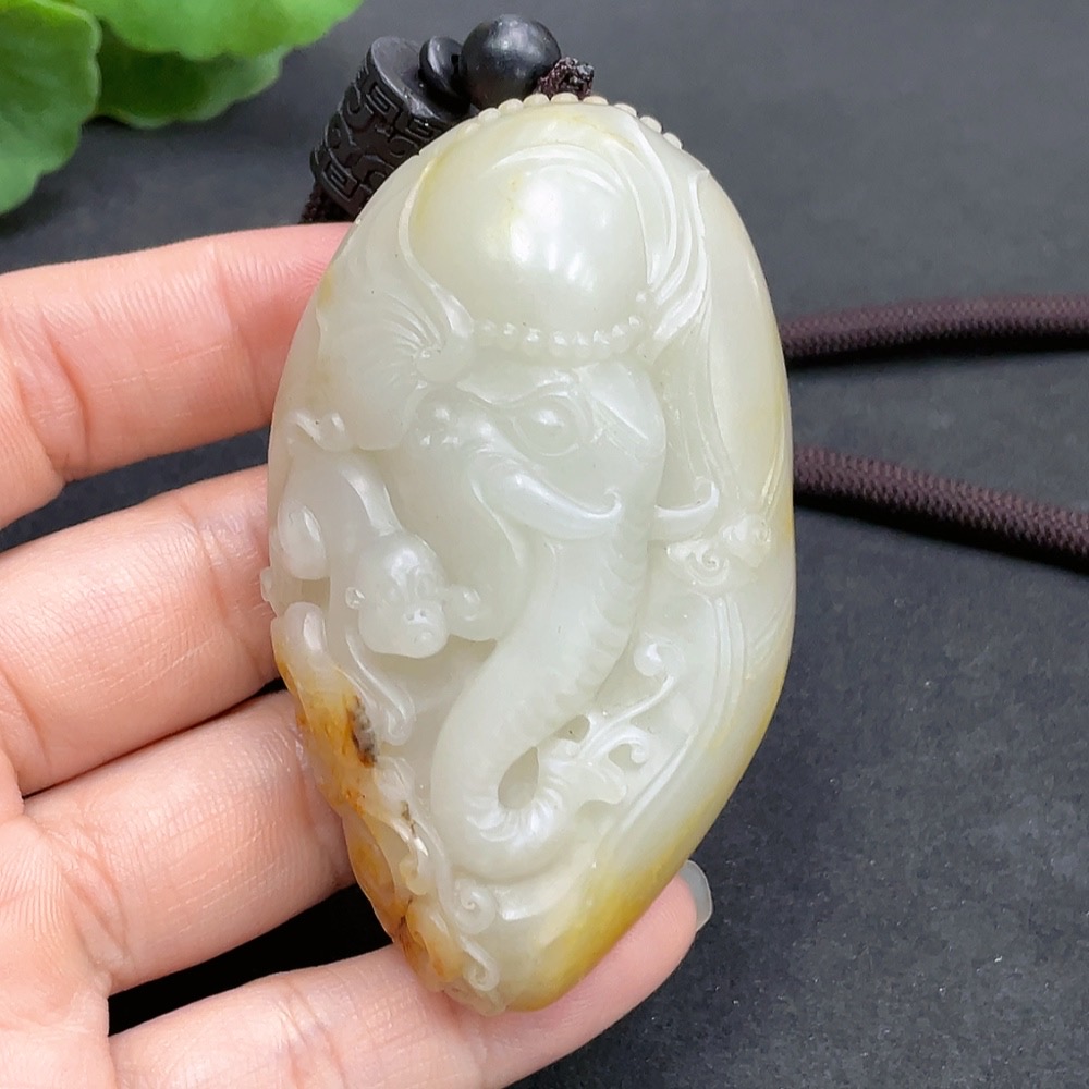 Trezaar - Hetian Jade Seed Material Handheld Piece - "Ennobled as a Marquis and Appointed as a Chancellor" - Undetermined Skin Color Origin - Total Weight (Including Cord): Approximately 111g