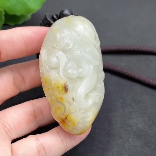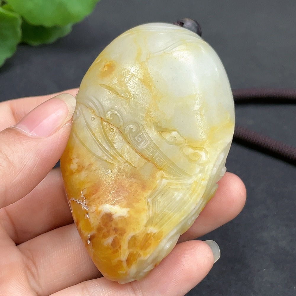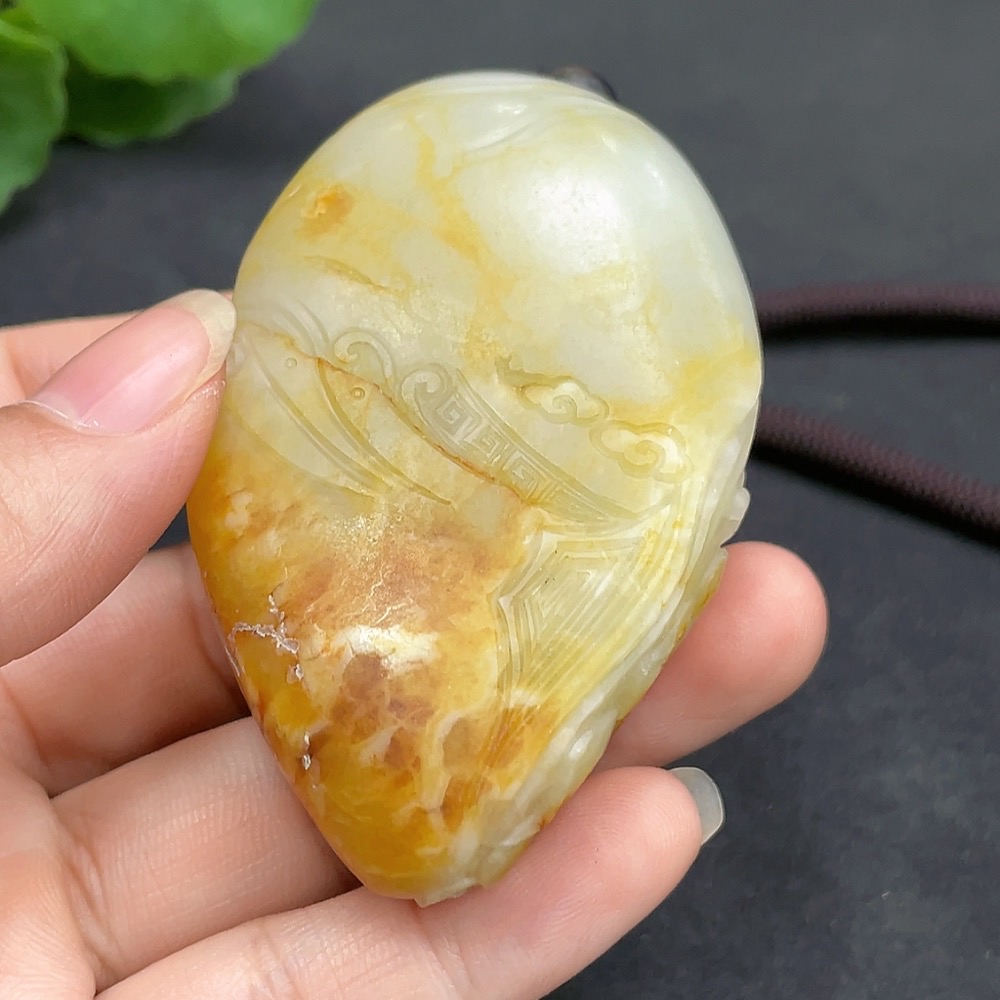 Hetian Jade Seed Material Handheld Piece - "Ennobled as a Marquis and Appointed as a Chancellor" - Undetermined Skin Color Origin - Total Weight (Including Cord): Approximately 111g