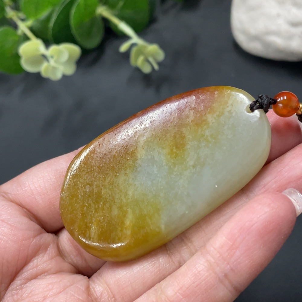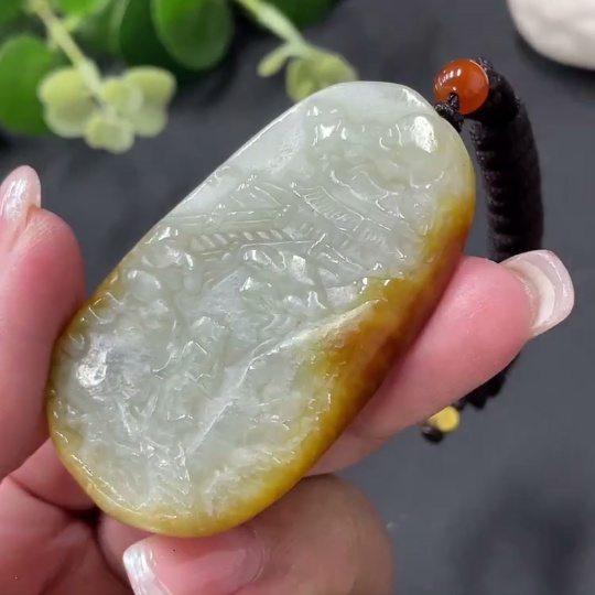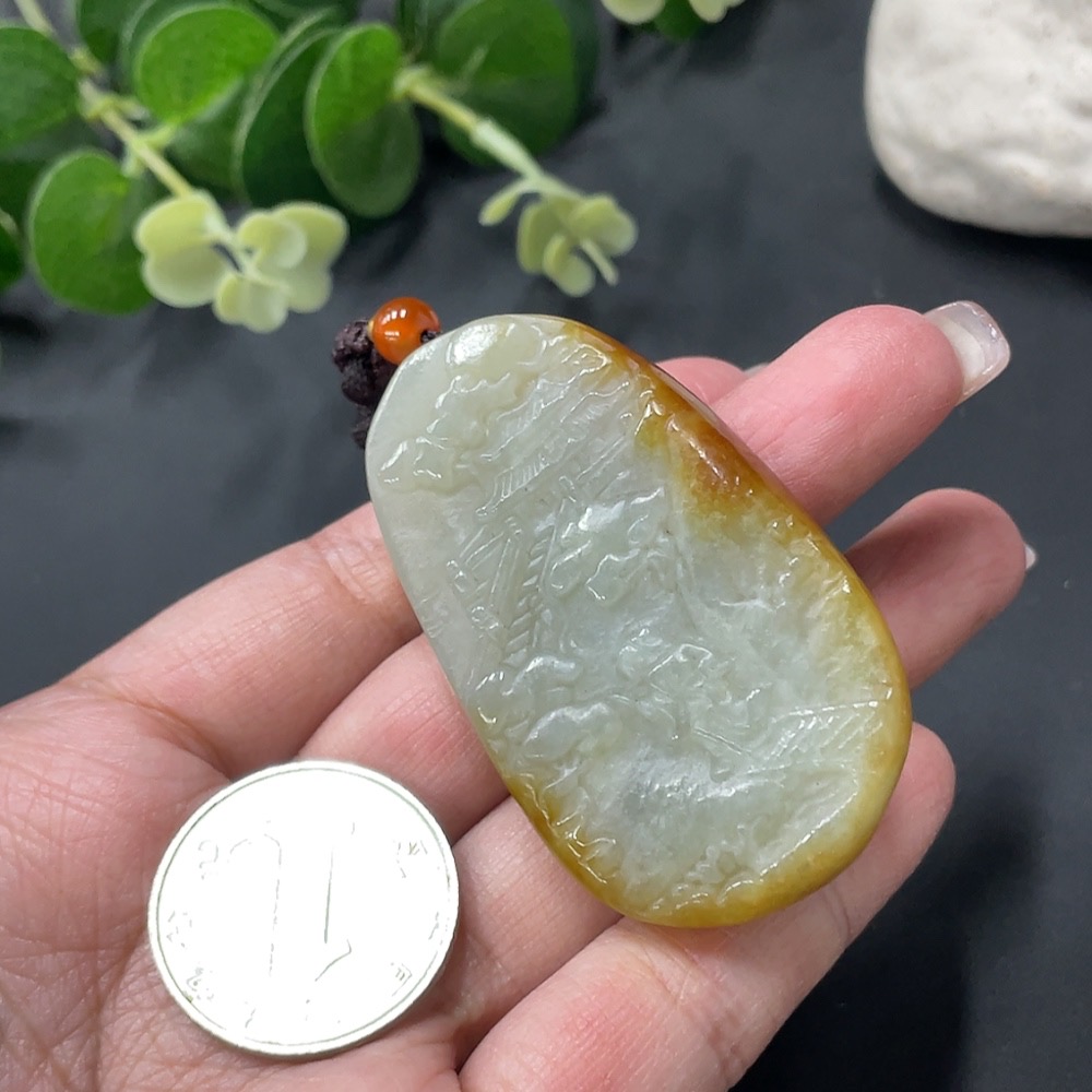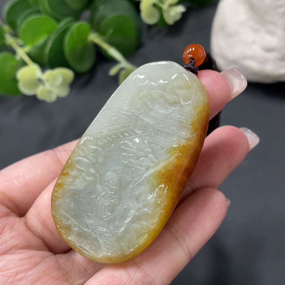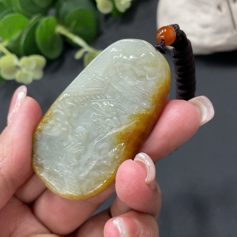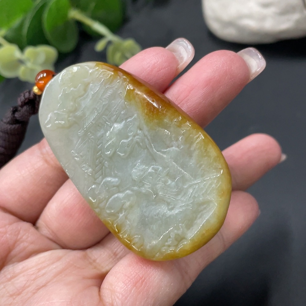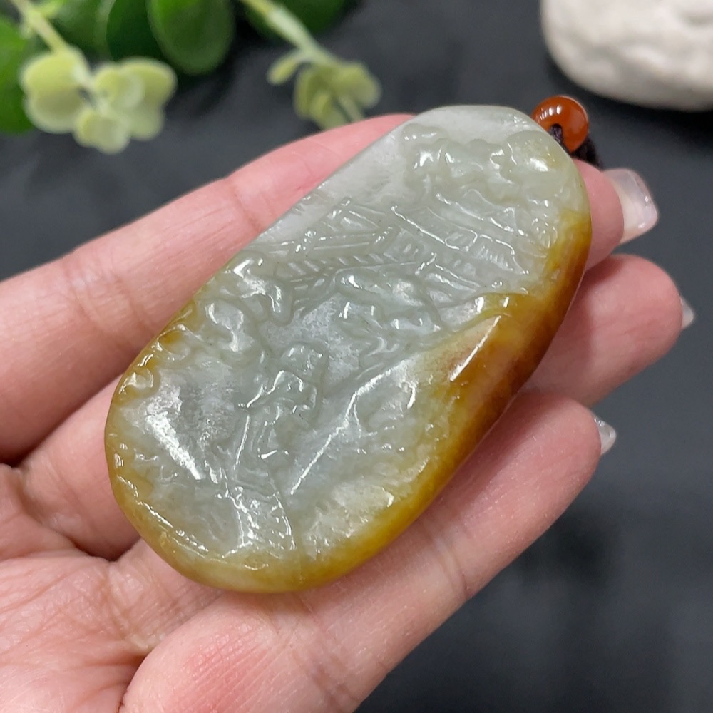 Hetian Jade Landscape Pendant with Cord, Total Weight 36.79g, Undetermined Skin Color Origin