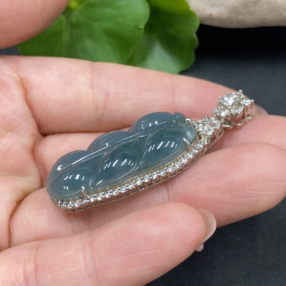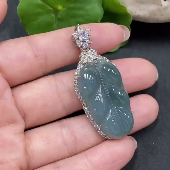 JadeiteLeaf Pendant Without Gold Inlay