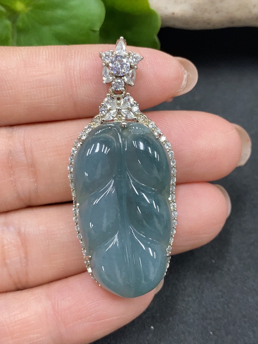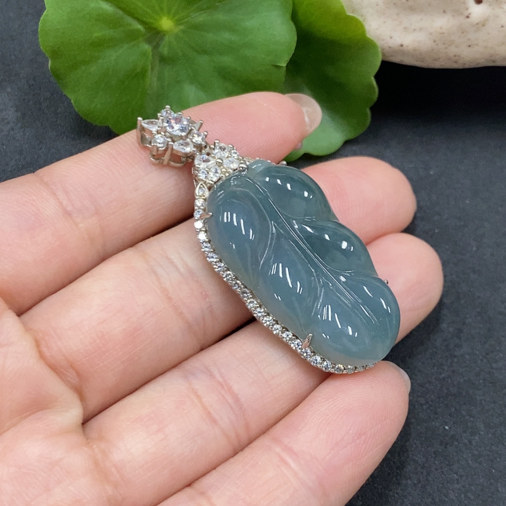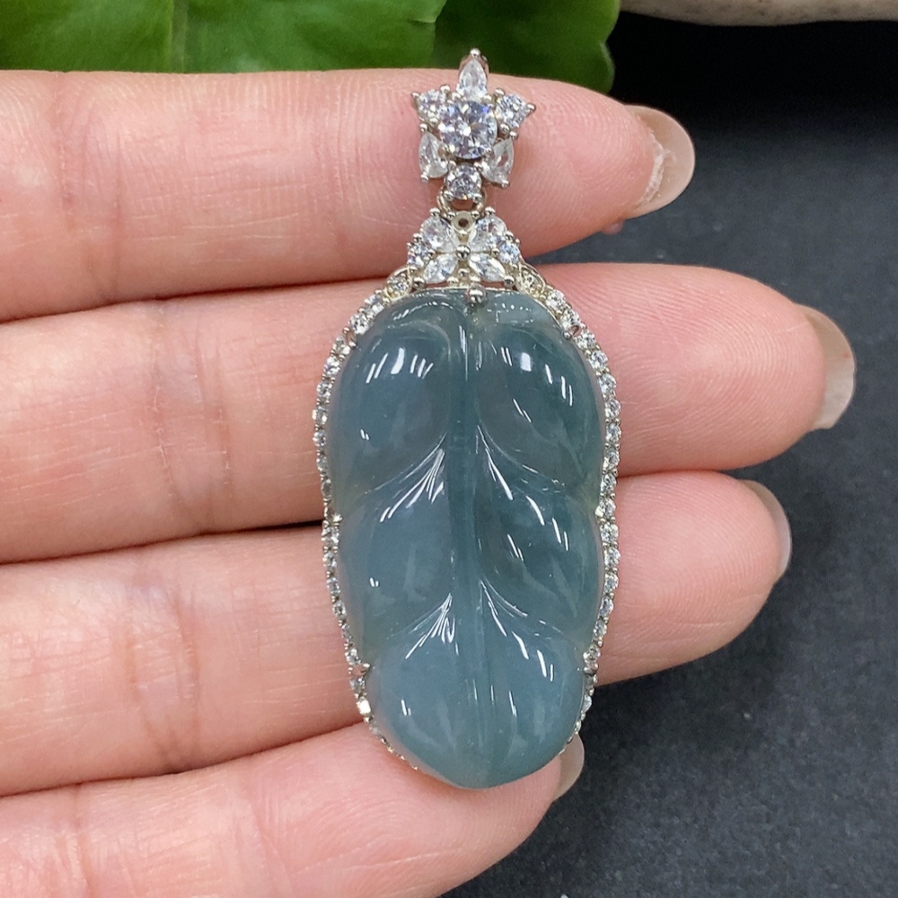 Trezaar - JadeiteLeaf Pendant Without Gold Inlay