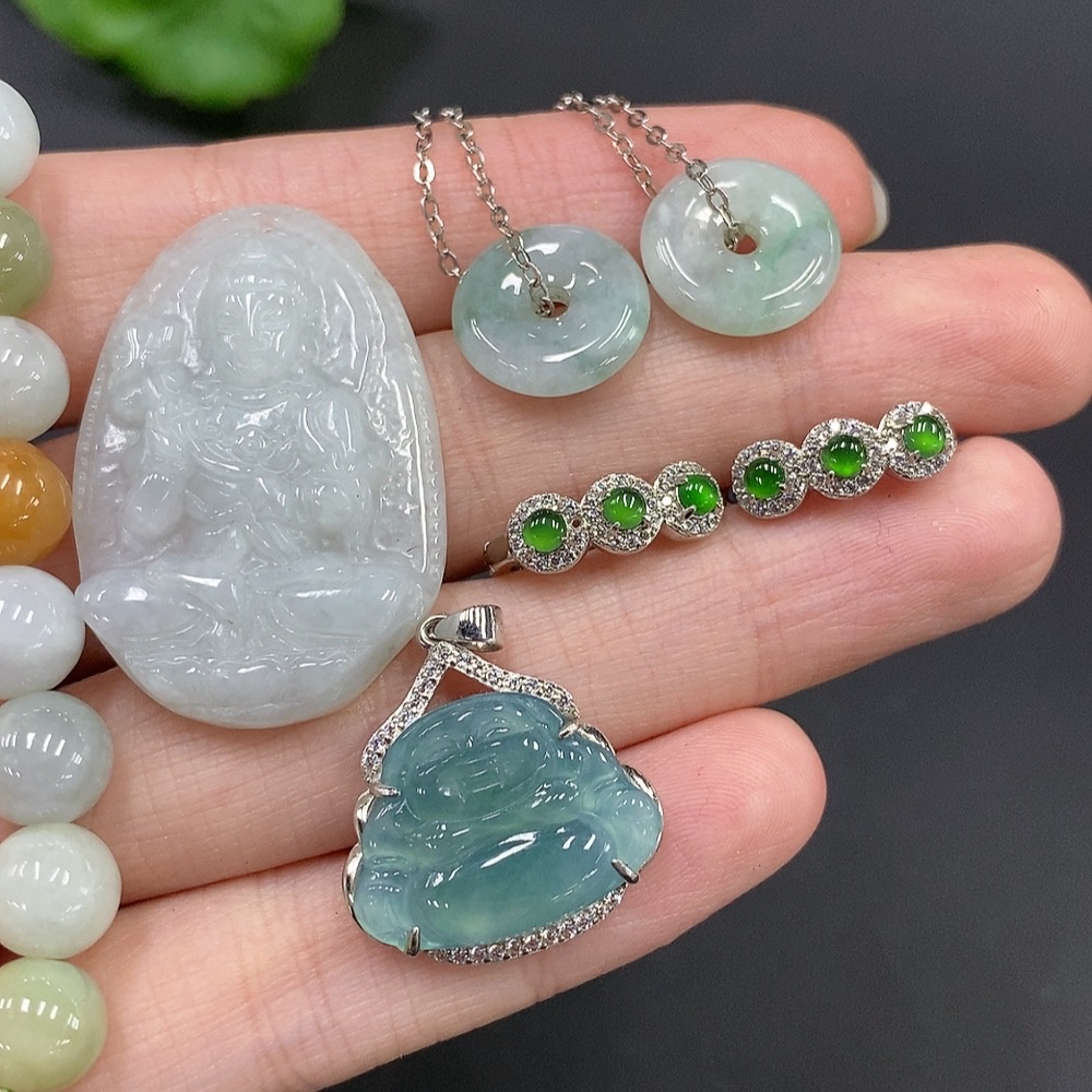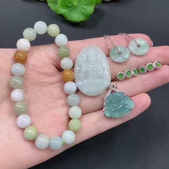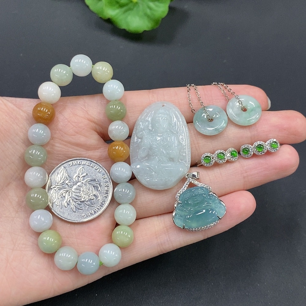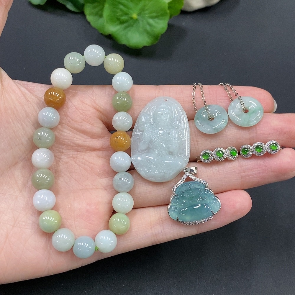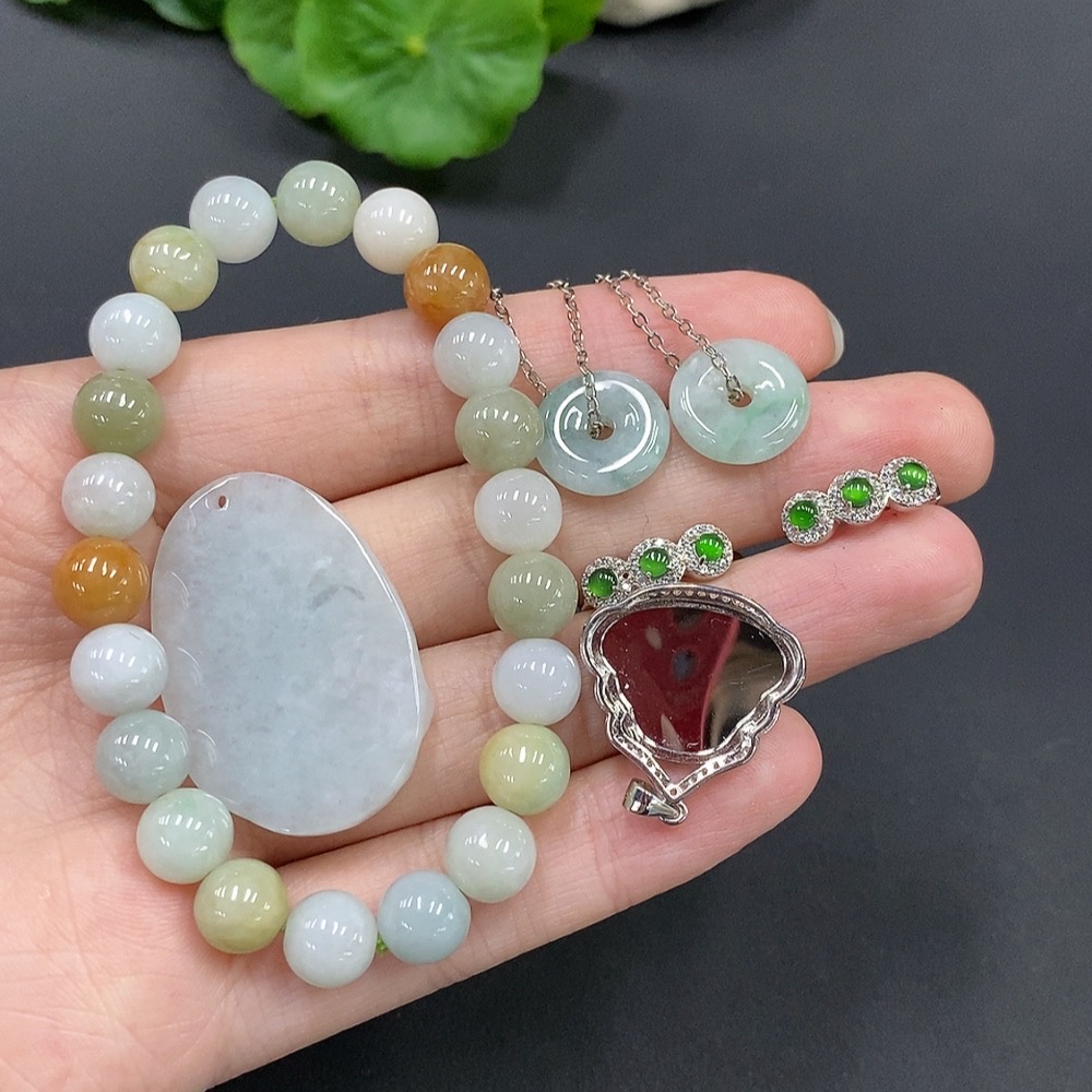 Jadeite Pendant + Mounted Piece + Bracelet Non-Gold Inlaid