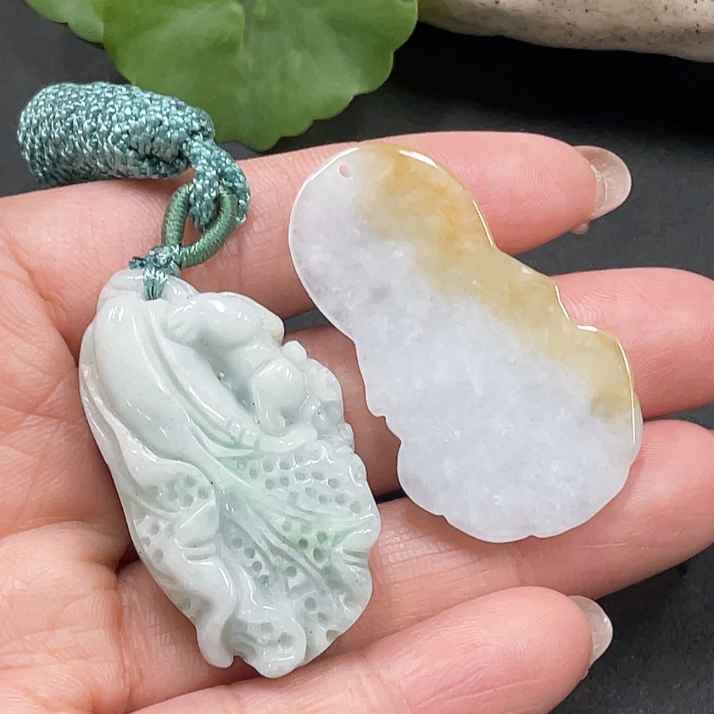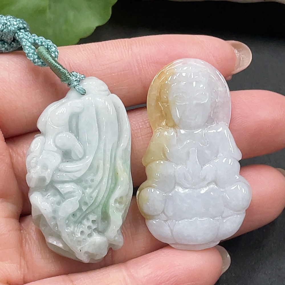 Jadeite Cabbage + Guanyin Pendant Set Wholesale