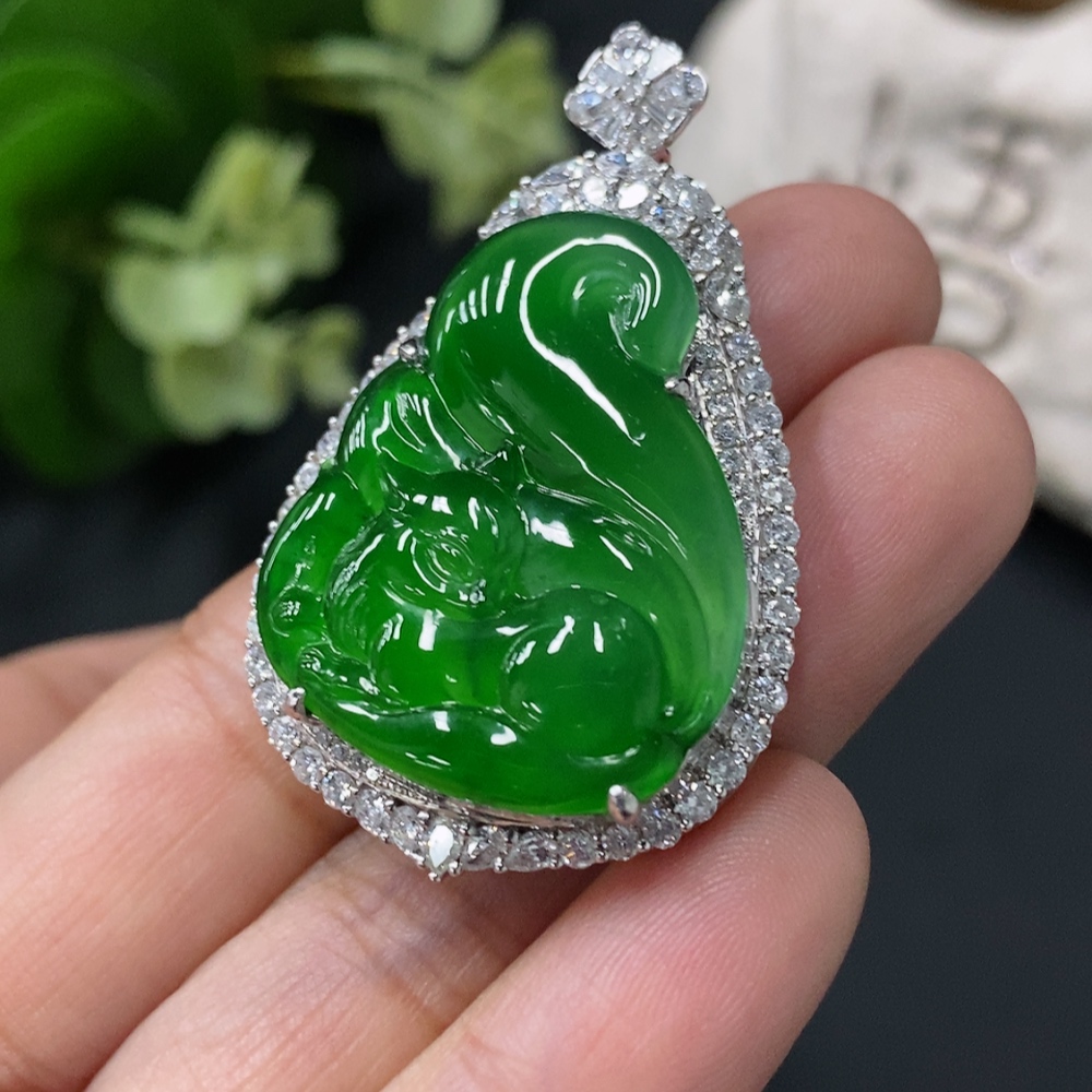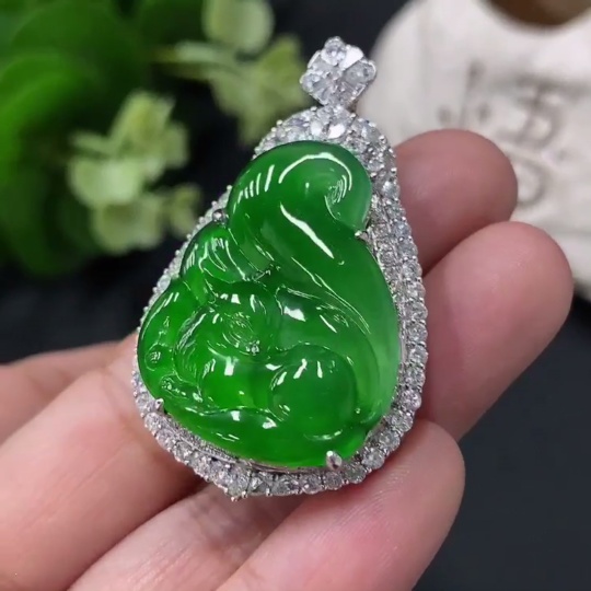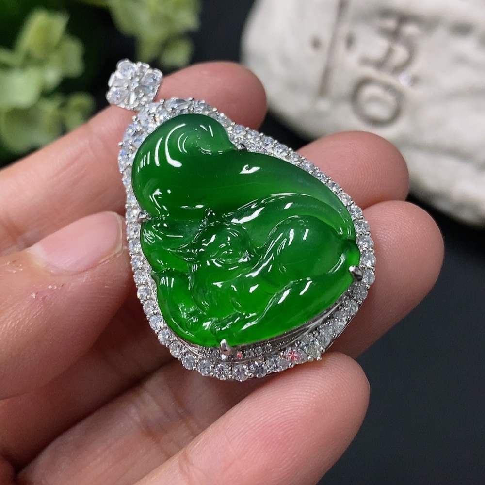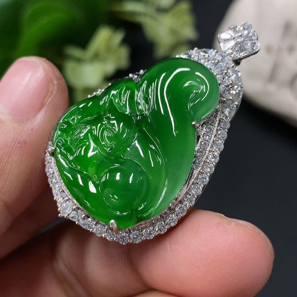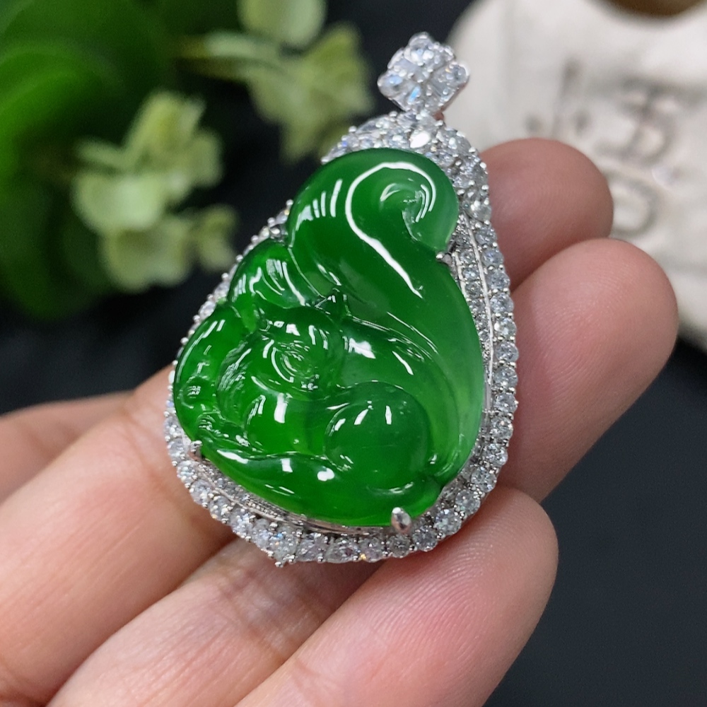 Jadeite Fox Pendant in 18K Gold Setting, Approx. 13g