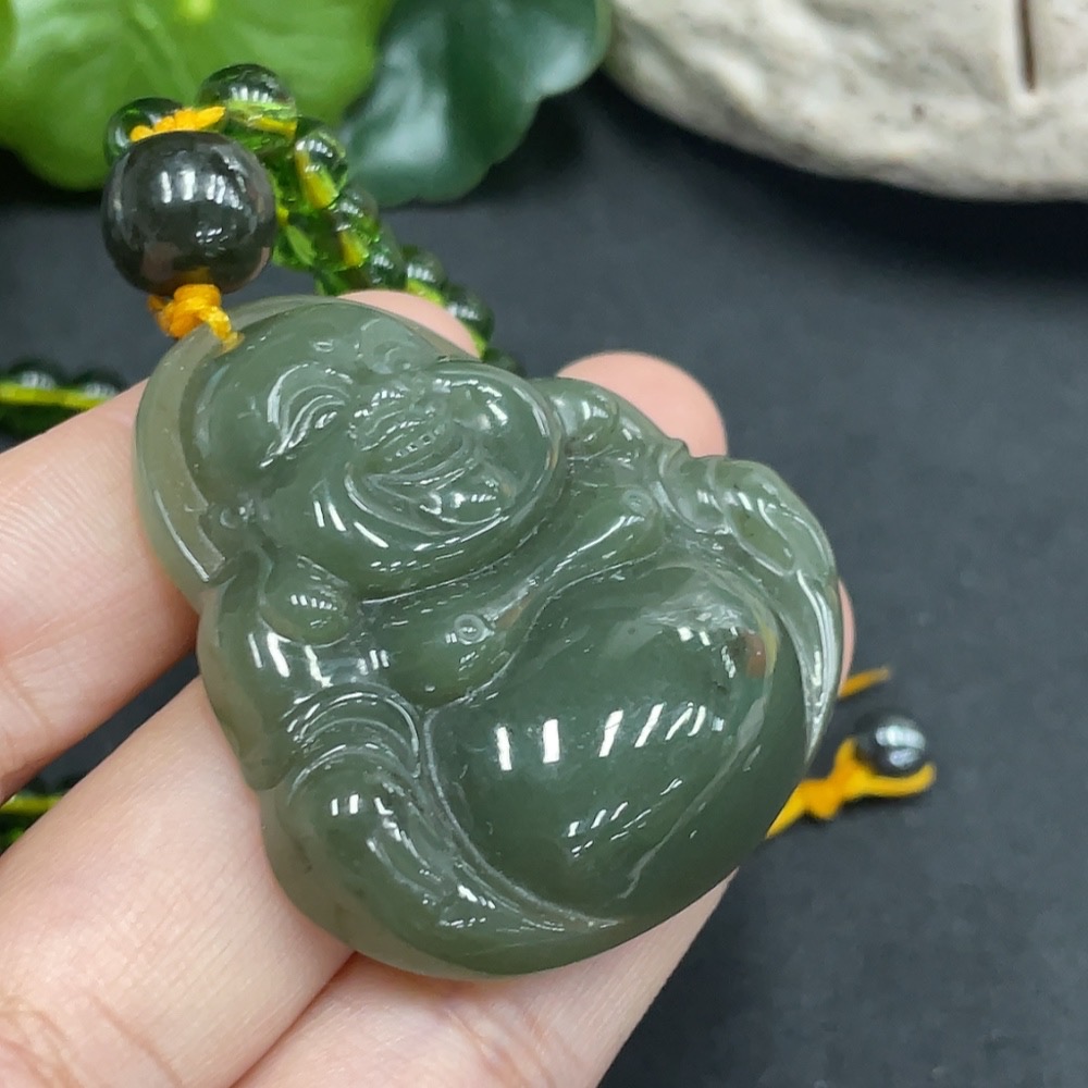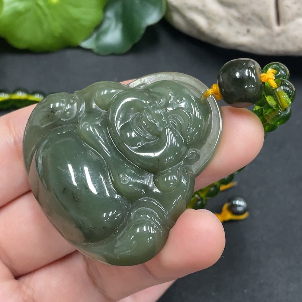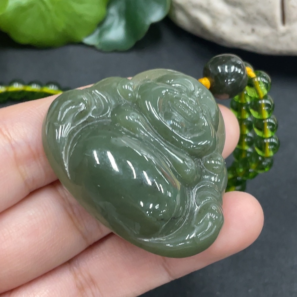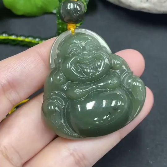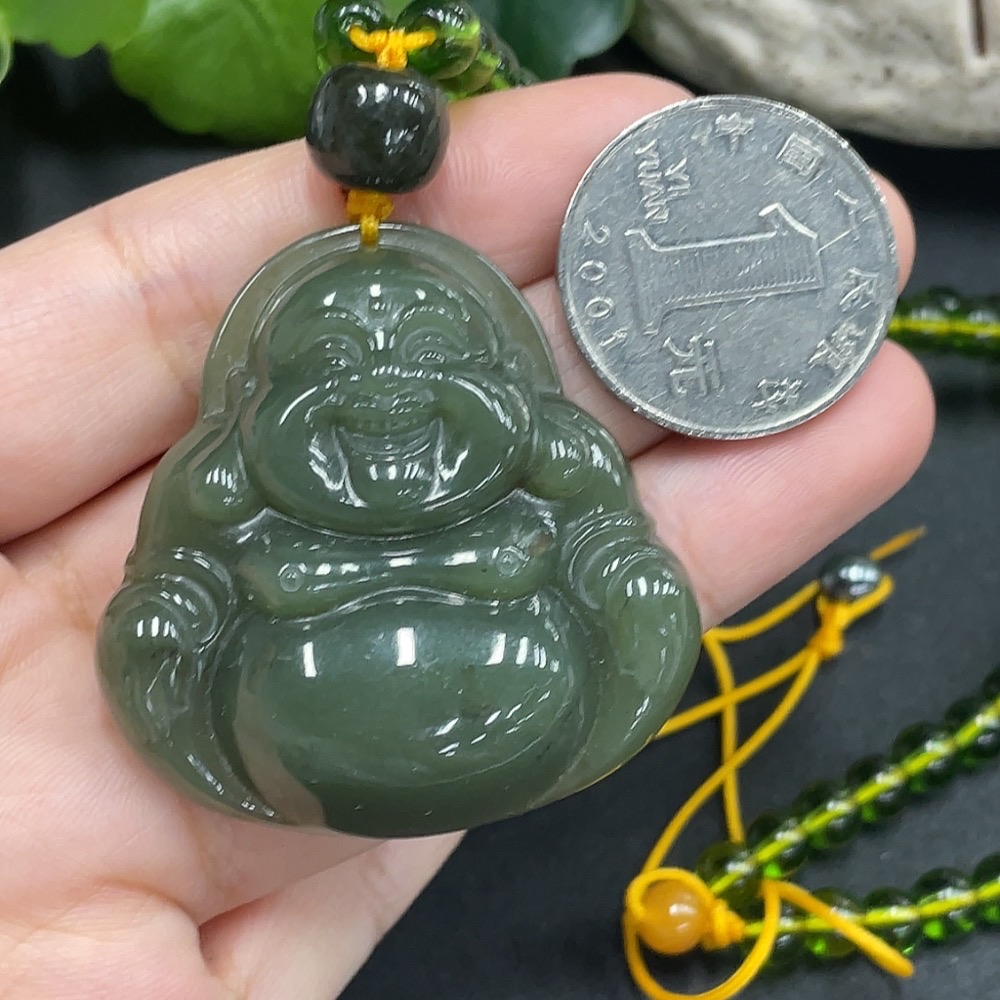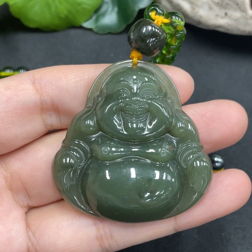 Hetian Jade Pendant - Buddha with Chain (chain not included)