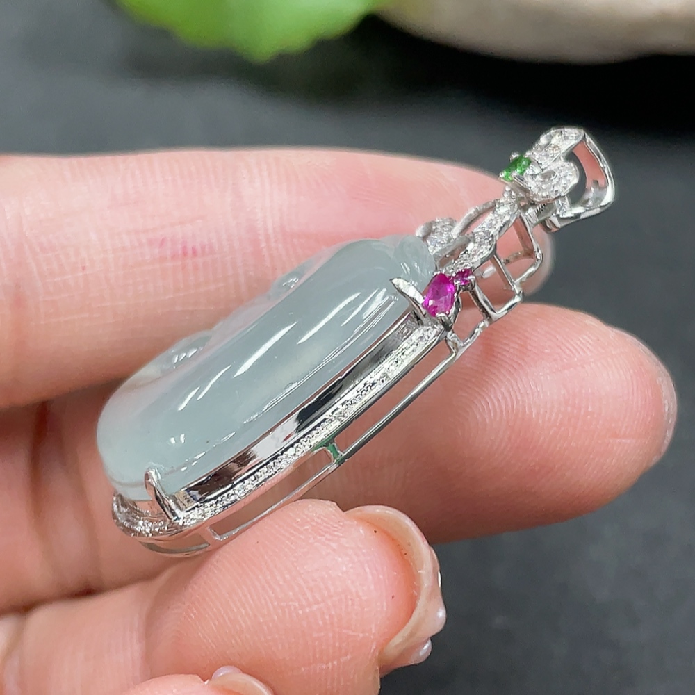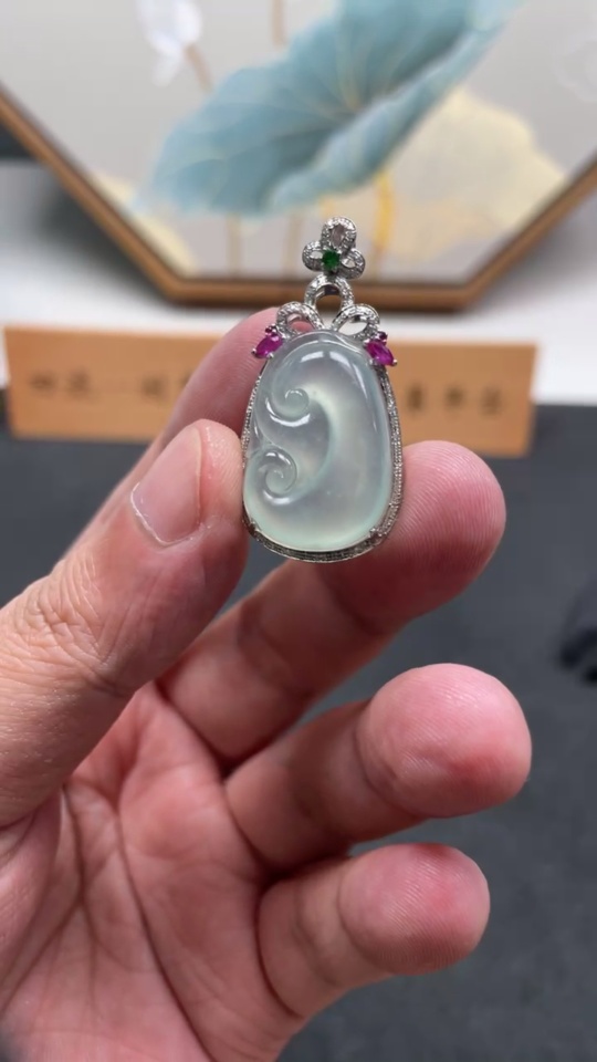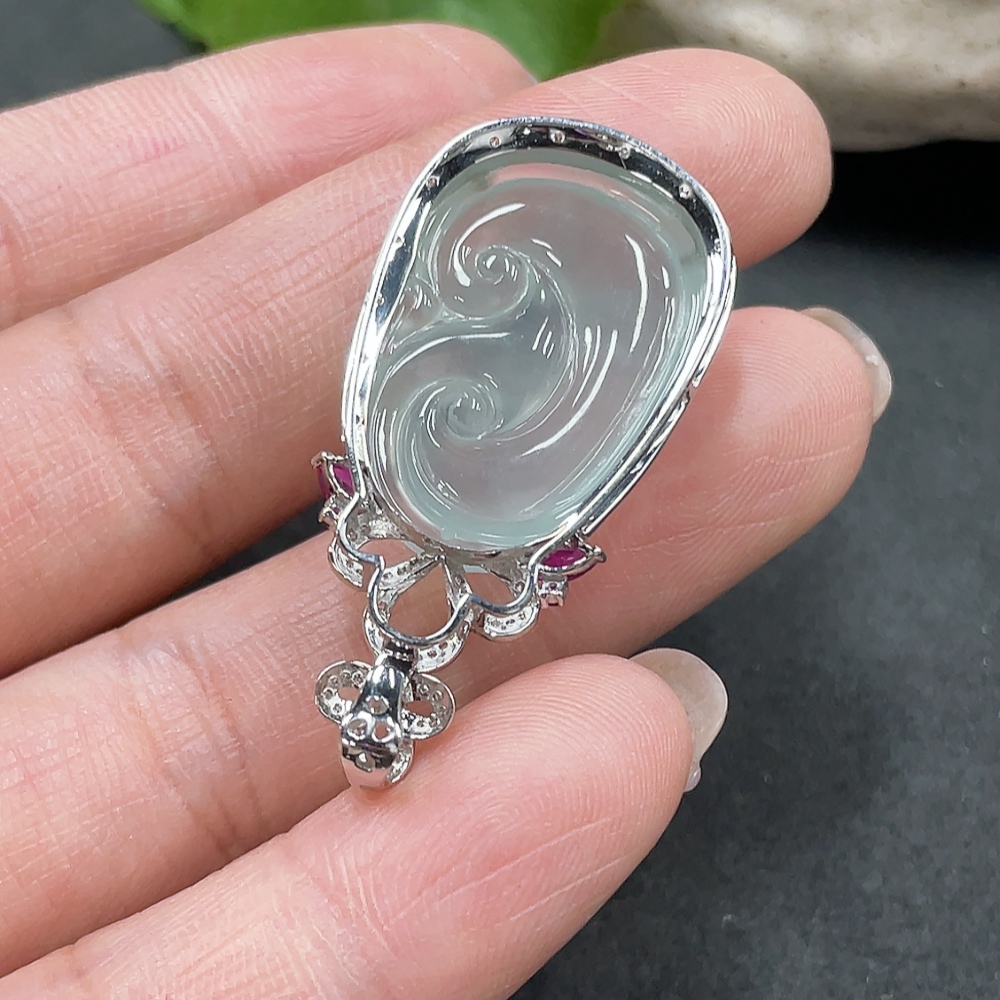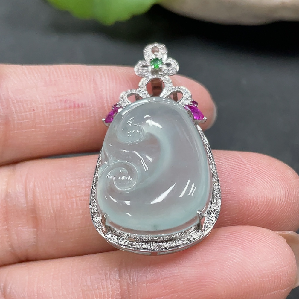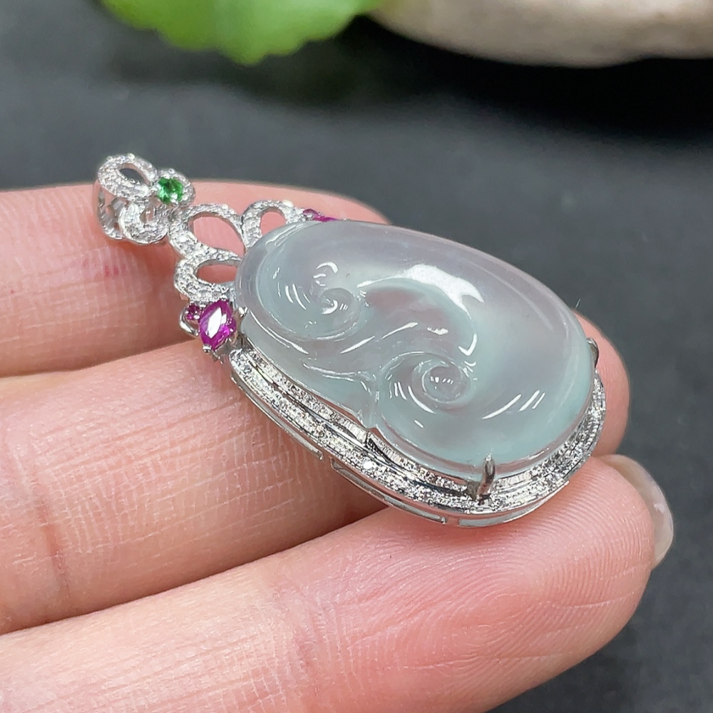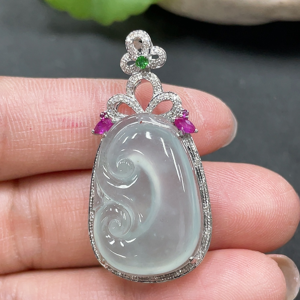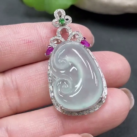 Jadeite Ruyi Pendant 18K Gold Inlaid Total Weight Approx. 6.4g