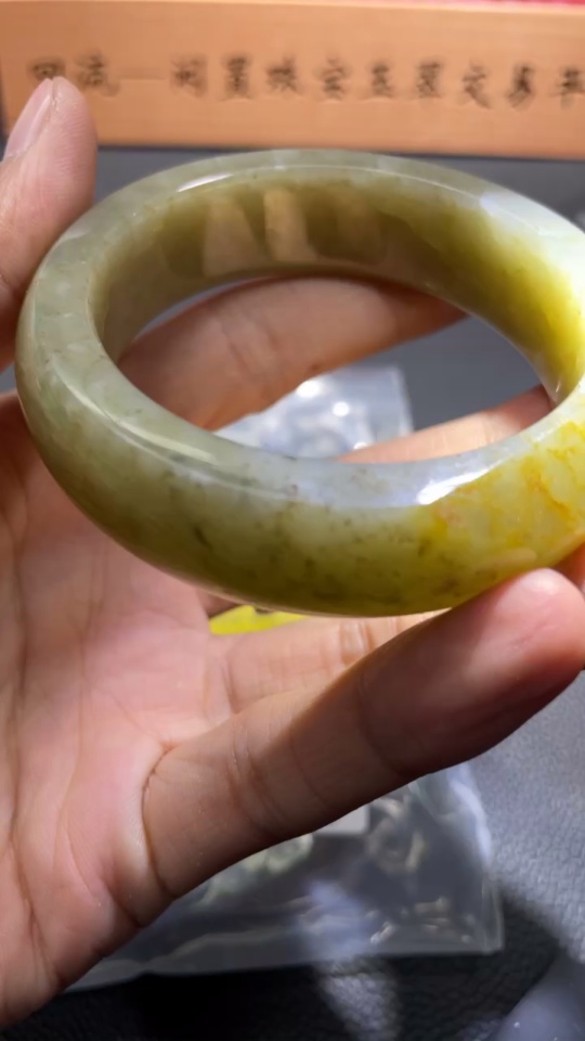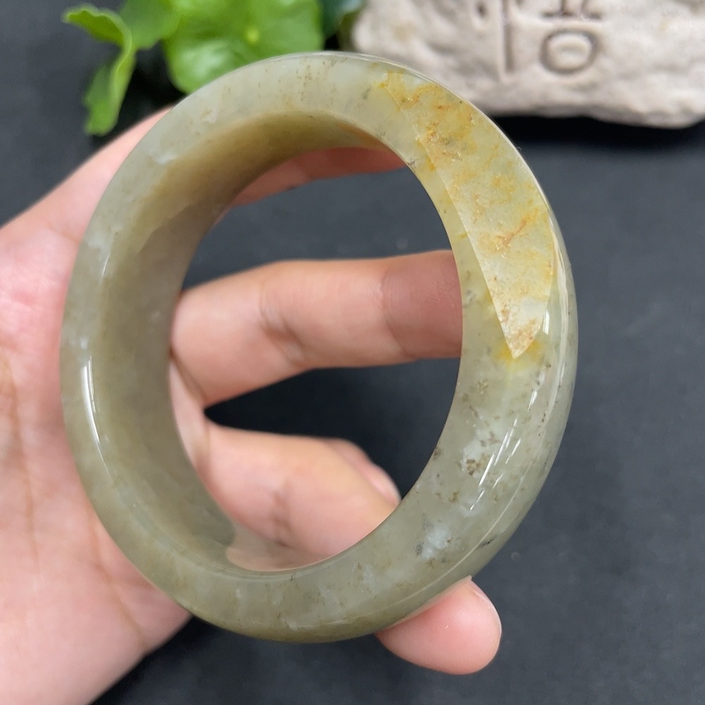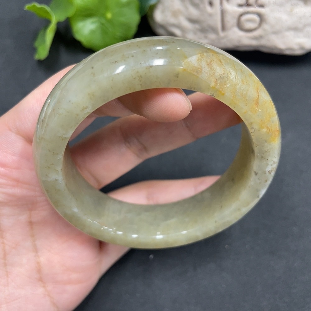 Hetian Jade Round Bracelet Size 56.9 Total Weight Approx. 89.49g (Undetermined skin color origin)