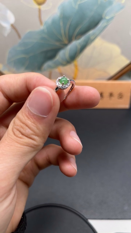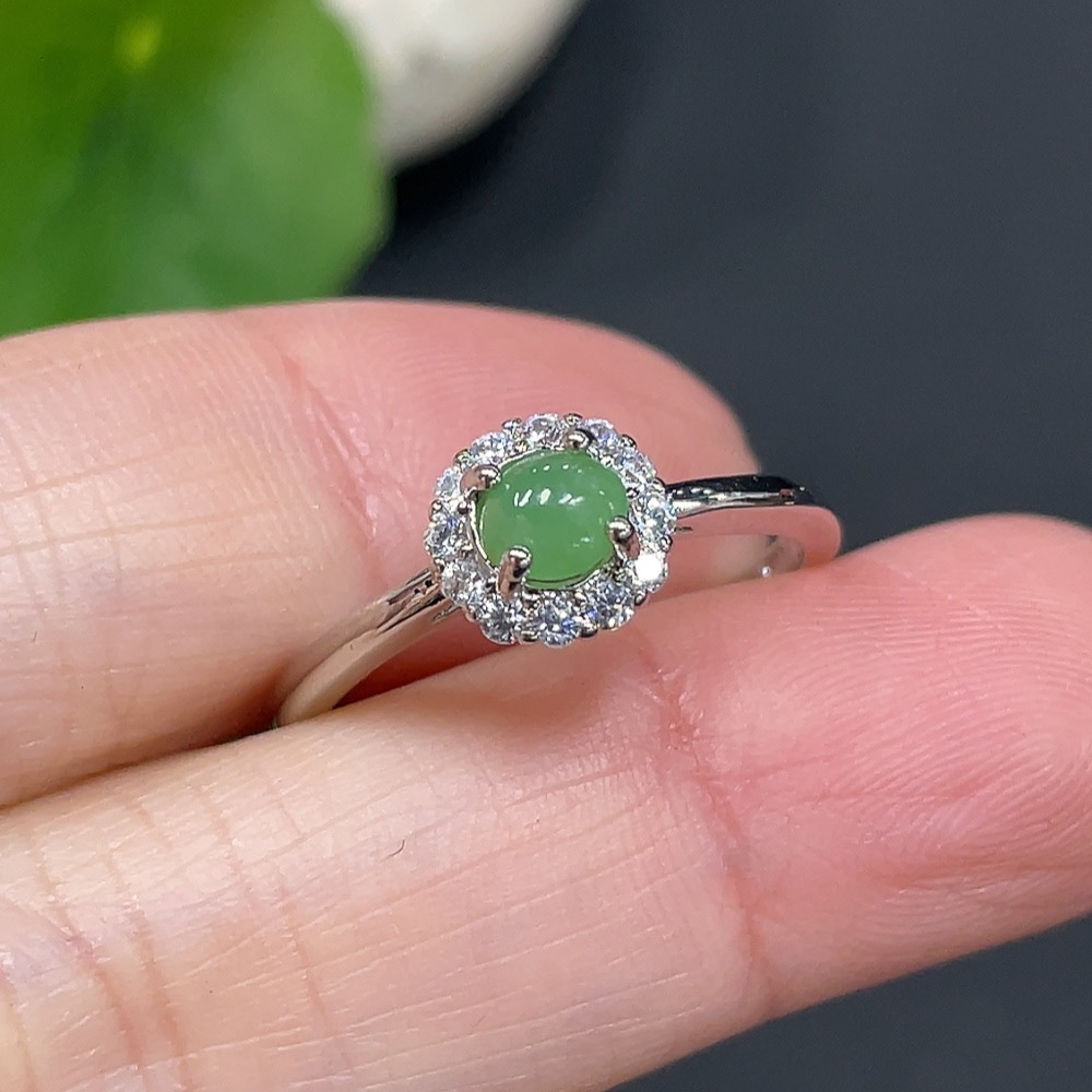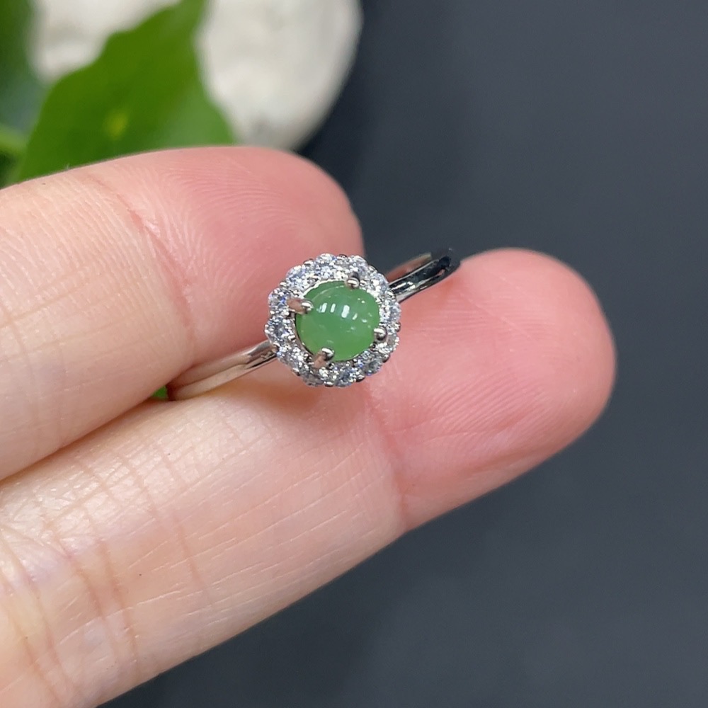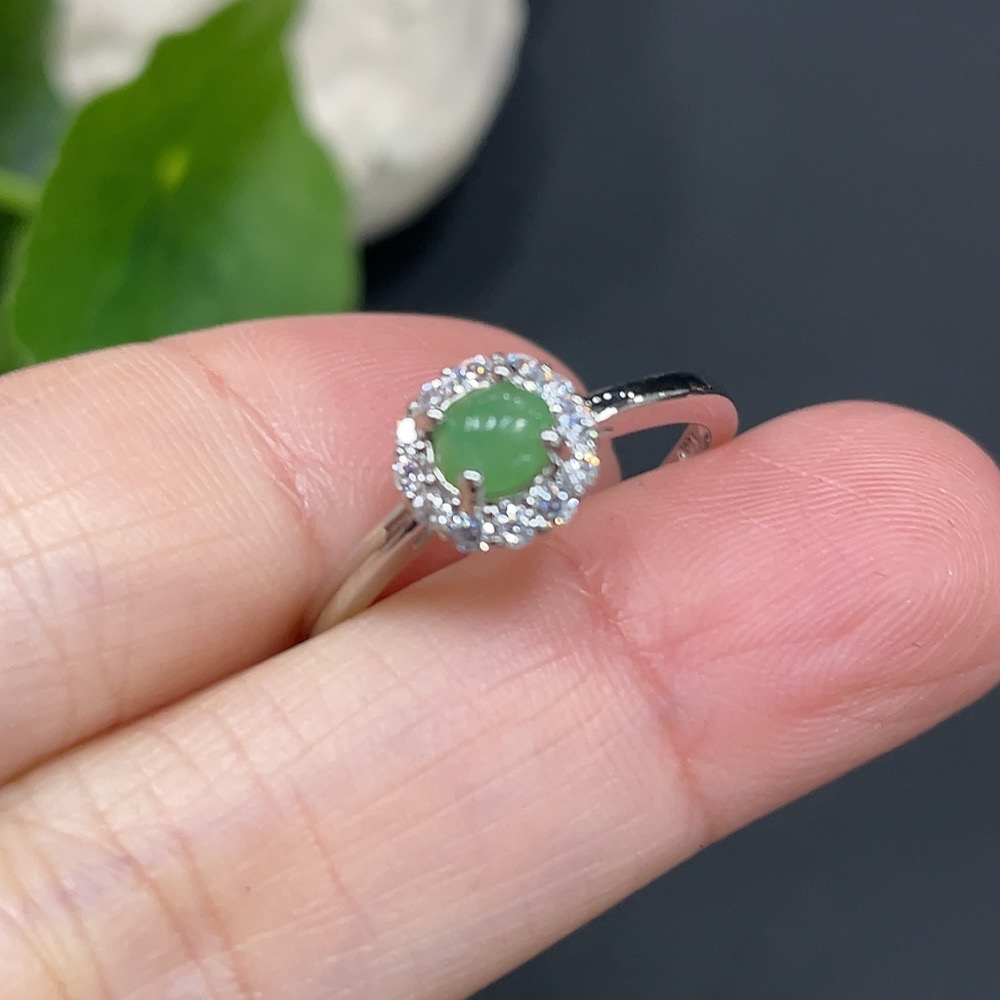 Jadeite Inlaid Ring (Non-Gold Setting) (Adjustable)