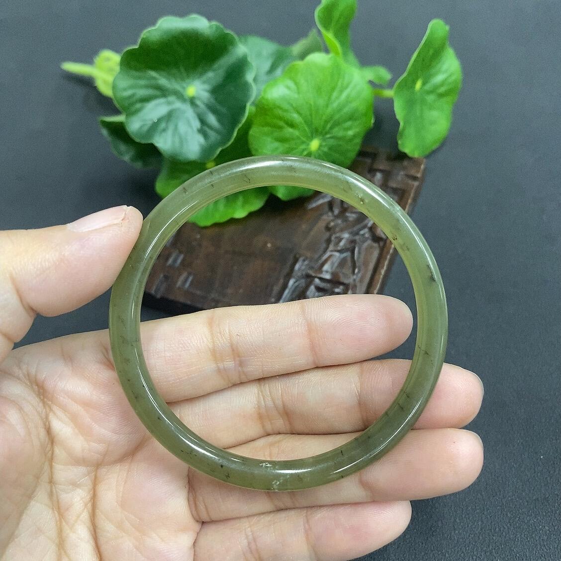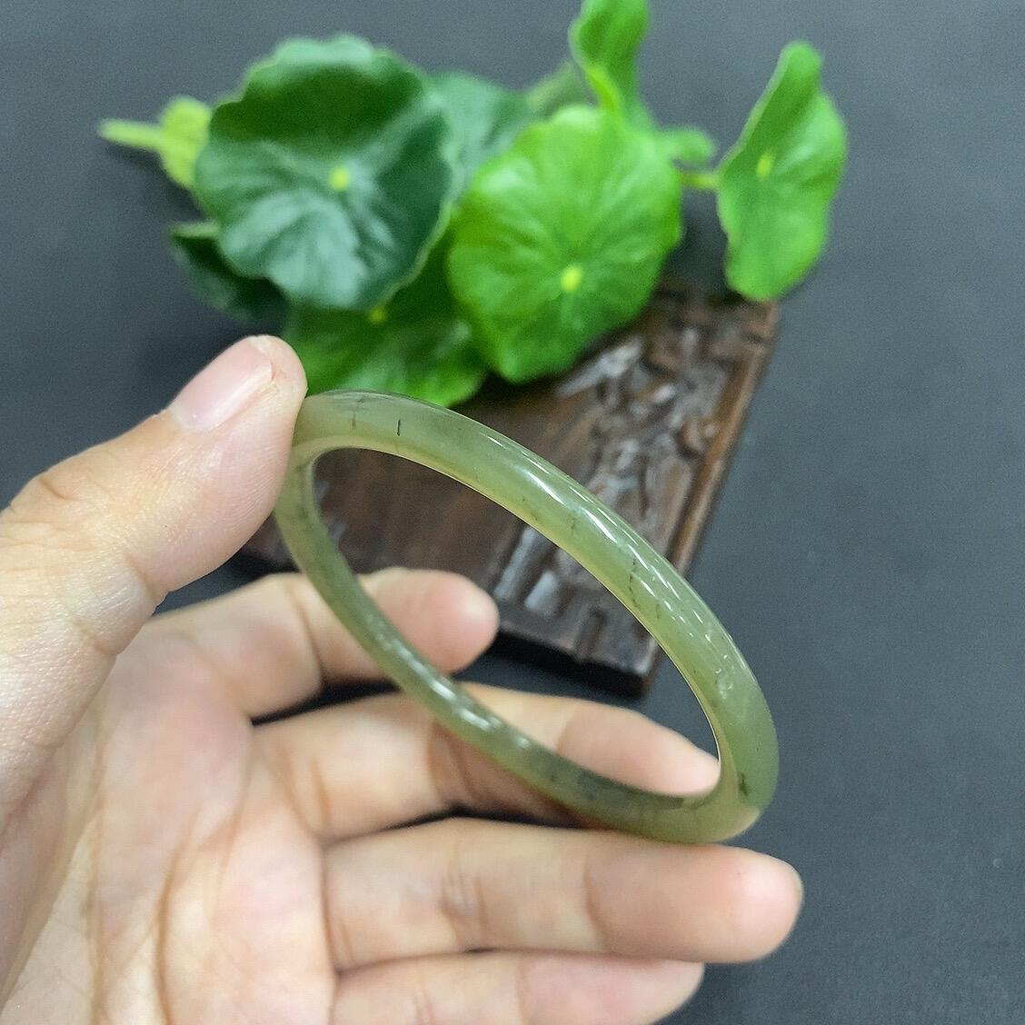 Hetian Jade Round Bangle with Grain, Size 50, Total Weight 10.8g
