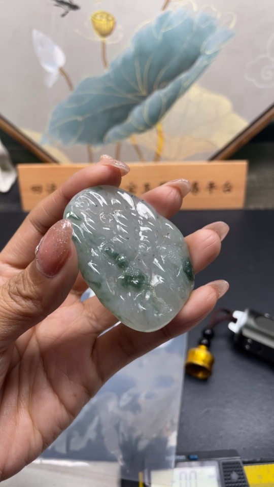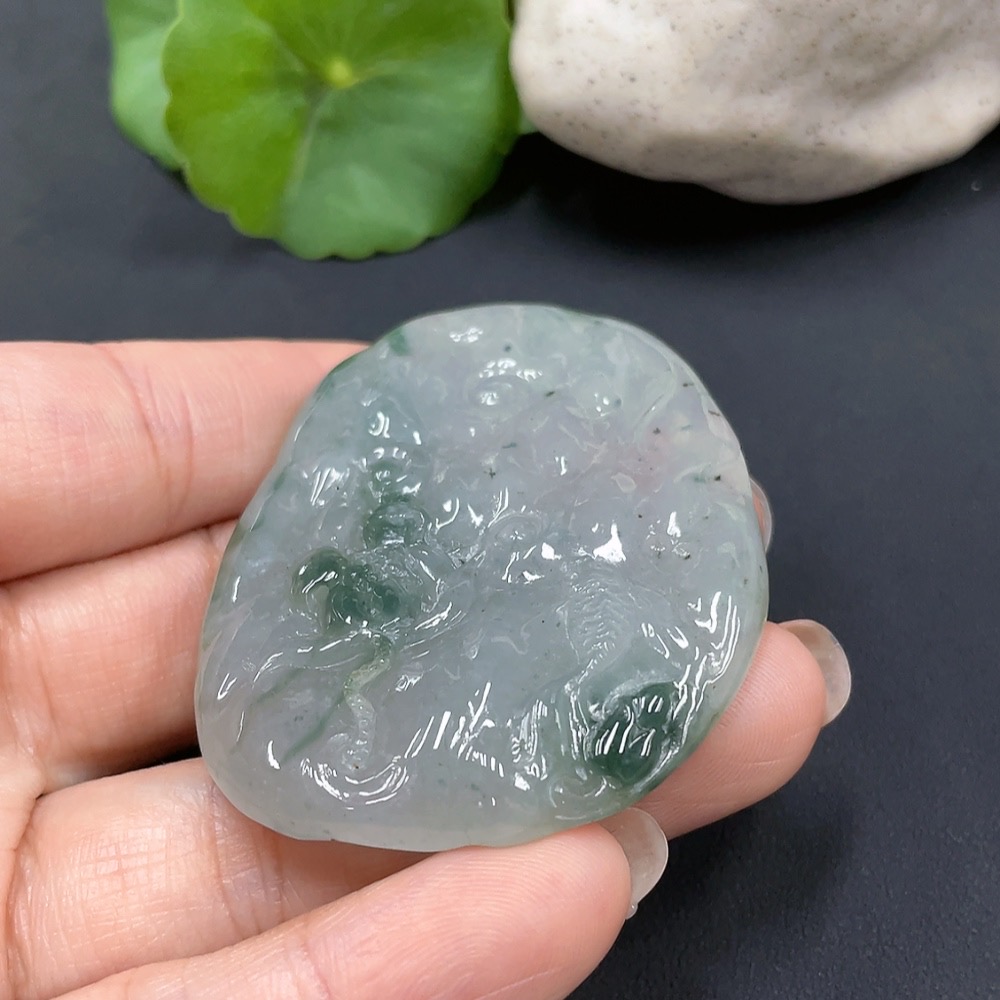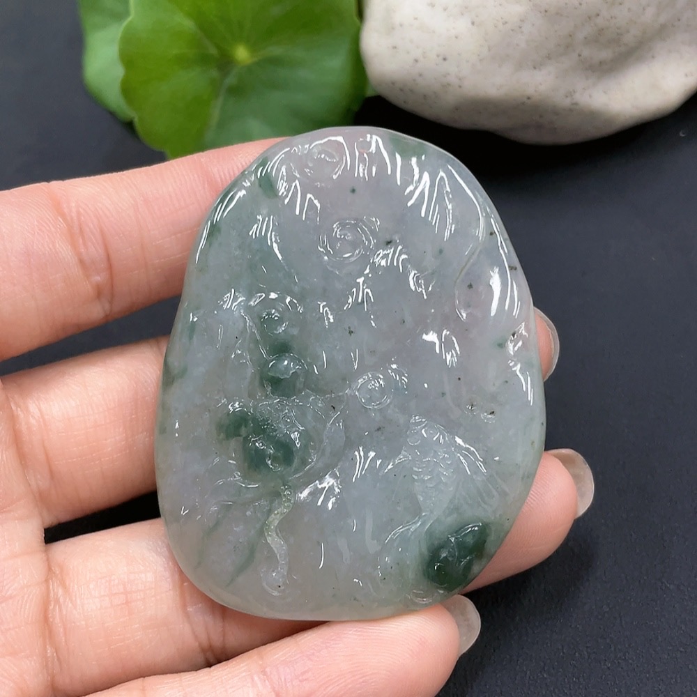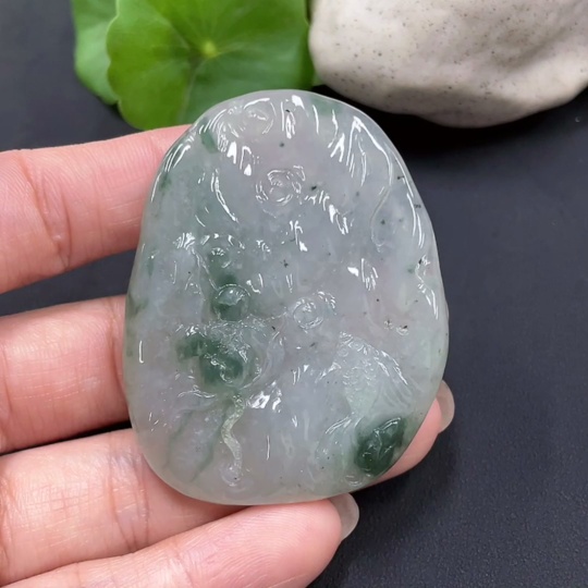JadeiteLotus Leaf Fish Pendant, Total Weight 29.842g