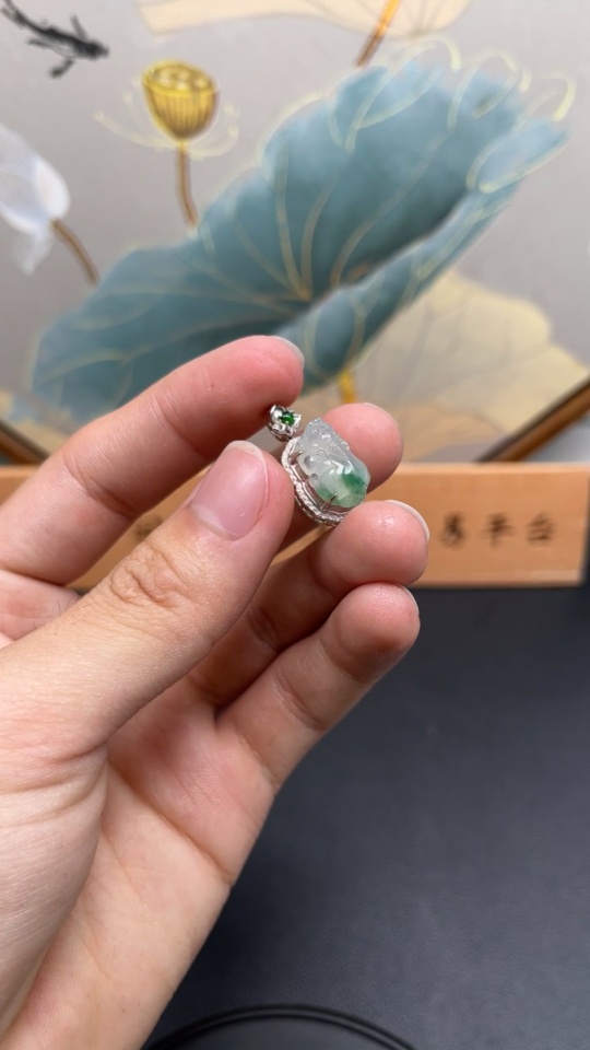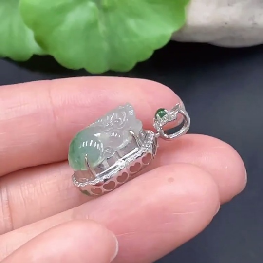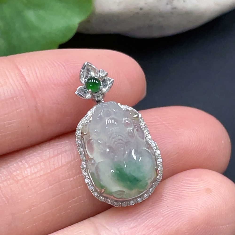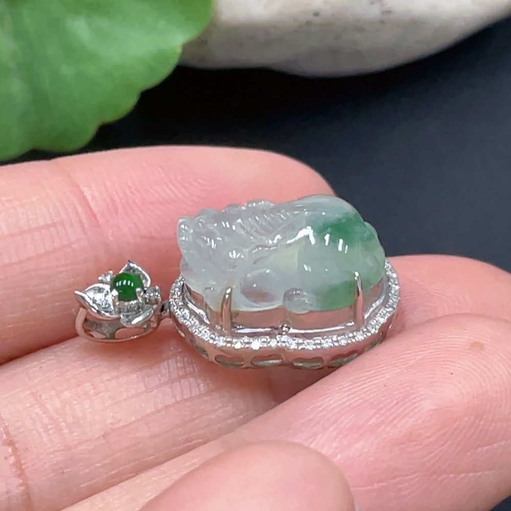 JadeitePi Xiu Pendant with 18K Gold Inlay, Total Weight Approximately 2.68g