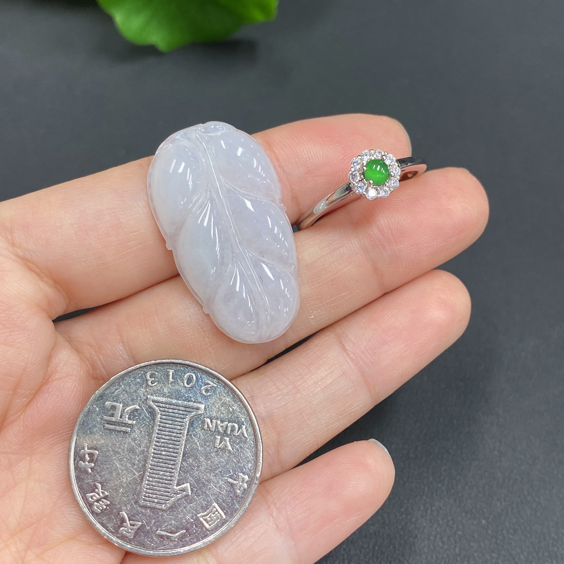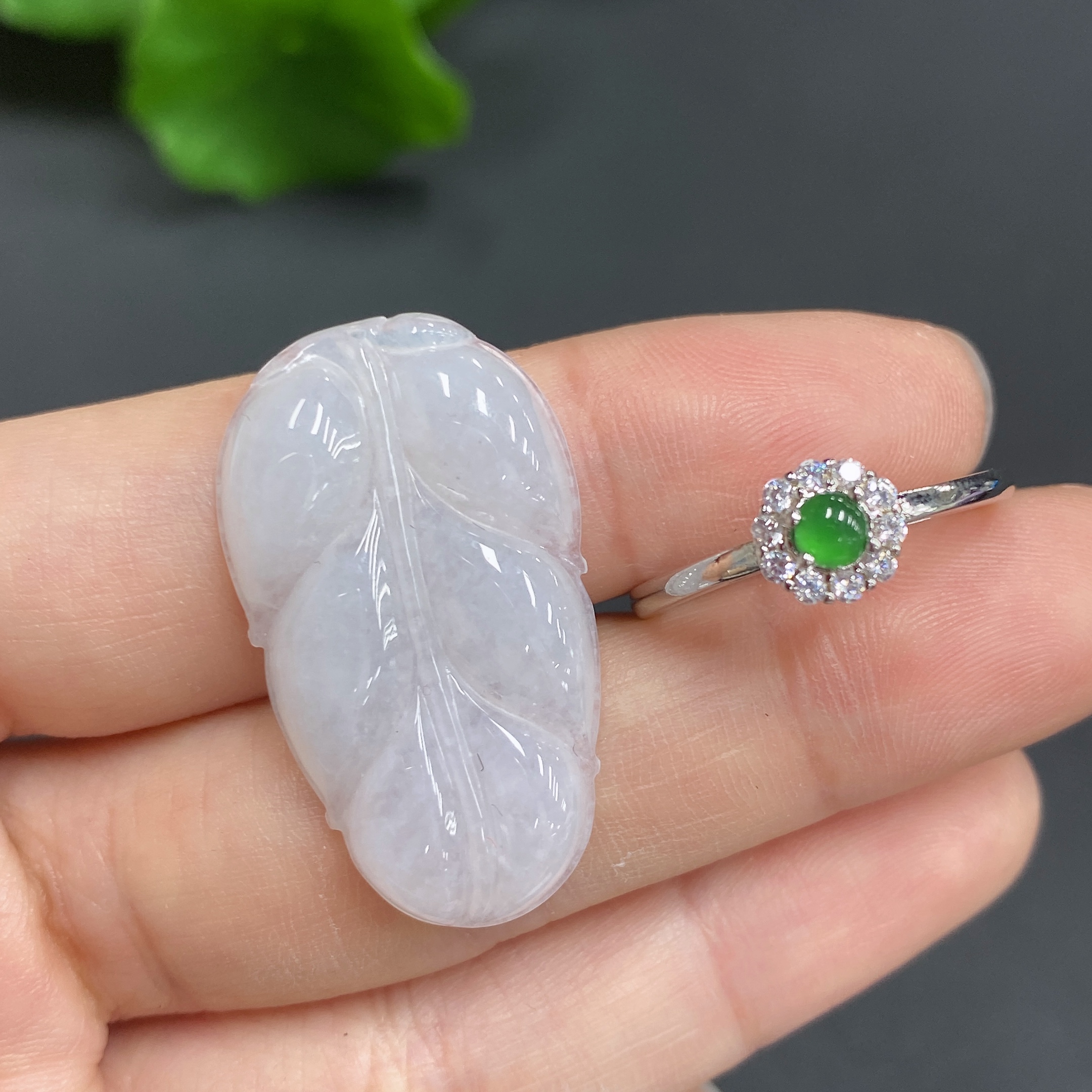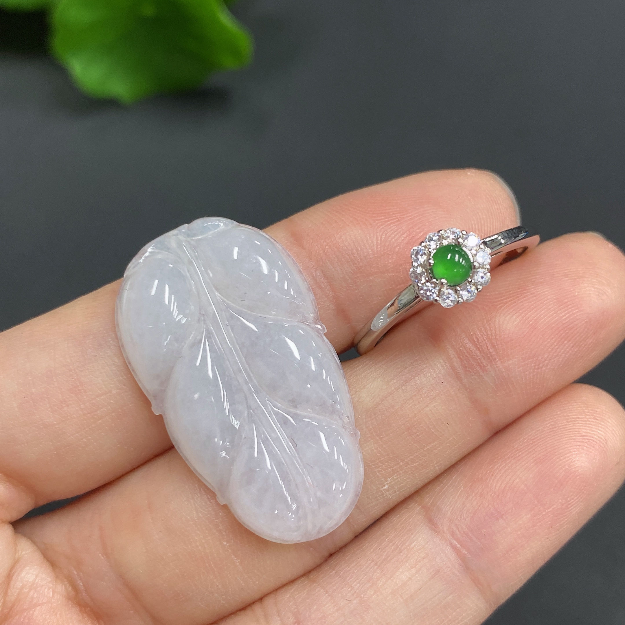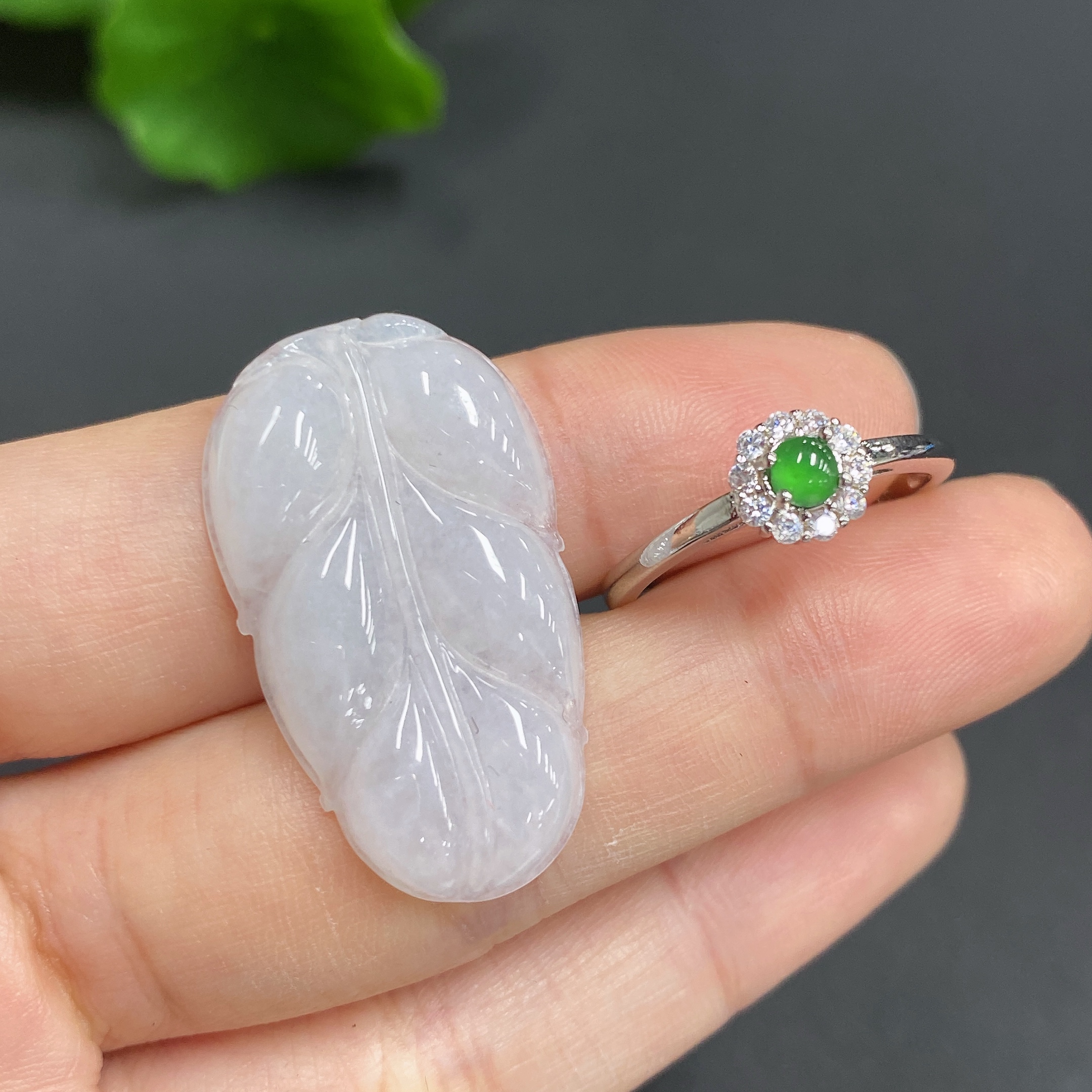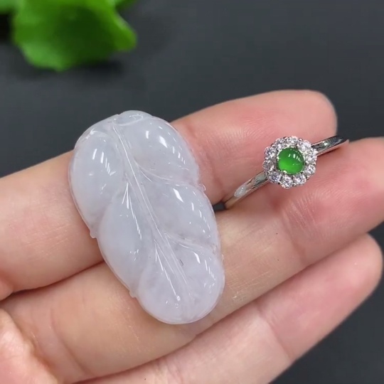 JadeitePendant Leaf Bezel-Set Open-End Ring