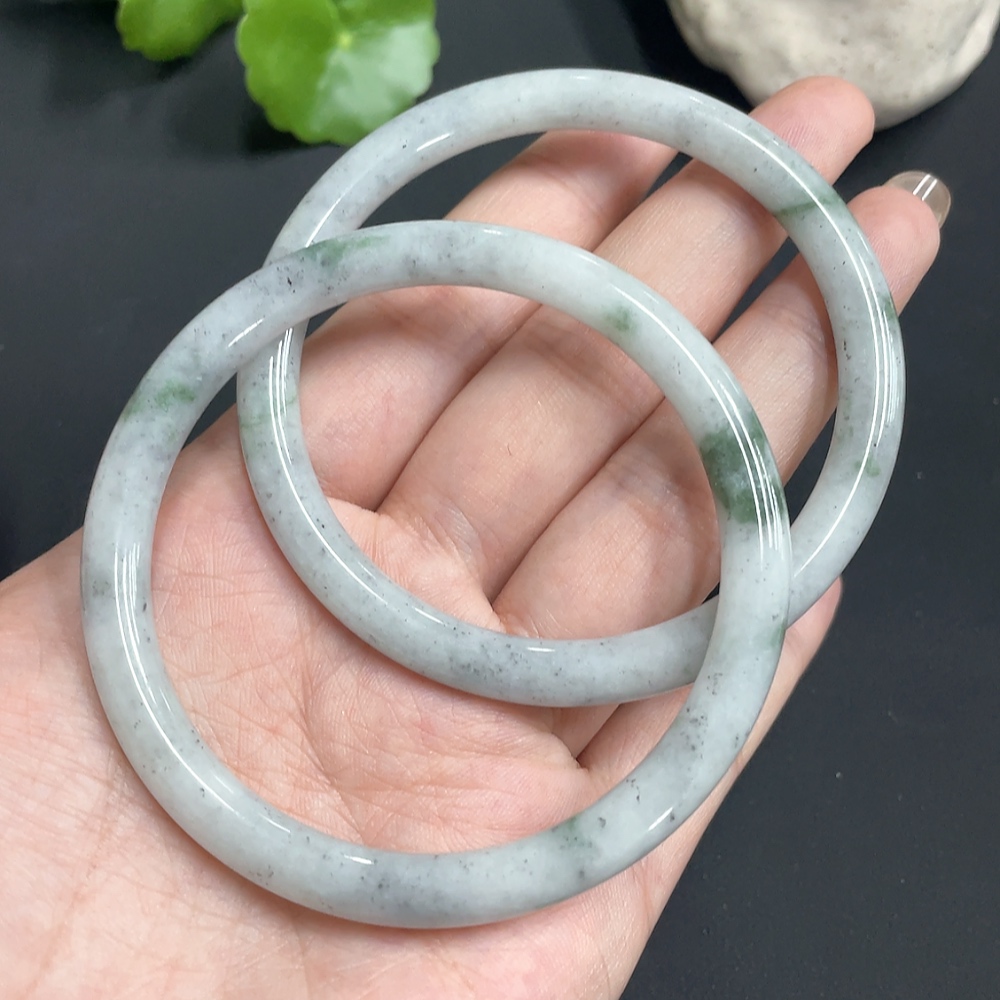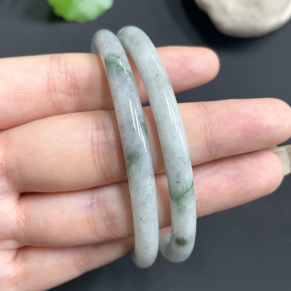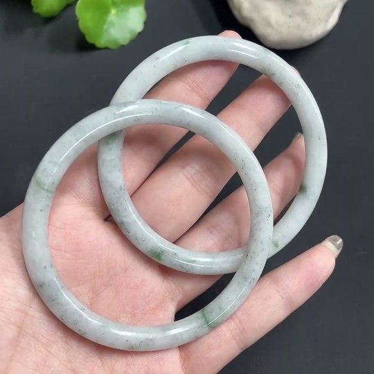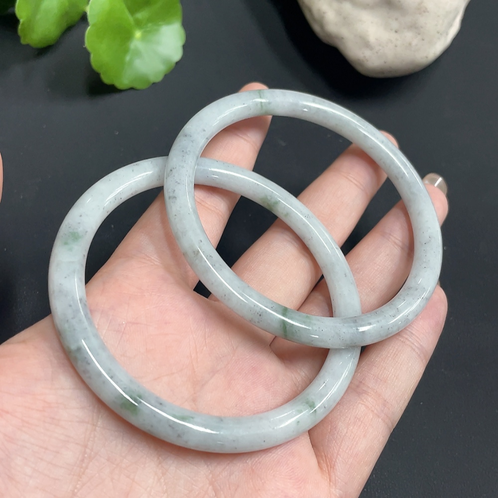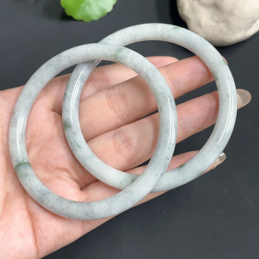 JadeiteRound Bangle Bracelet Size 58.3/58.3 Set of 2 Pieces