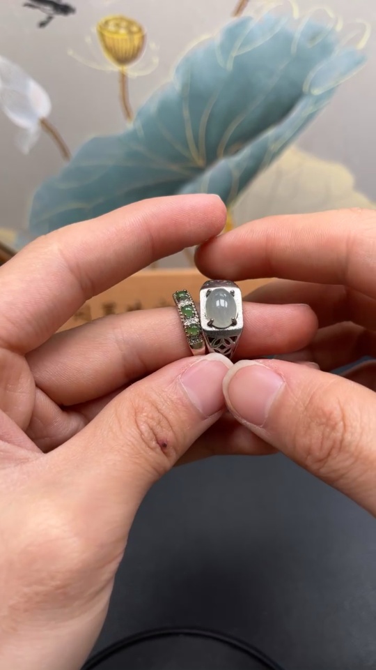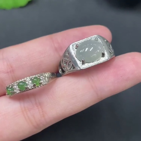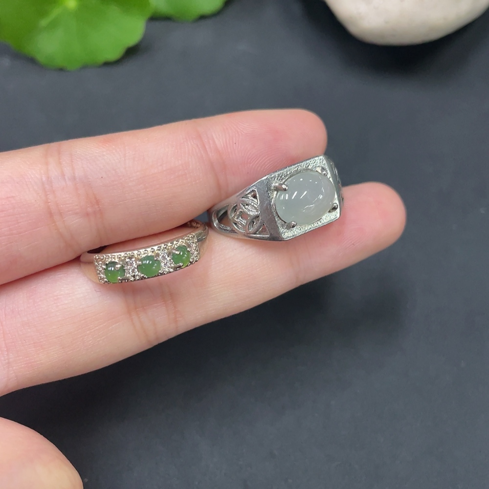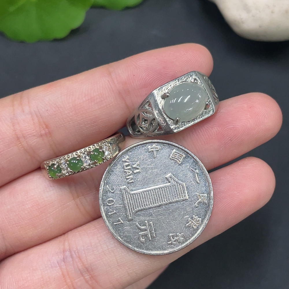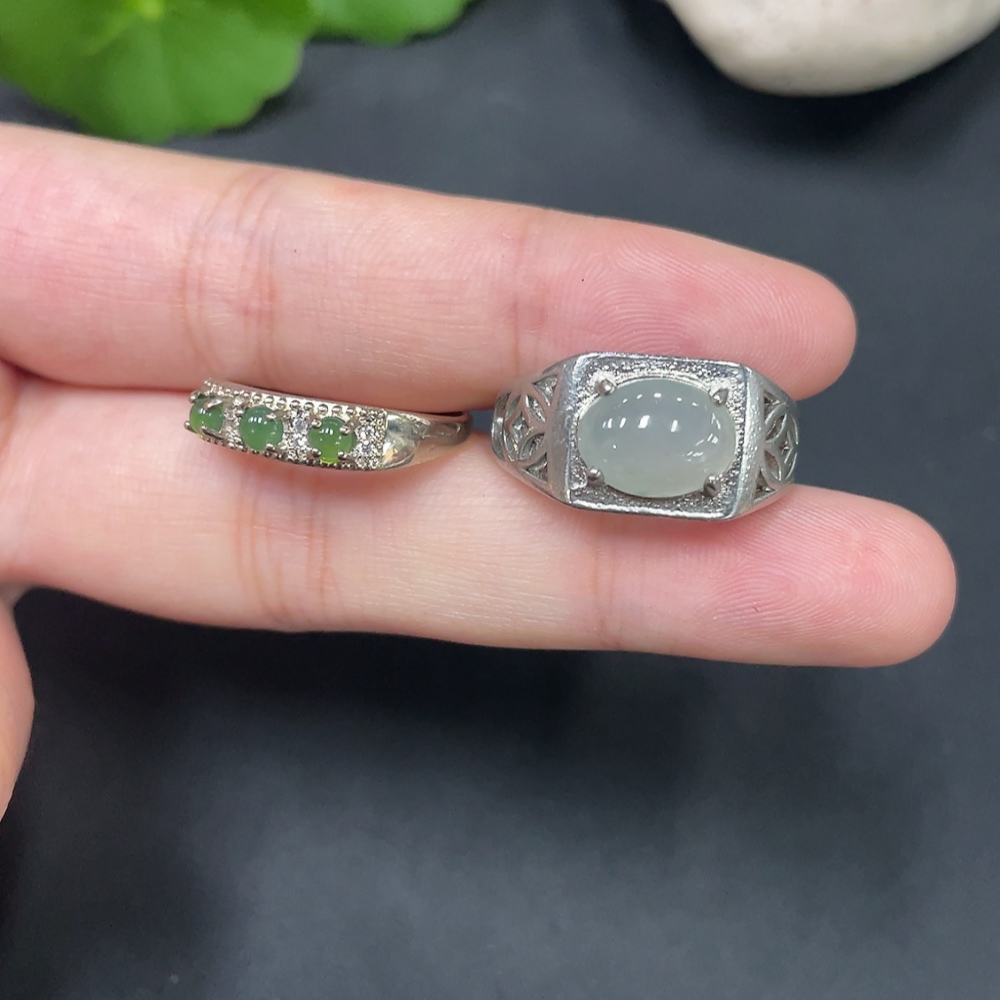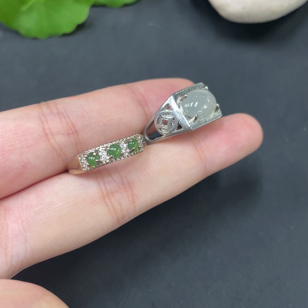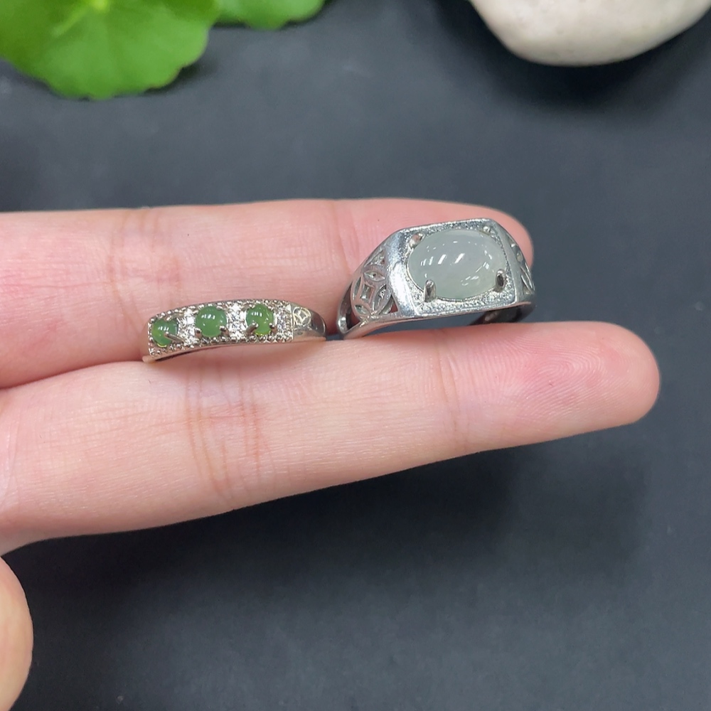 Jadeite Inlaid Ring Adjustable Non-Gold Two Pieces in a Lot