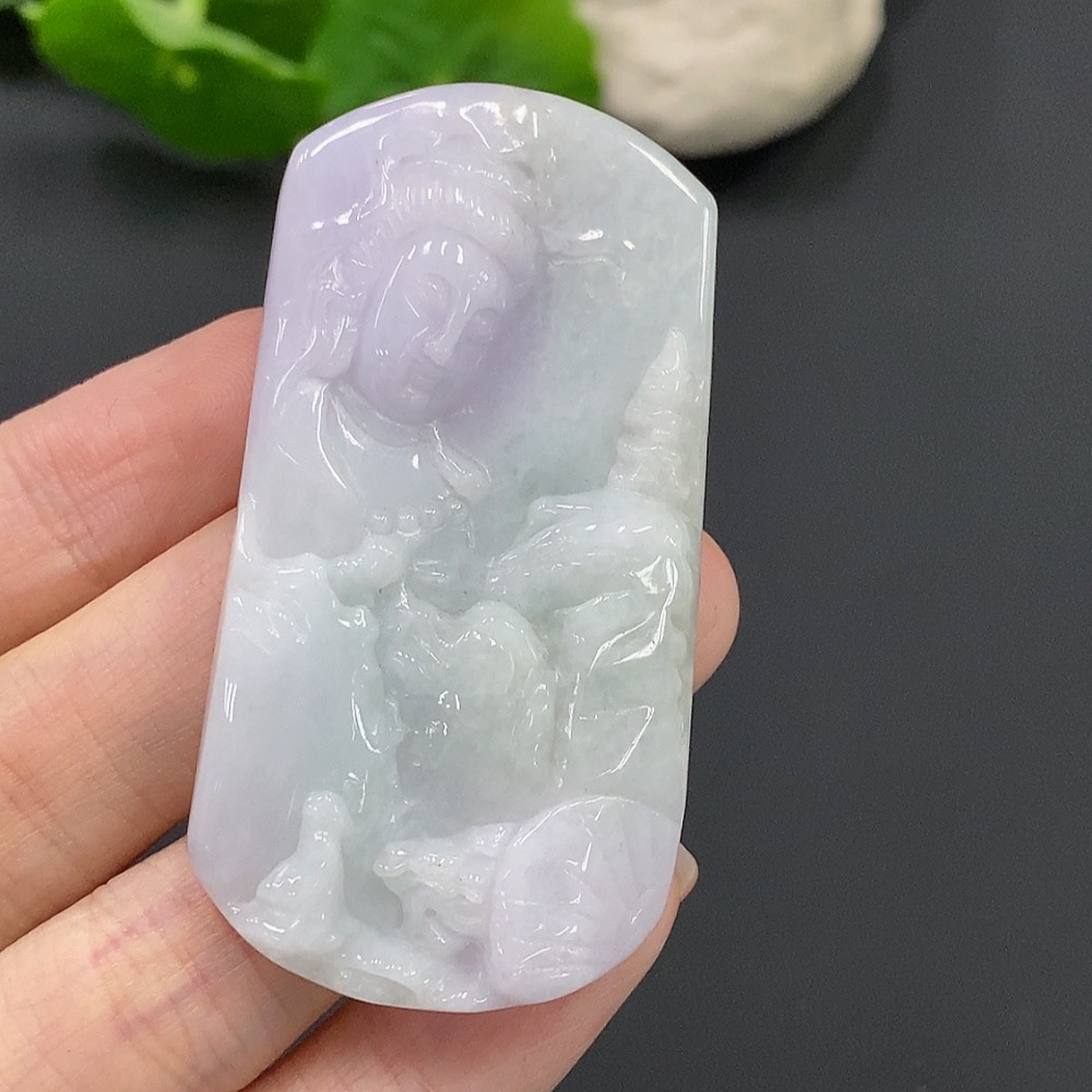 Trezaar - Jadeite Landscape Guanyin Pendant