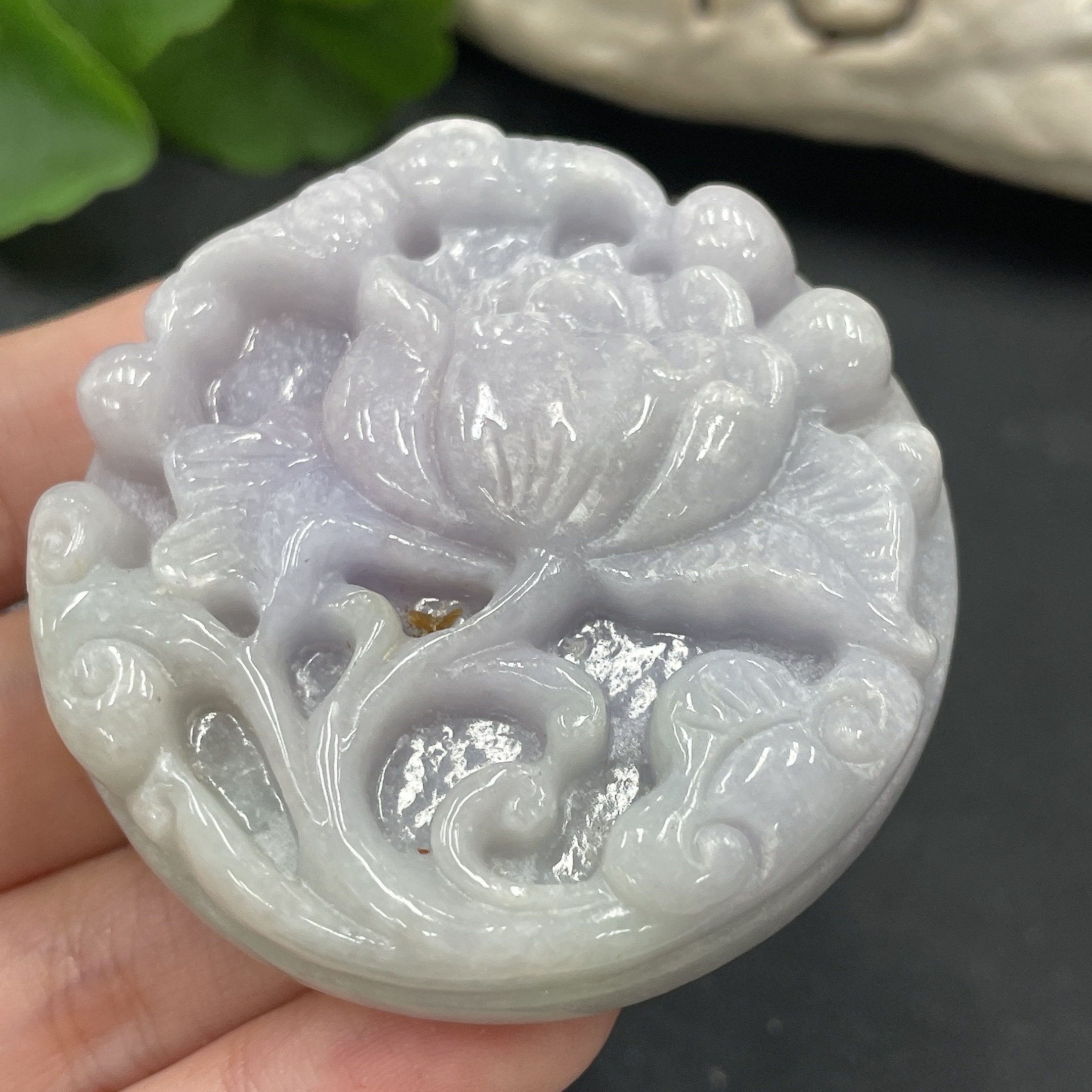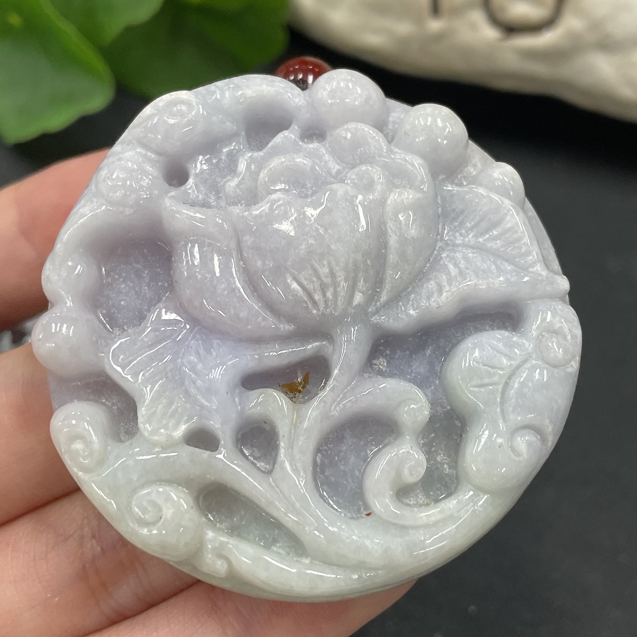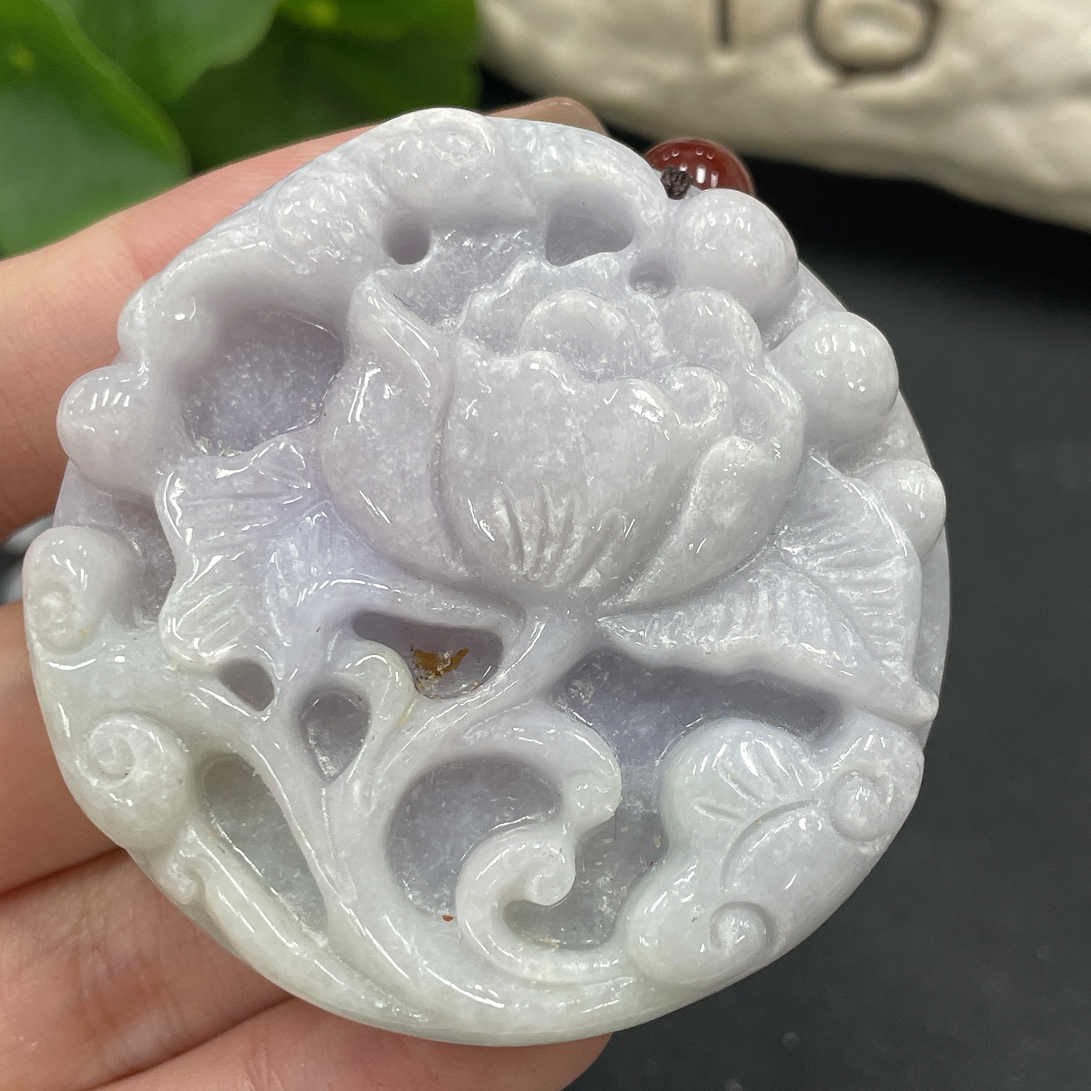 JadeiteFlower of Wealth and Honor Pendant (chain not jade)