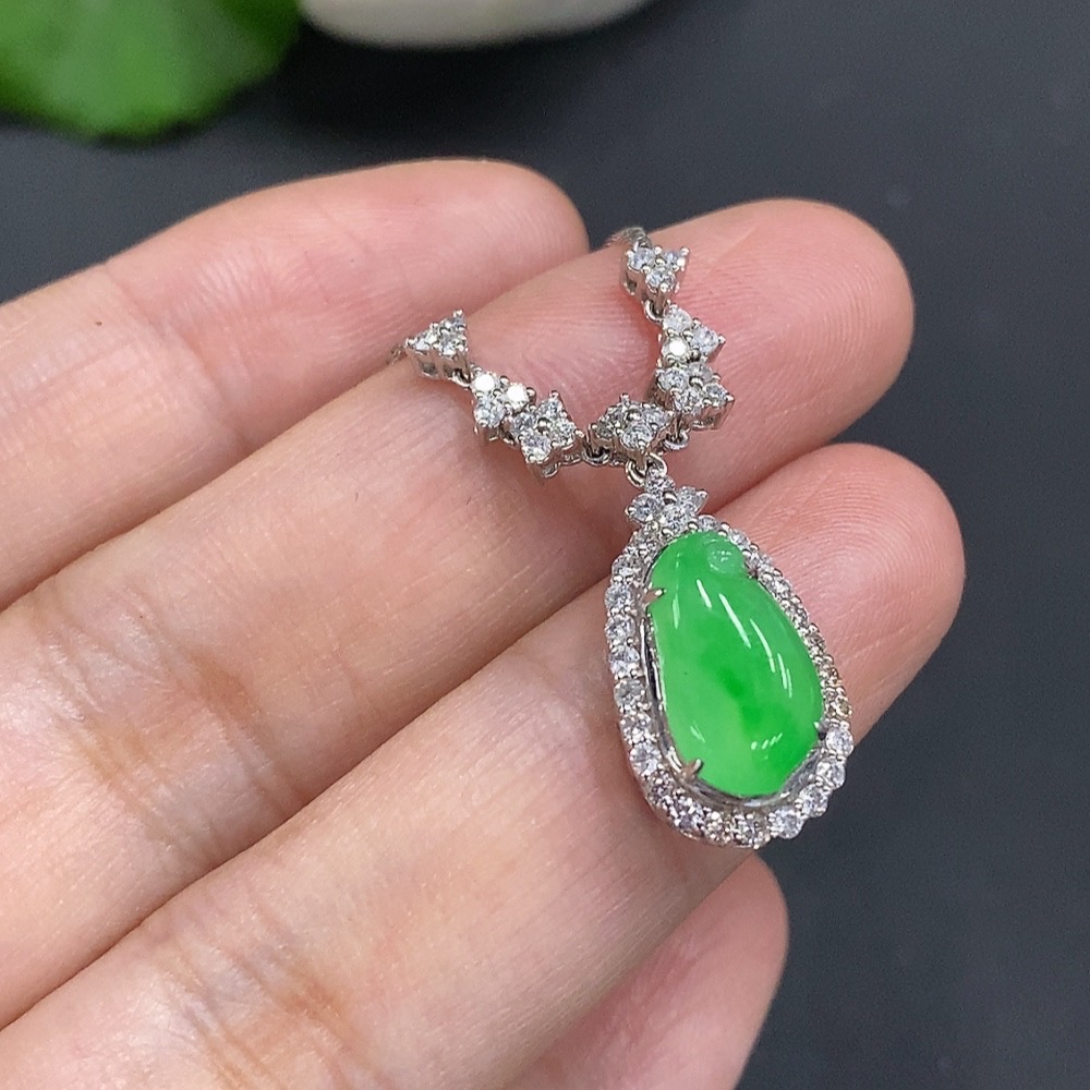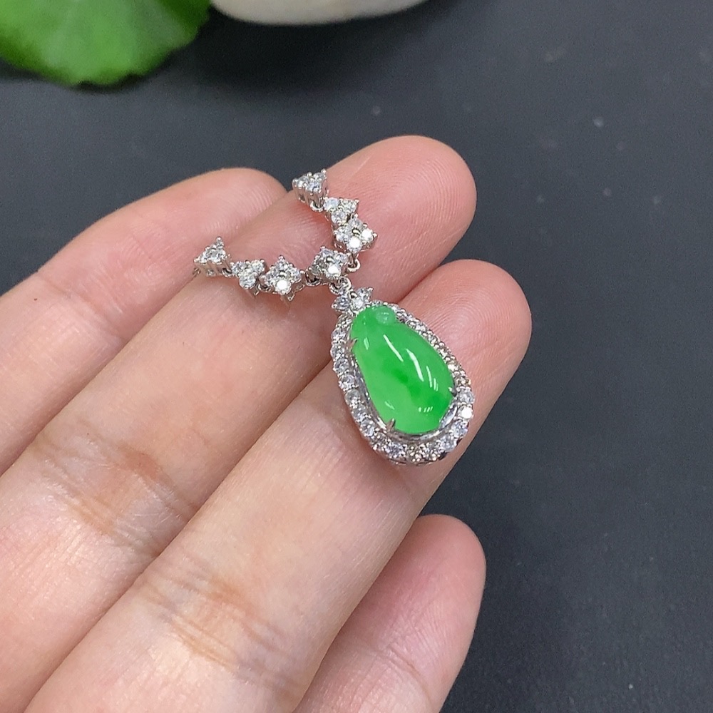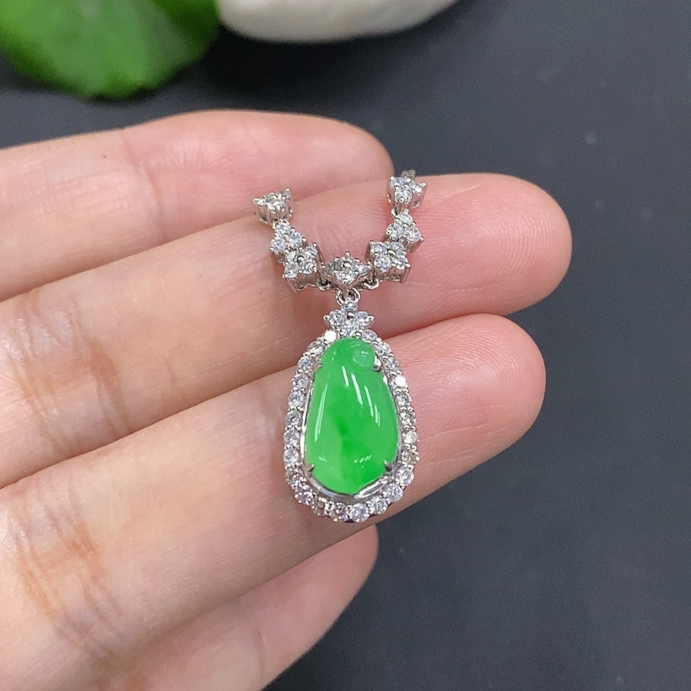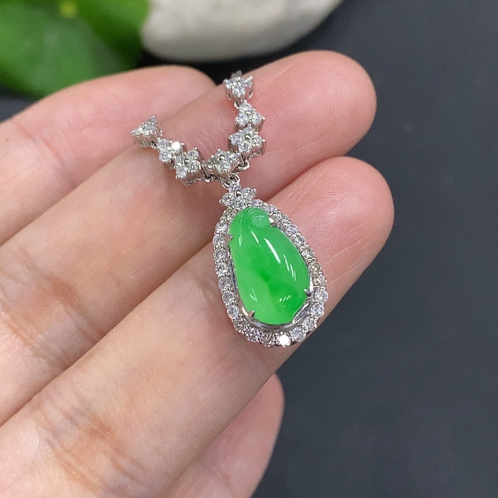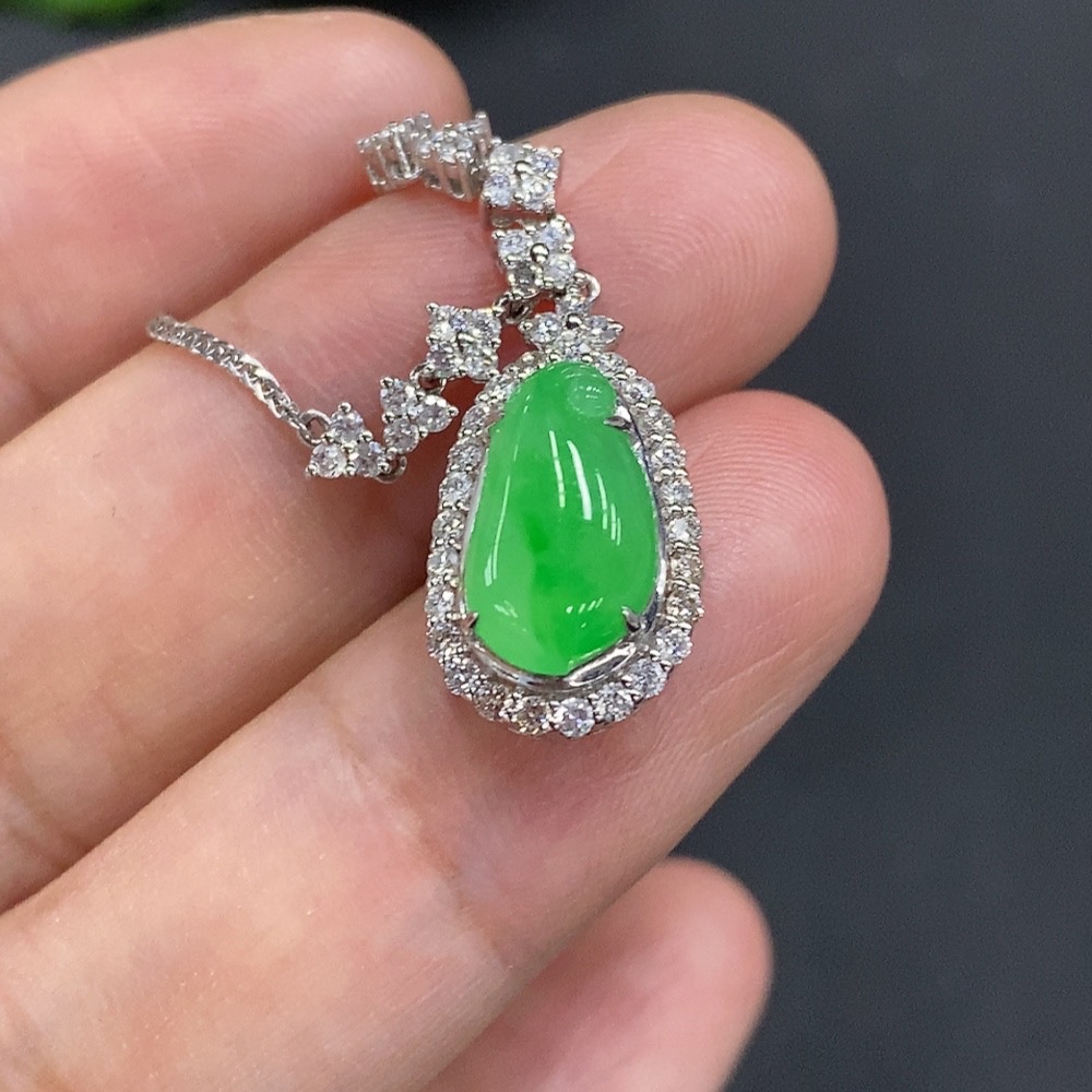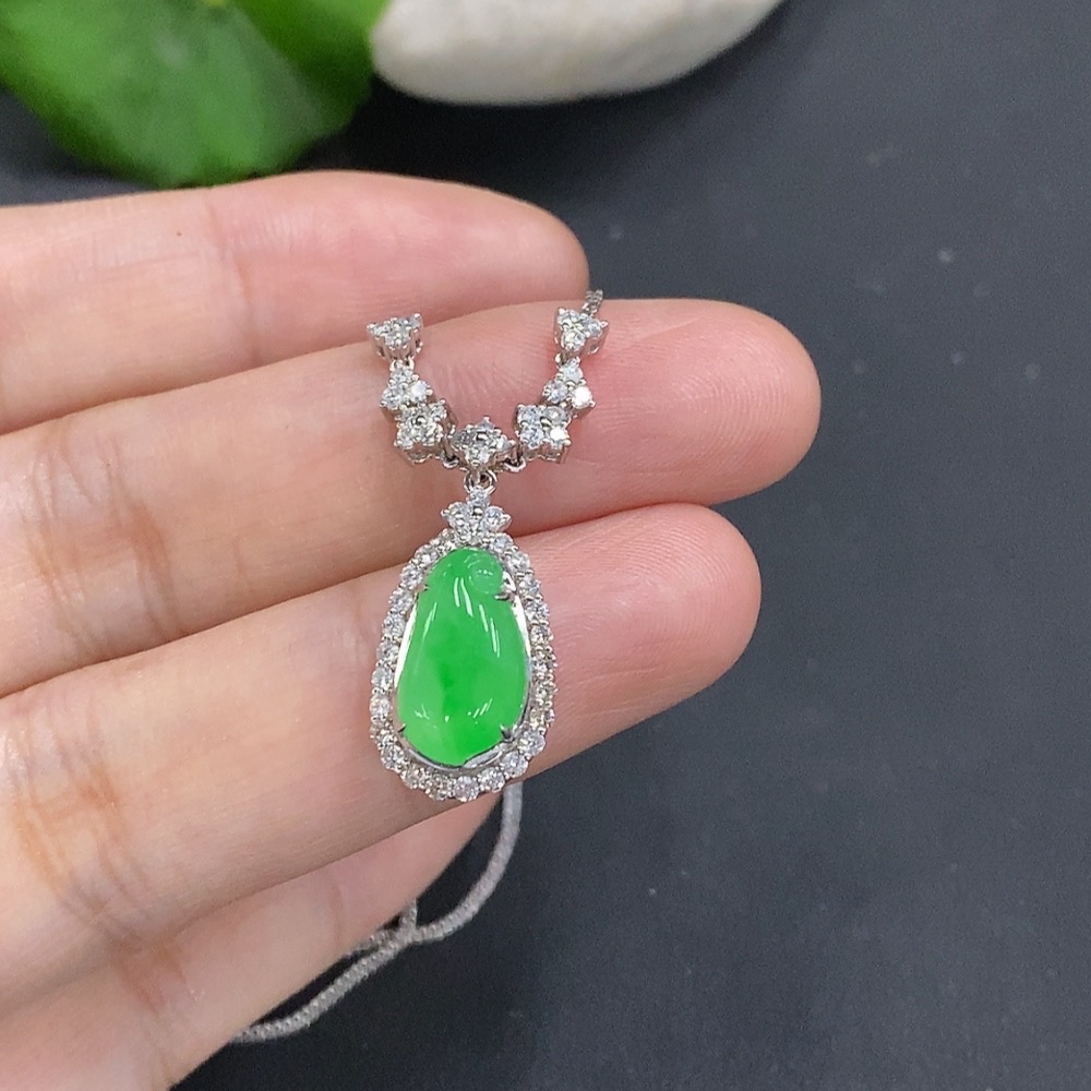 Jadeite Inlaid Pendant 18K Gold Approx. 4.5g (with gold chain)