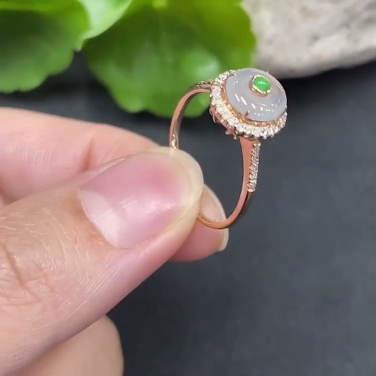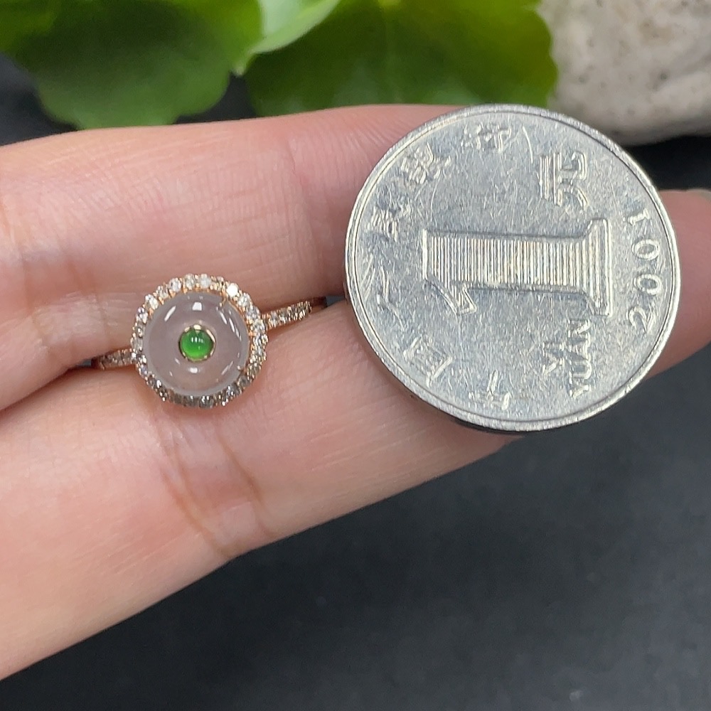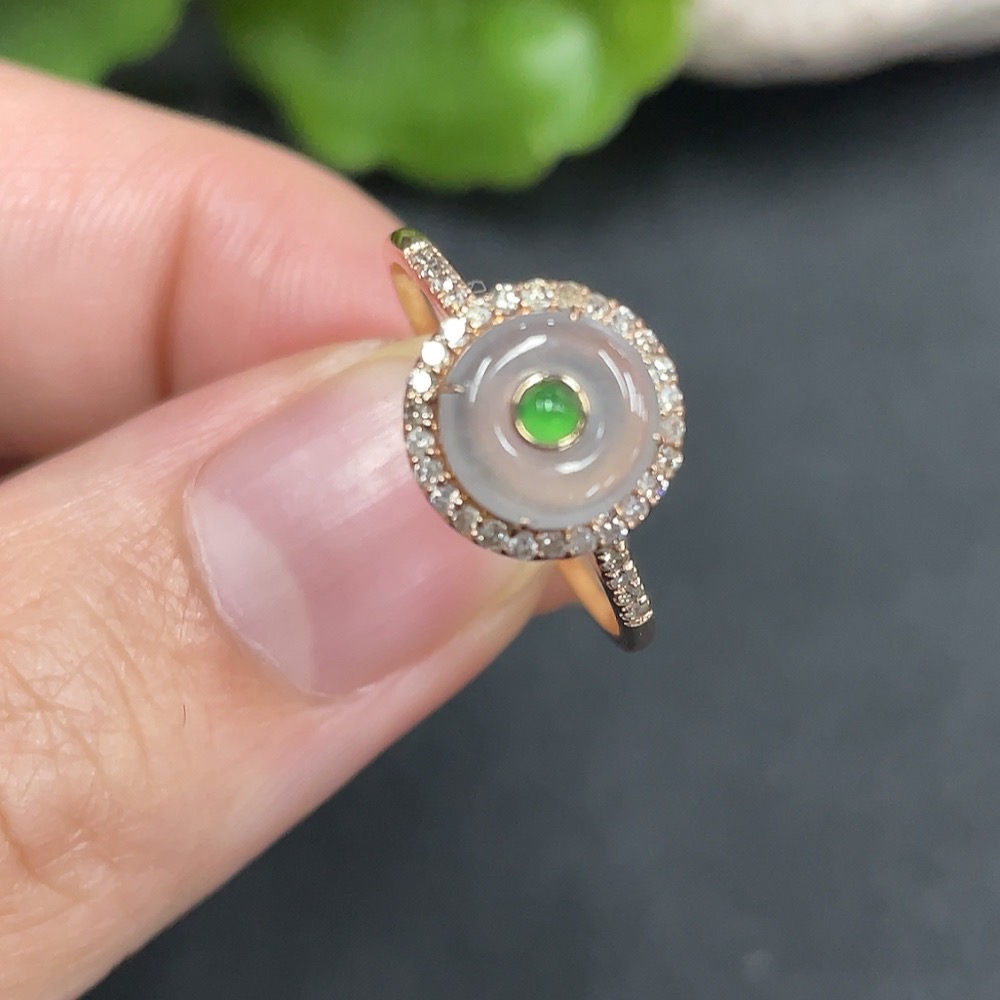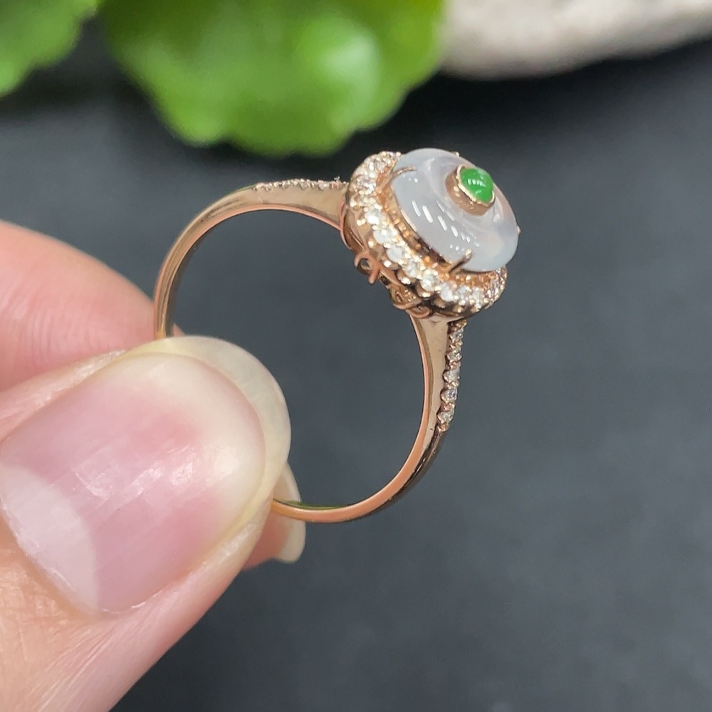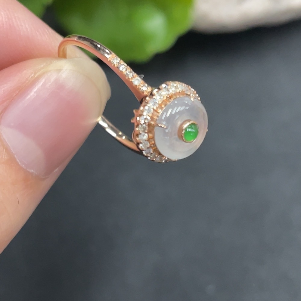 Jadeite Inlaid Ring Size 13 18K Gold Inlaid Total Weight Approx. 1.55g