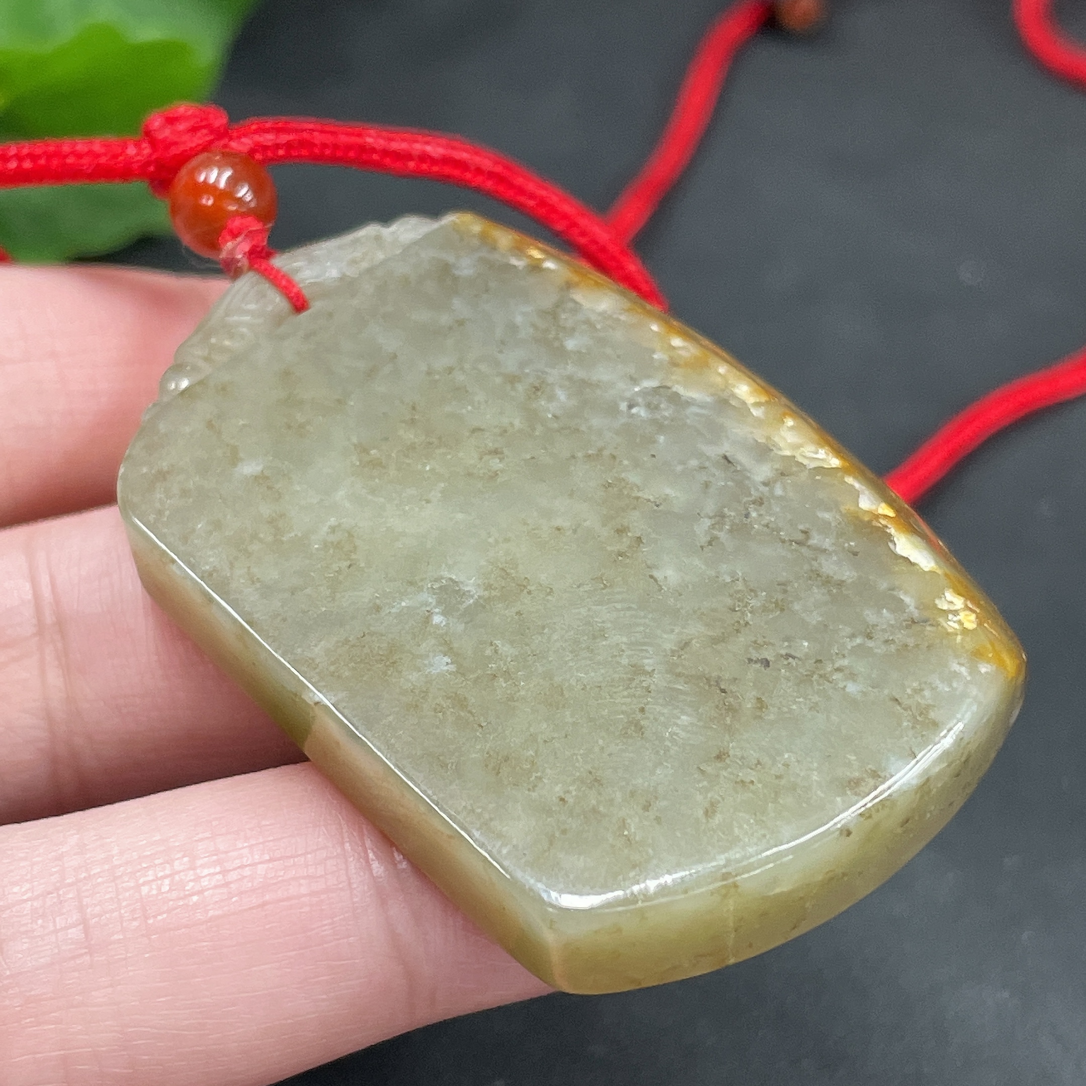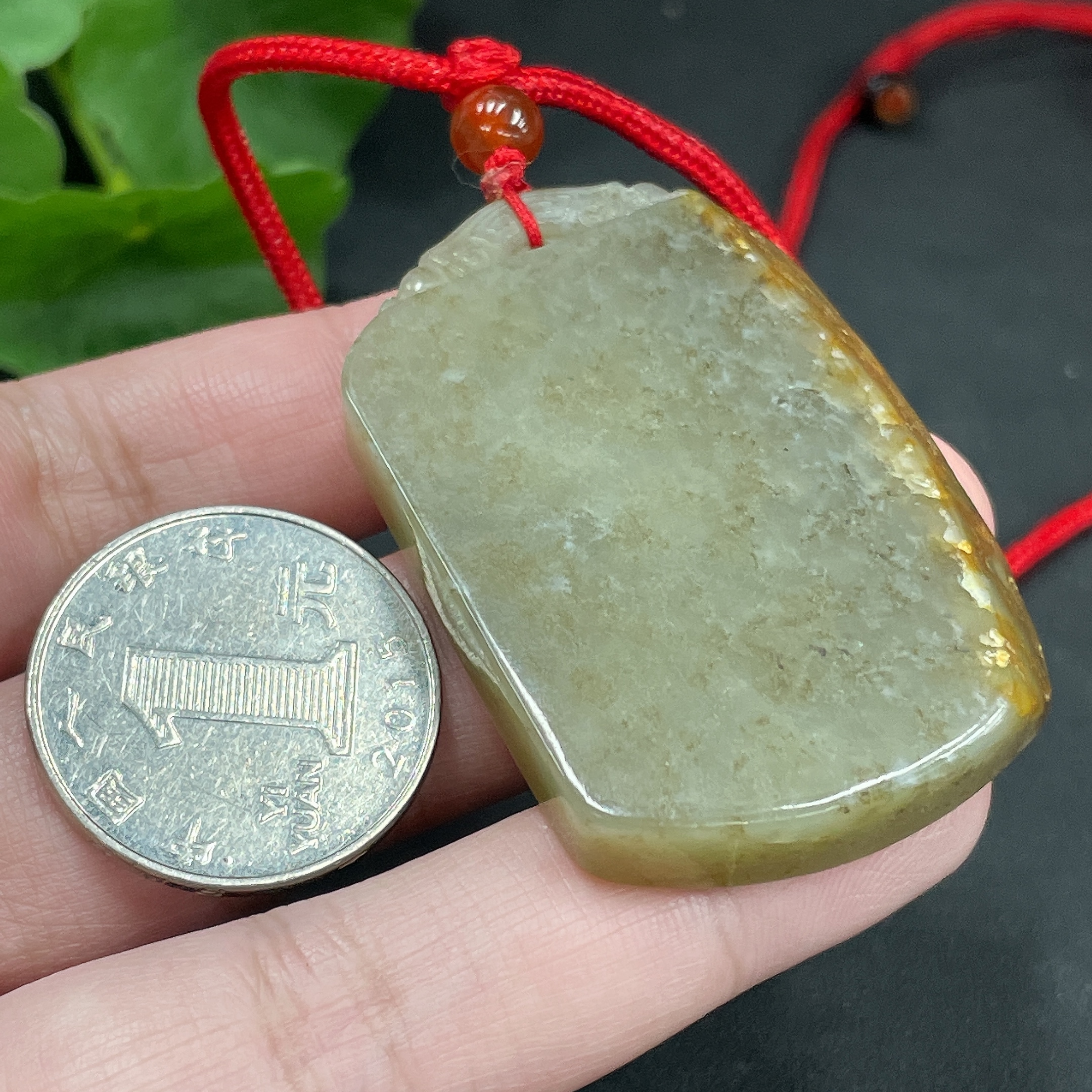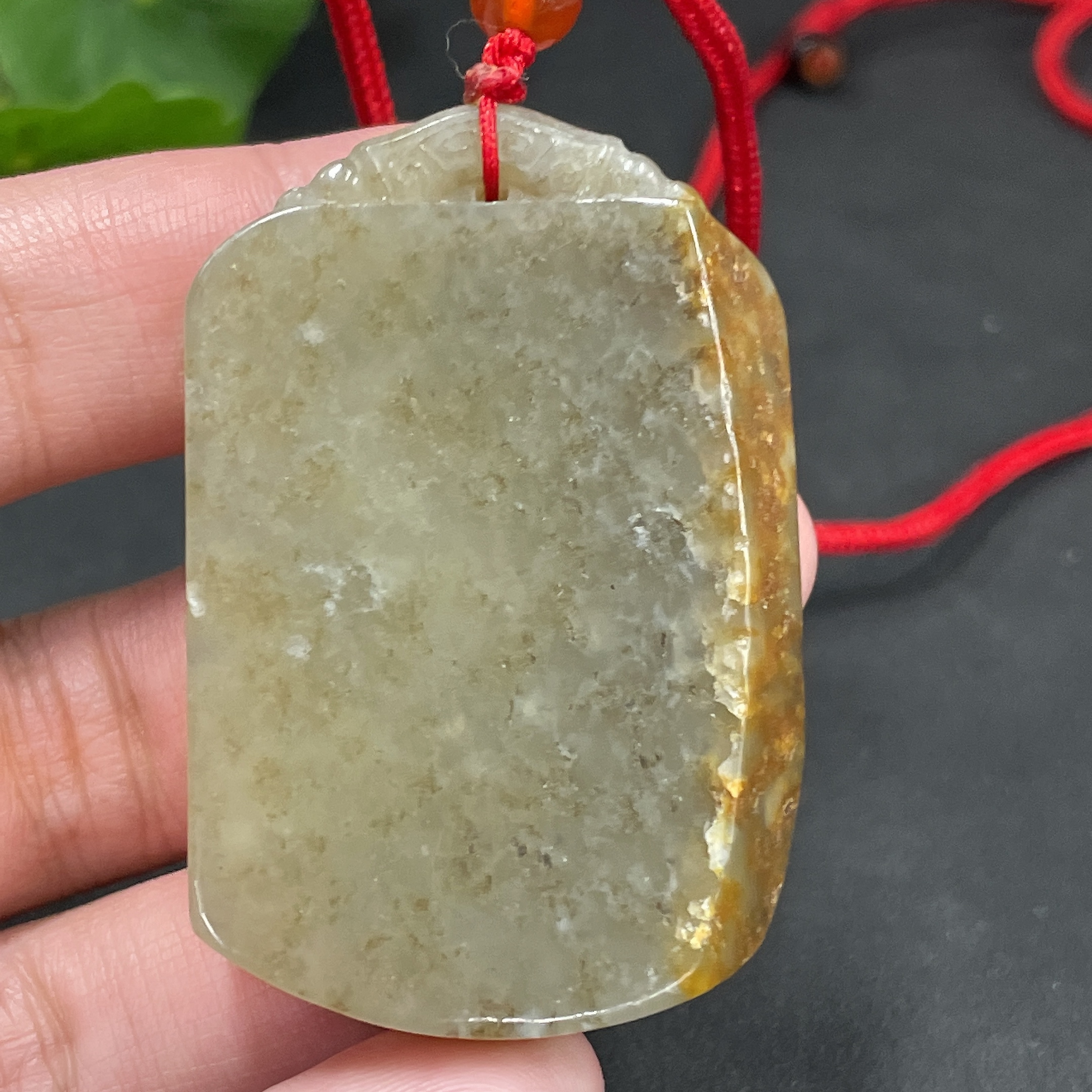 Hetian Jade Pendant, Plain Pendant, Total Weight Approx. (Including Rope) 34.8g, Undetermined Skin Color Origin