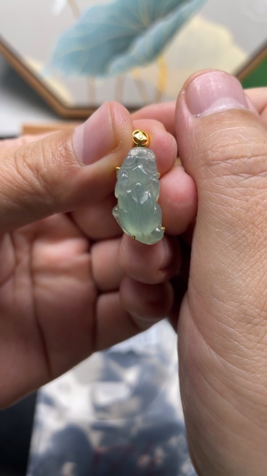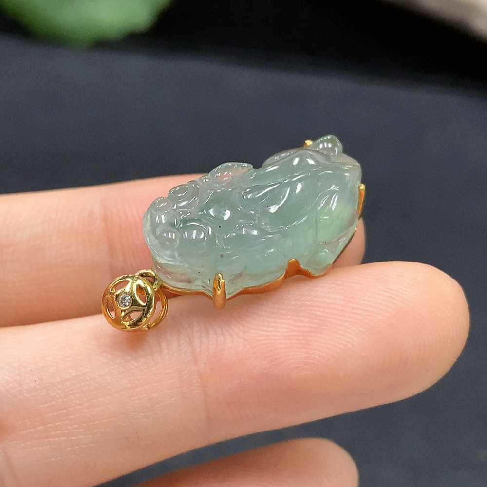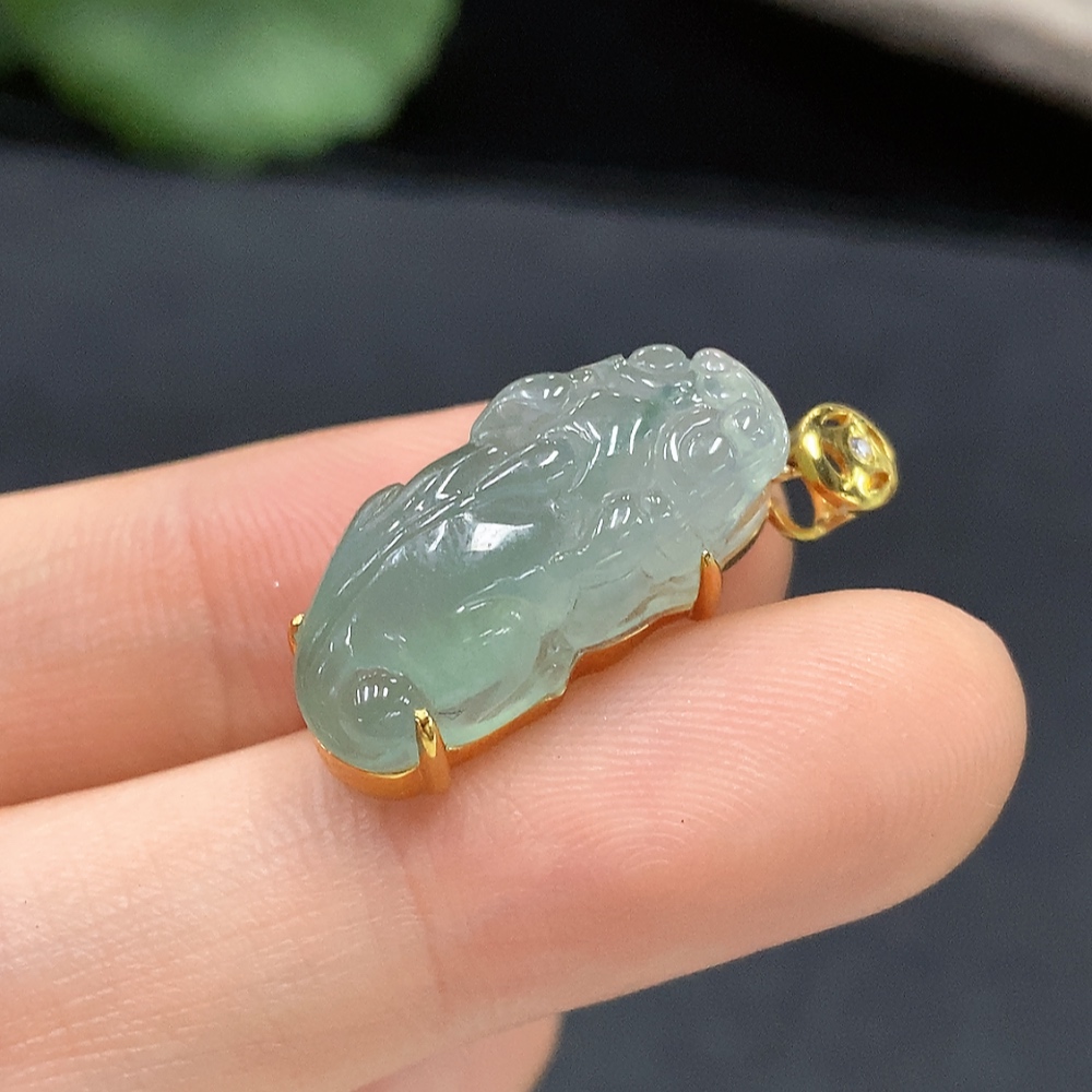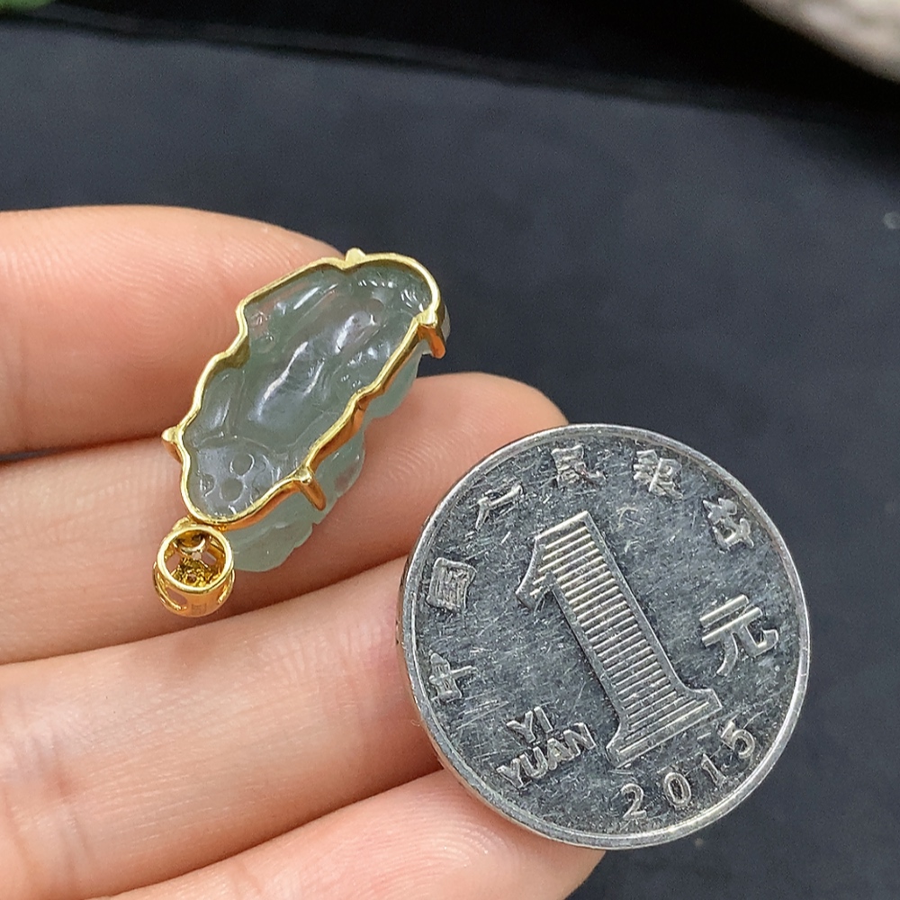 JadeitePi Xiu Inlaid Pendant (18K Gold) Total Weight 3.7g