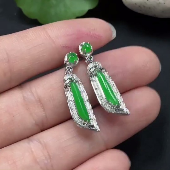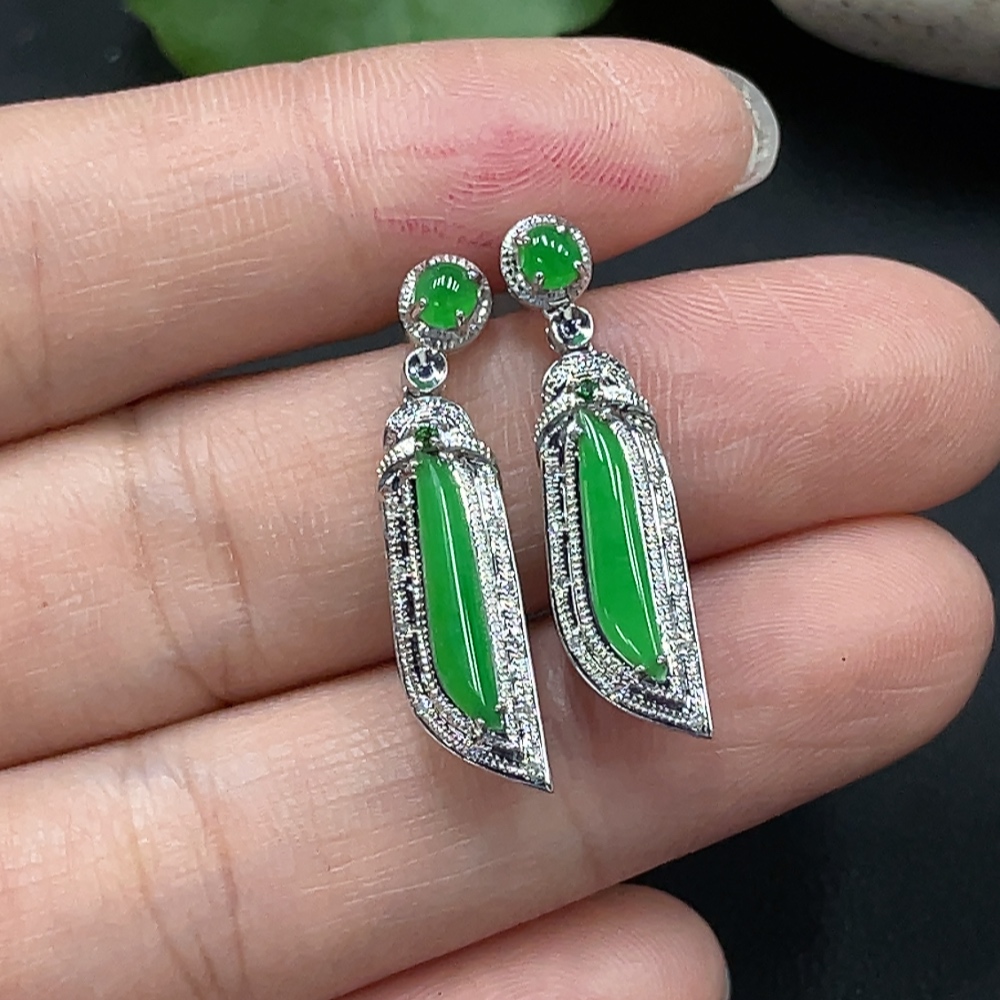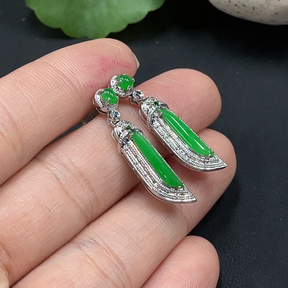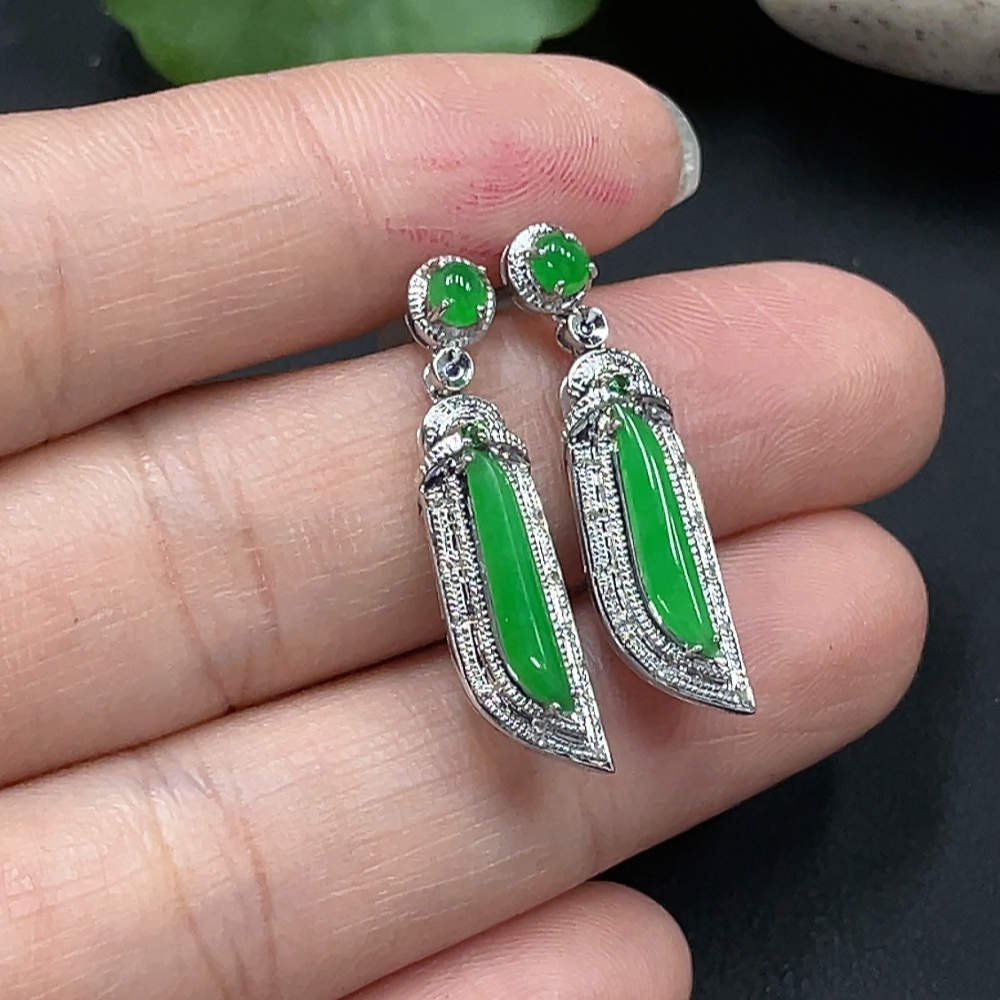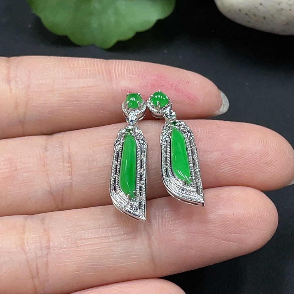 Jadeite Inlaid Earrings 18K Gold Setting Total Weight Approx. 3.8g
