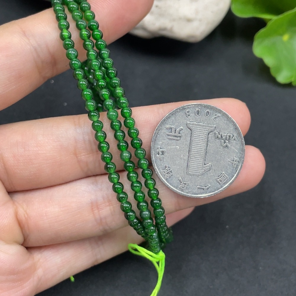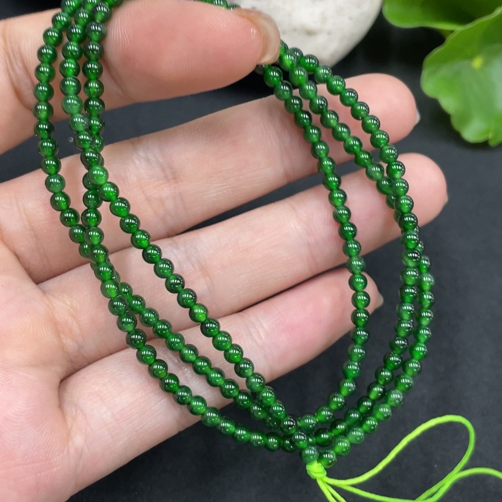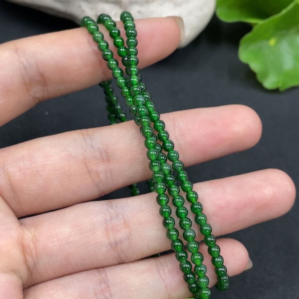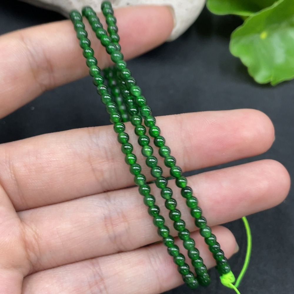 Trezaar - Jadeite Beaded Necklace Approx. 3.2mm Total Weight 9.038g