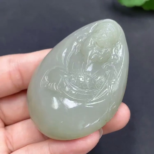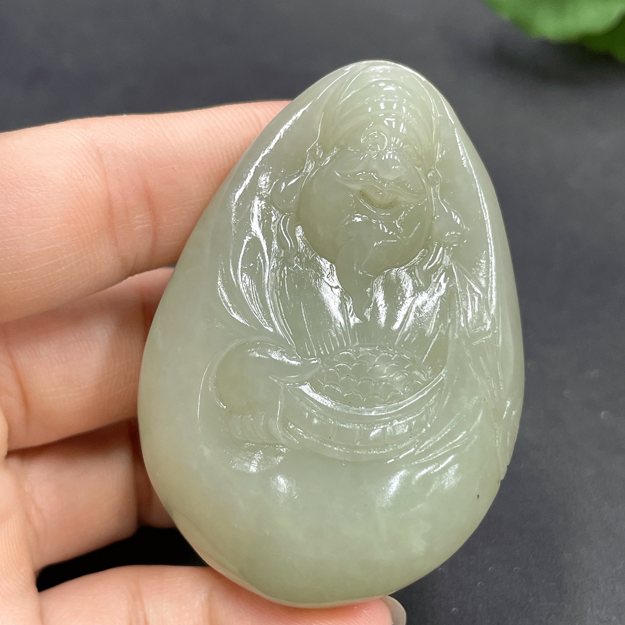 Hetian Jade Pendant - God of Wealth - Undetermined Skin Color Origin - Total Weight Approx. 75.9g