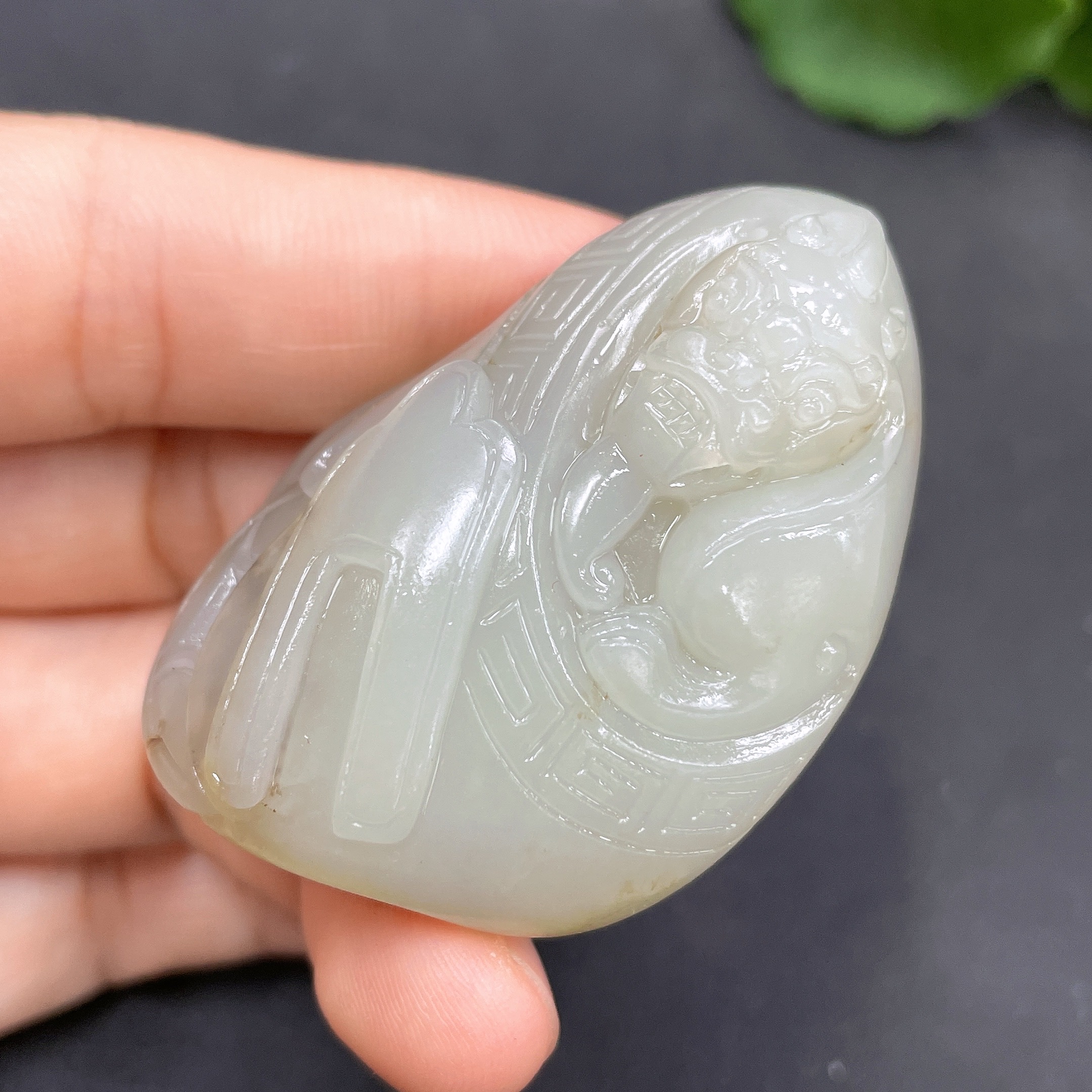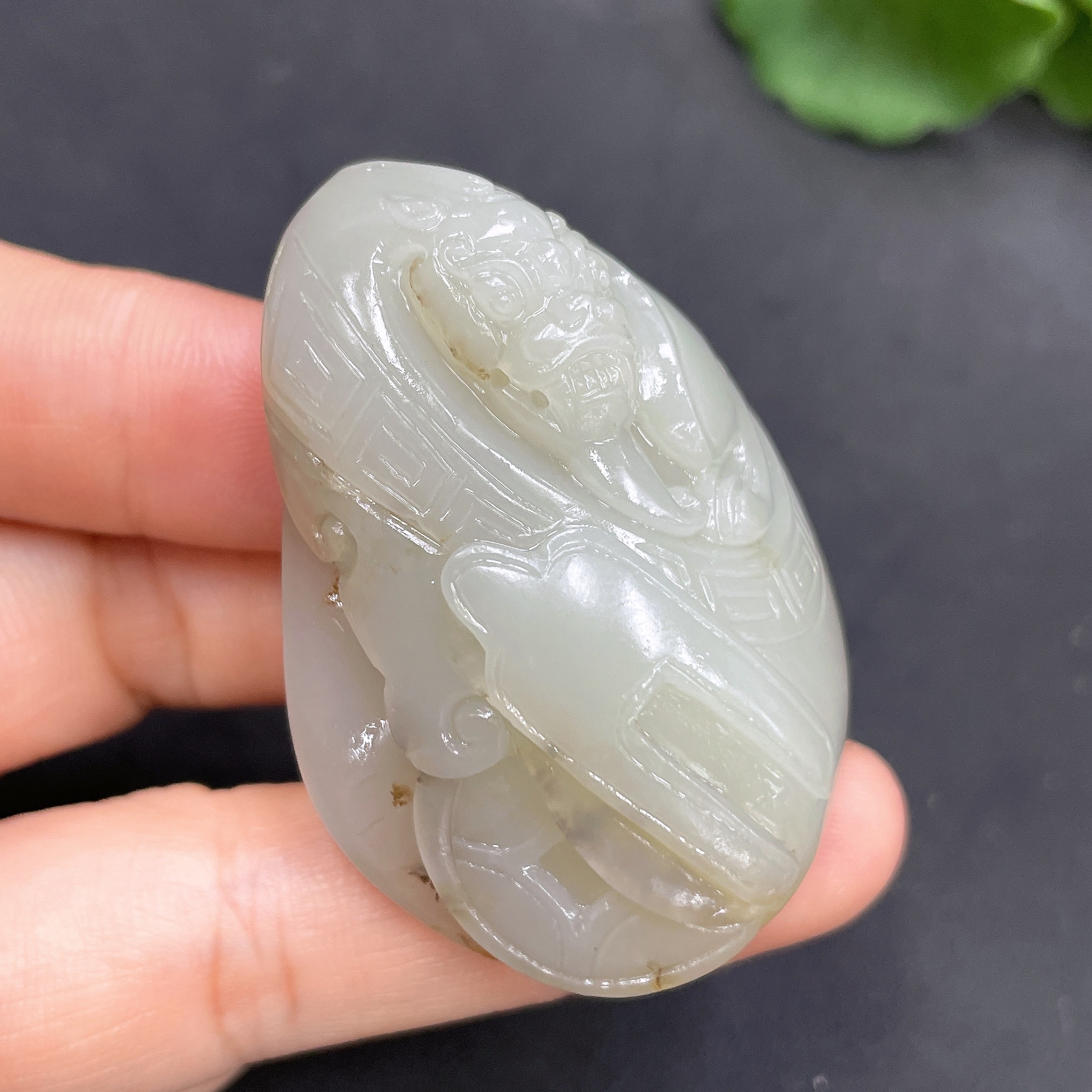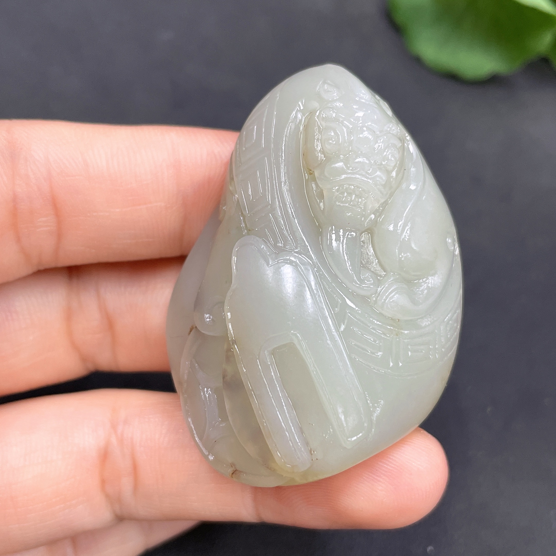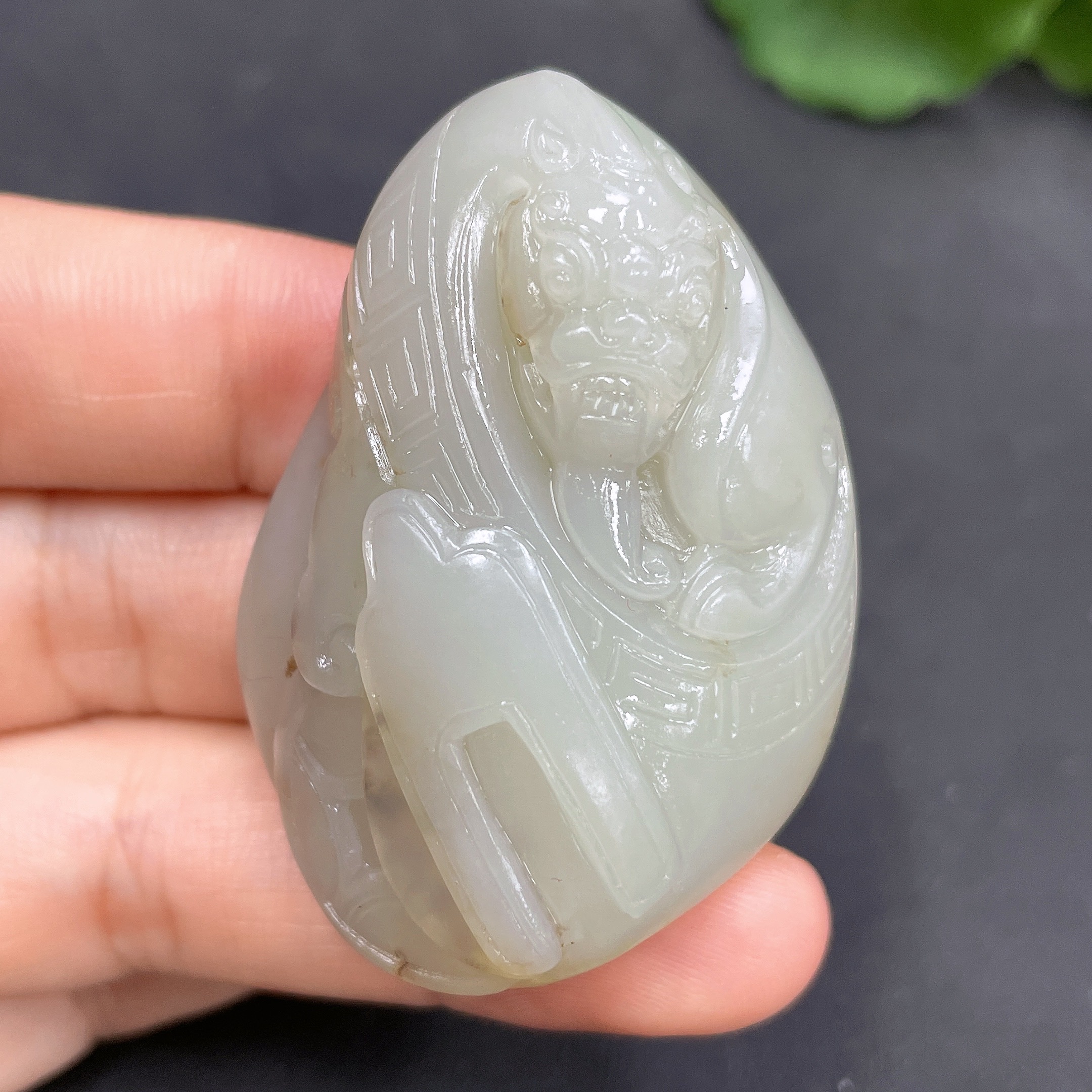 Hetian Jade Pendant Auspicious Beast Undetermined Skin Color Origin Total Weight Approx. 42.5g