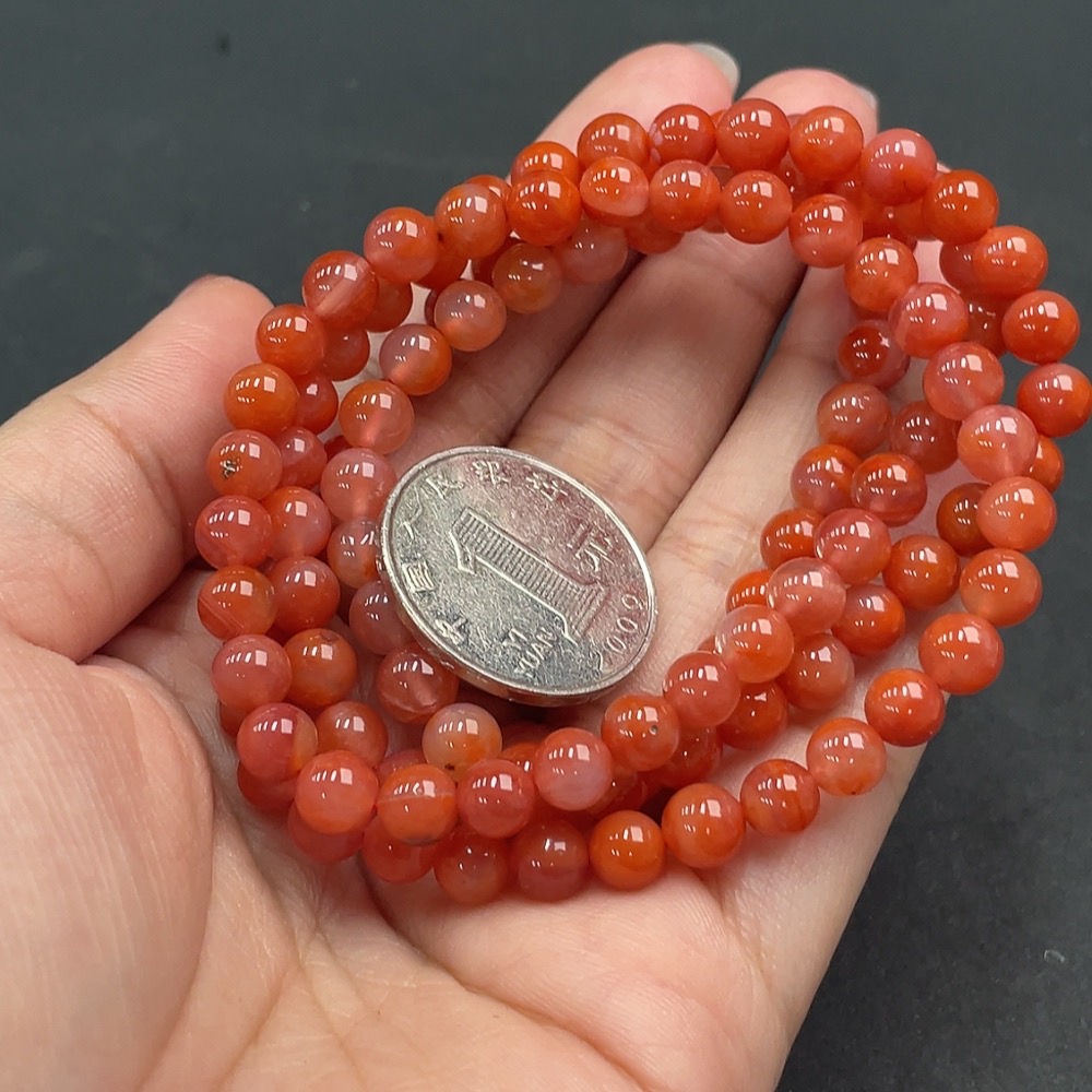 Trezaar - South Red Agate Bead Necklace Approximately 5.9mm Total Weight About 37.59g