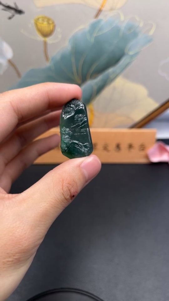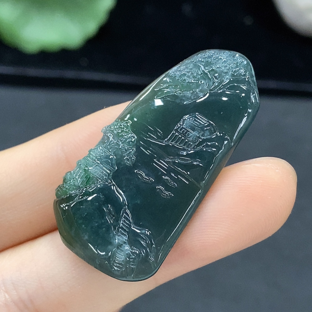 Trezaar - Jadeitelandscape pendant, total weight 5.961g