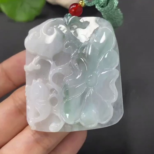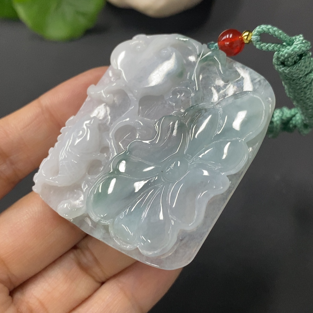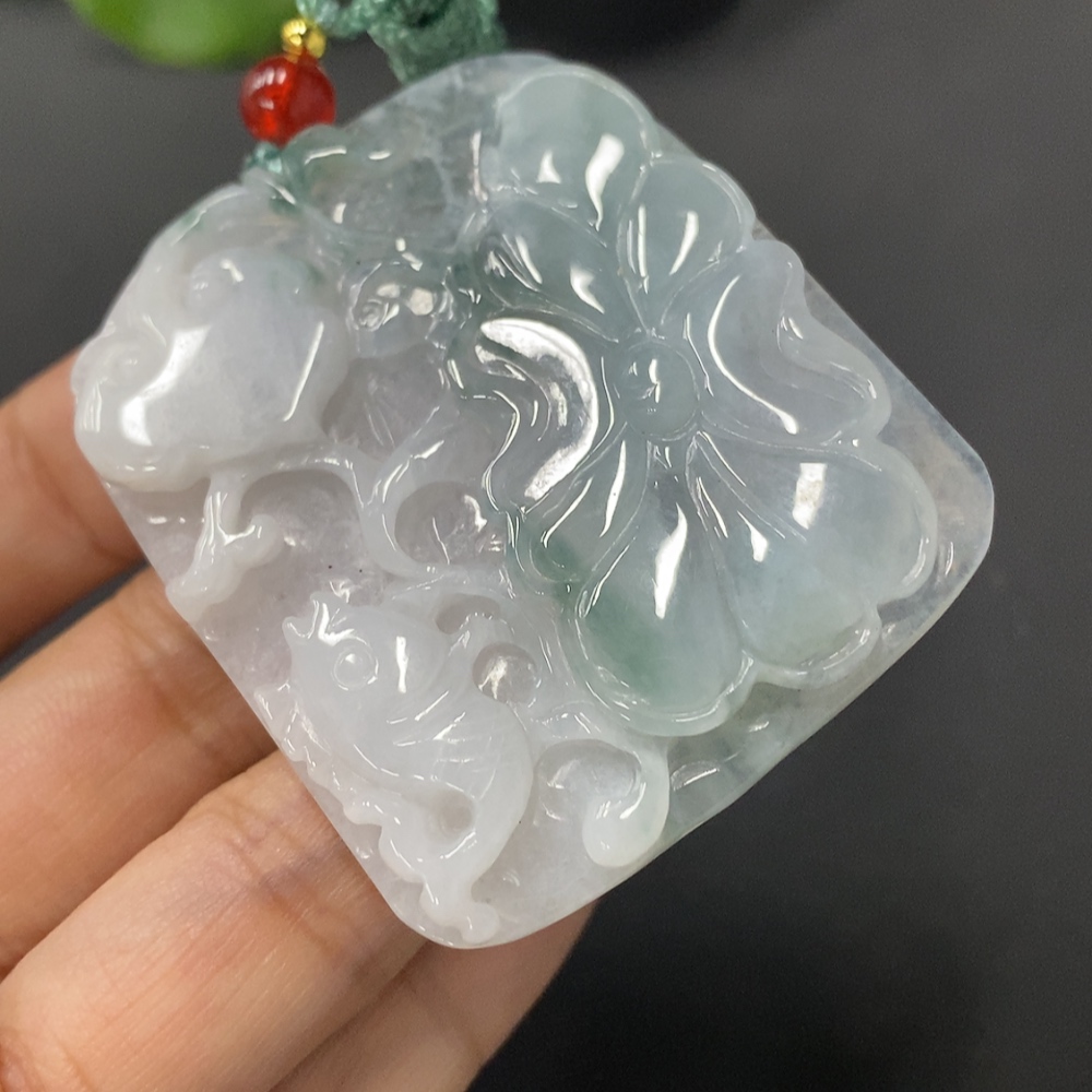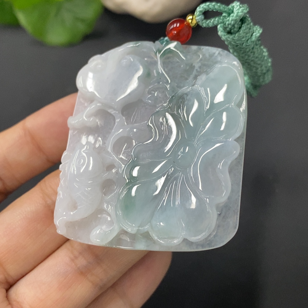 JadeitePendant Lotus Leaf and Fish Total Weight 27.391g