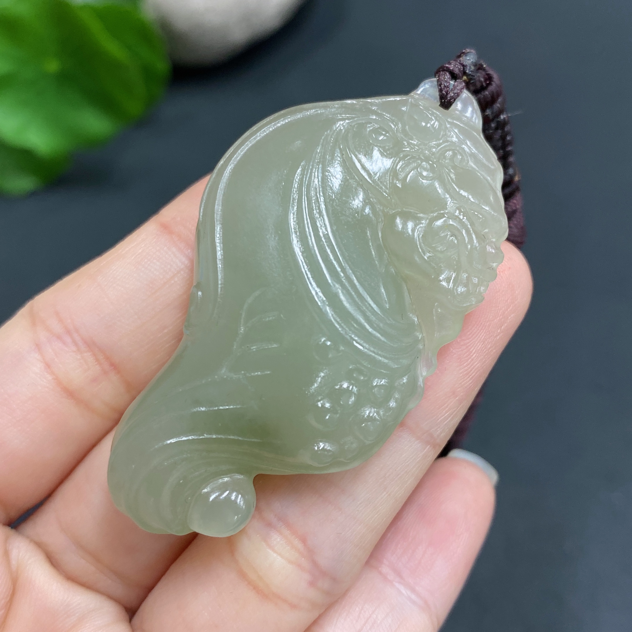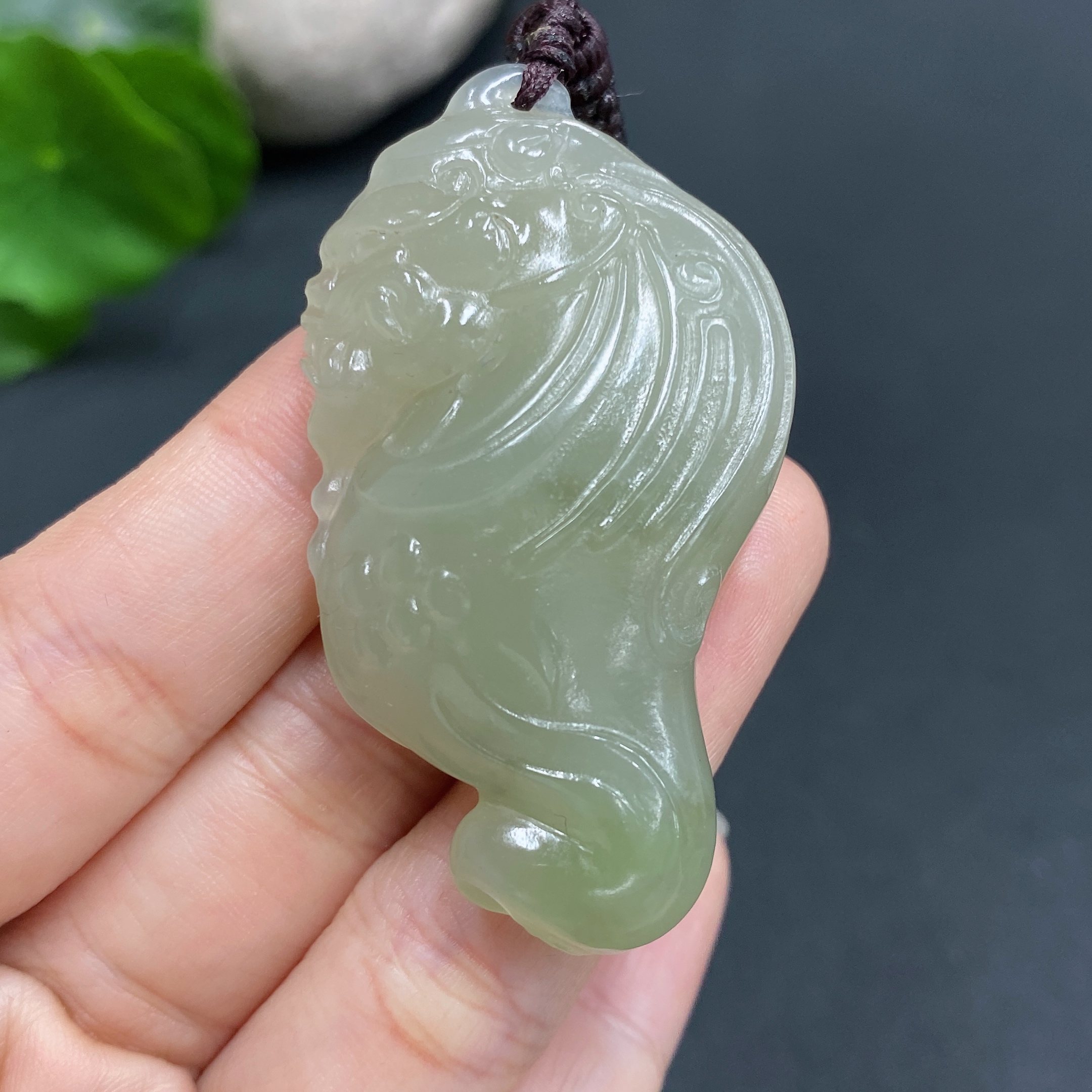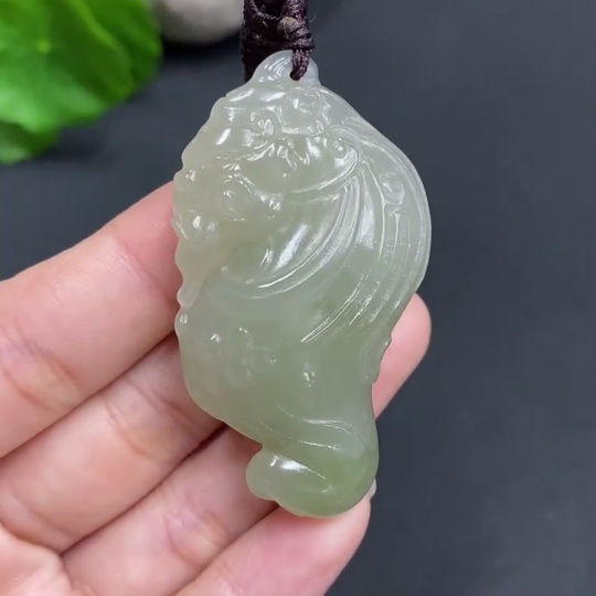 Hetian Jade Pendant Auspicious Beast Total weight approx. (including rope) 28.9g