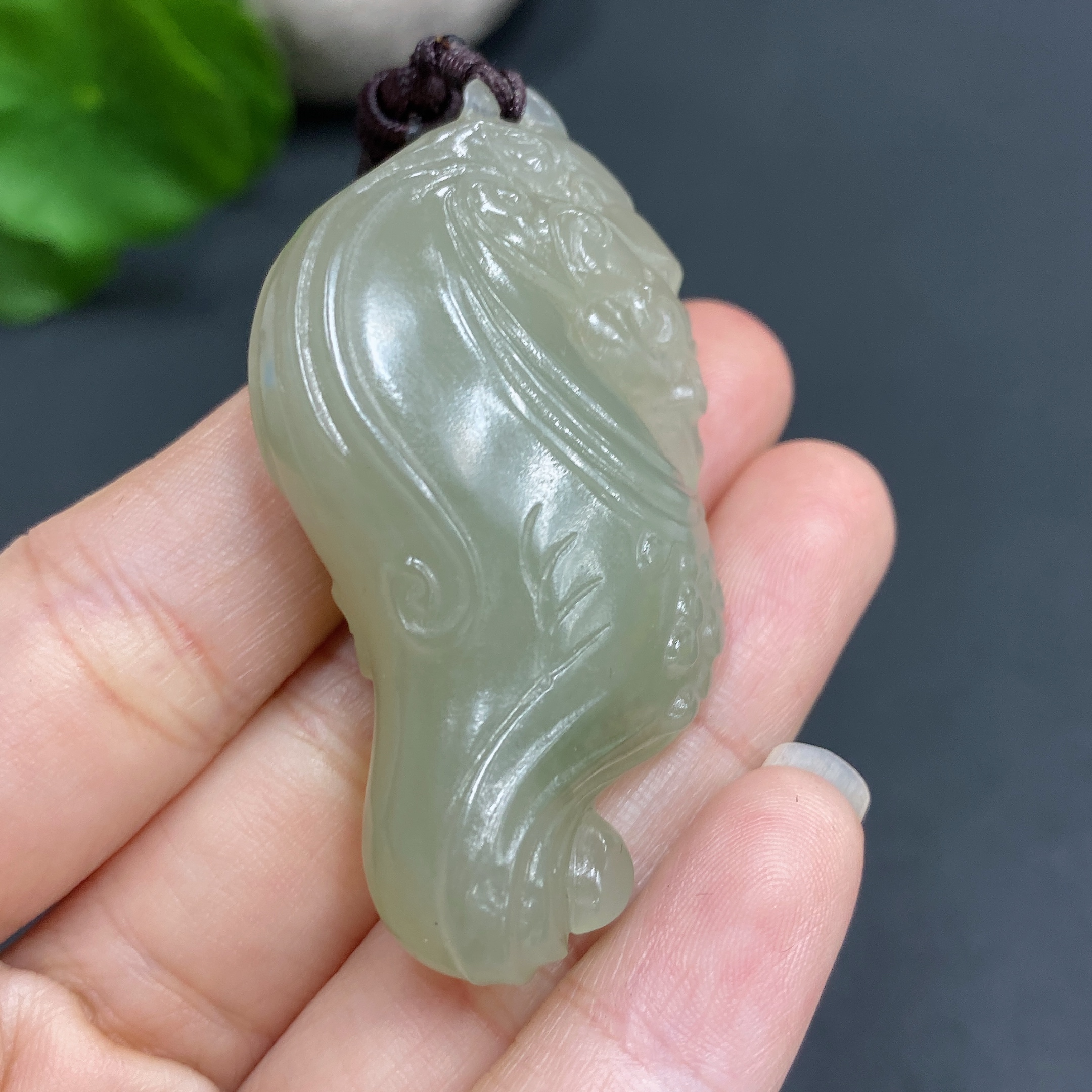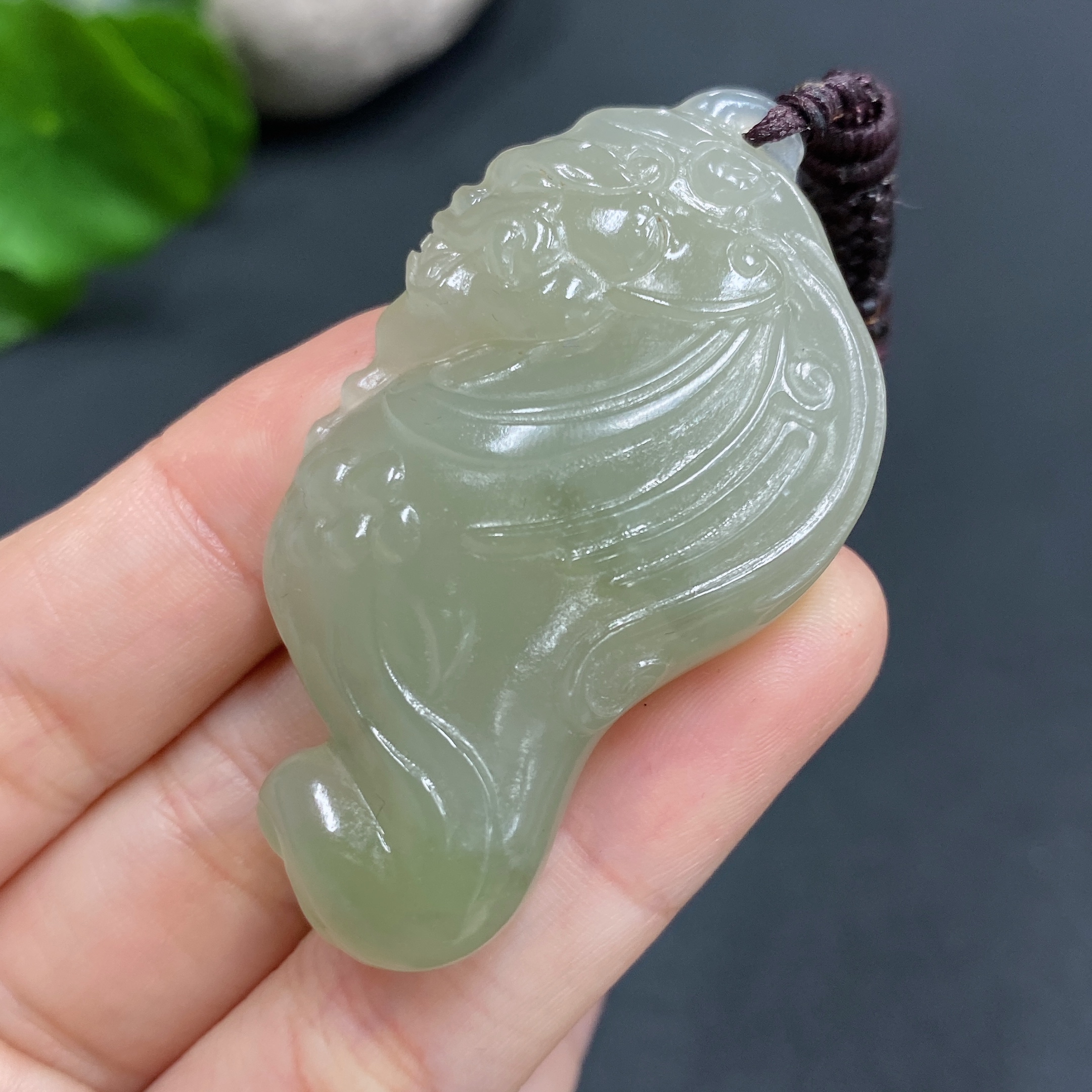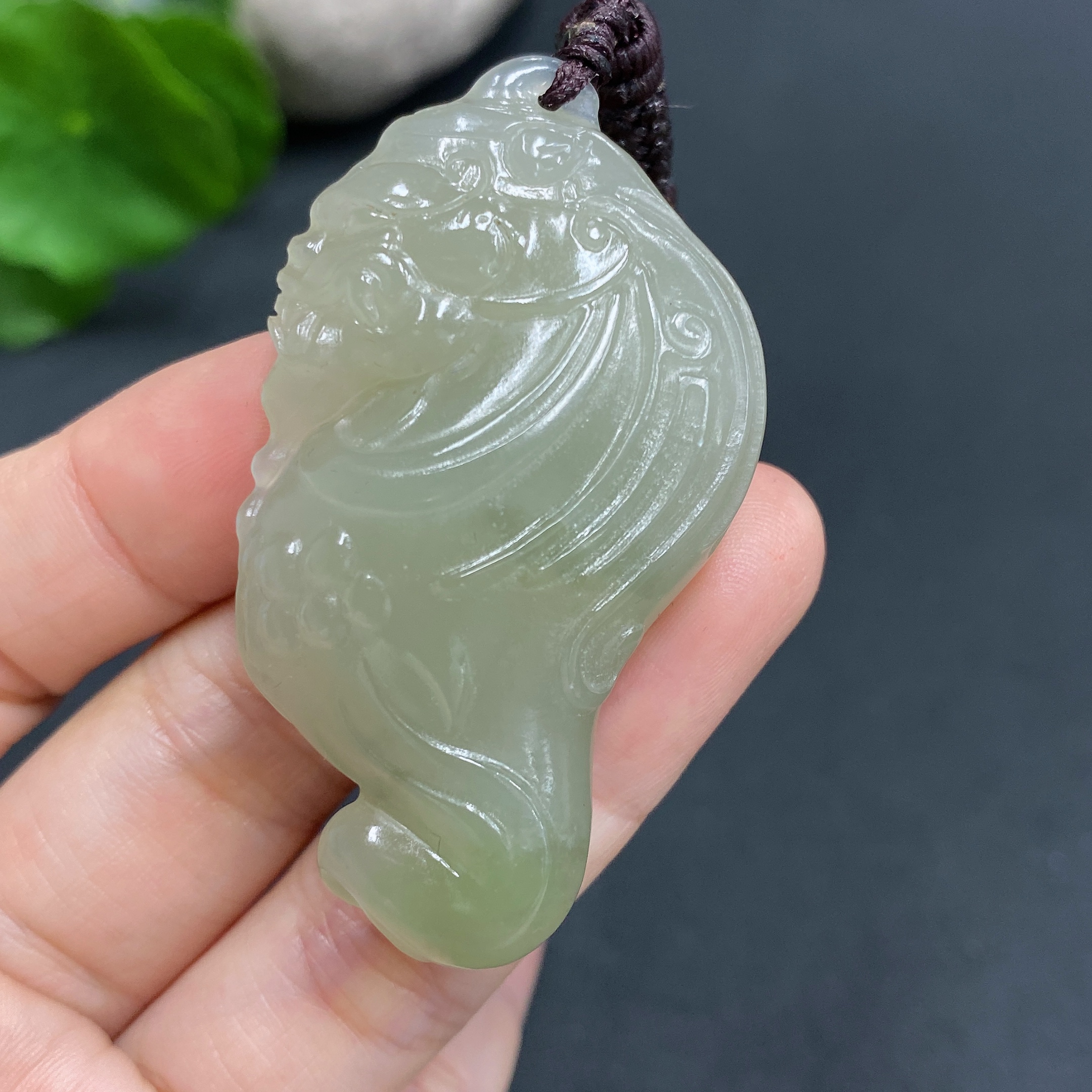 Hetian Jade Pendant Auspicious Beast Total weight approx. (including rope) 28.9g
