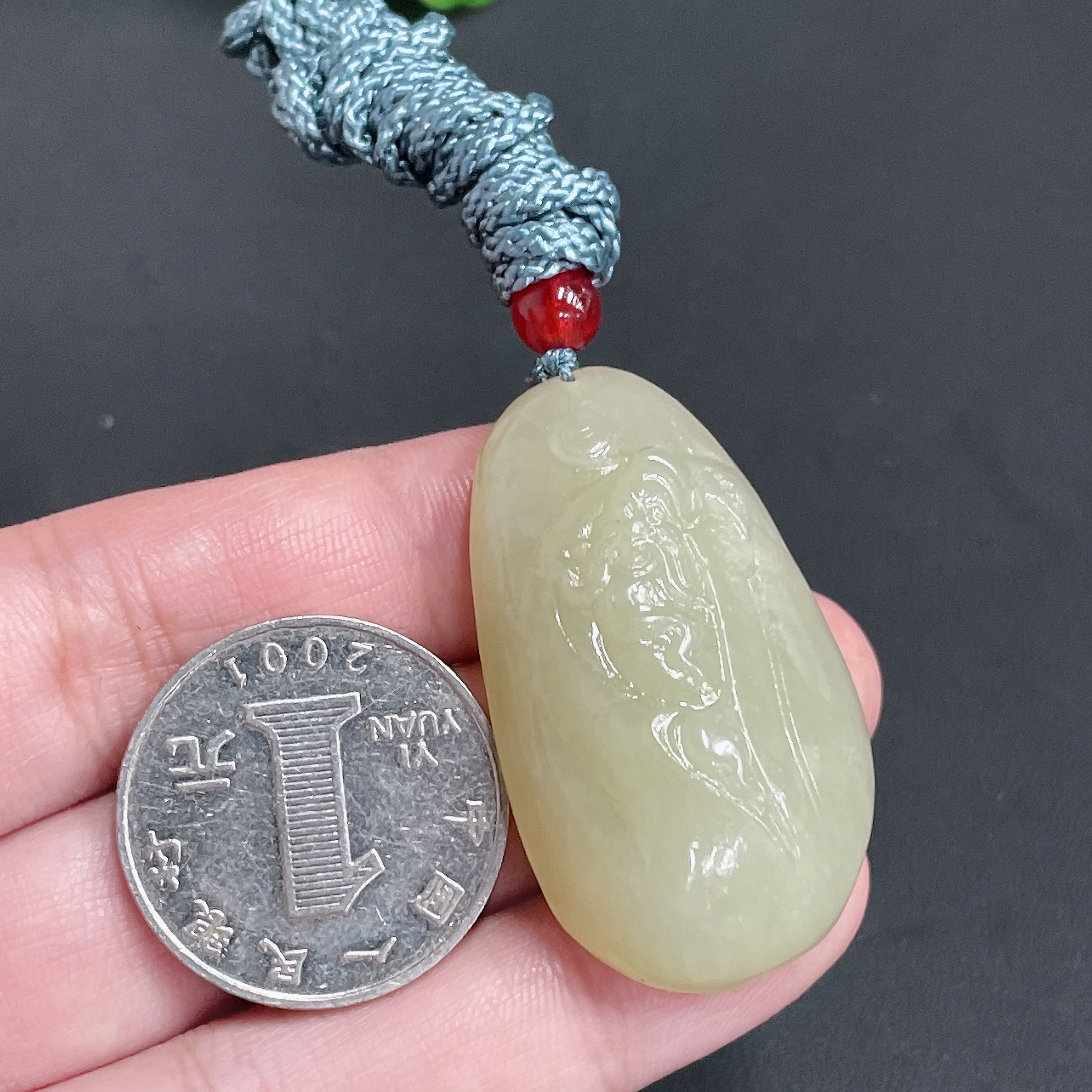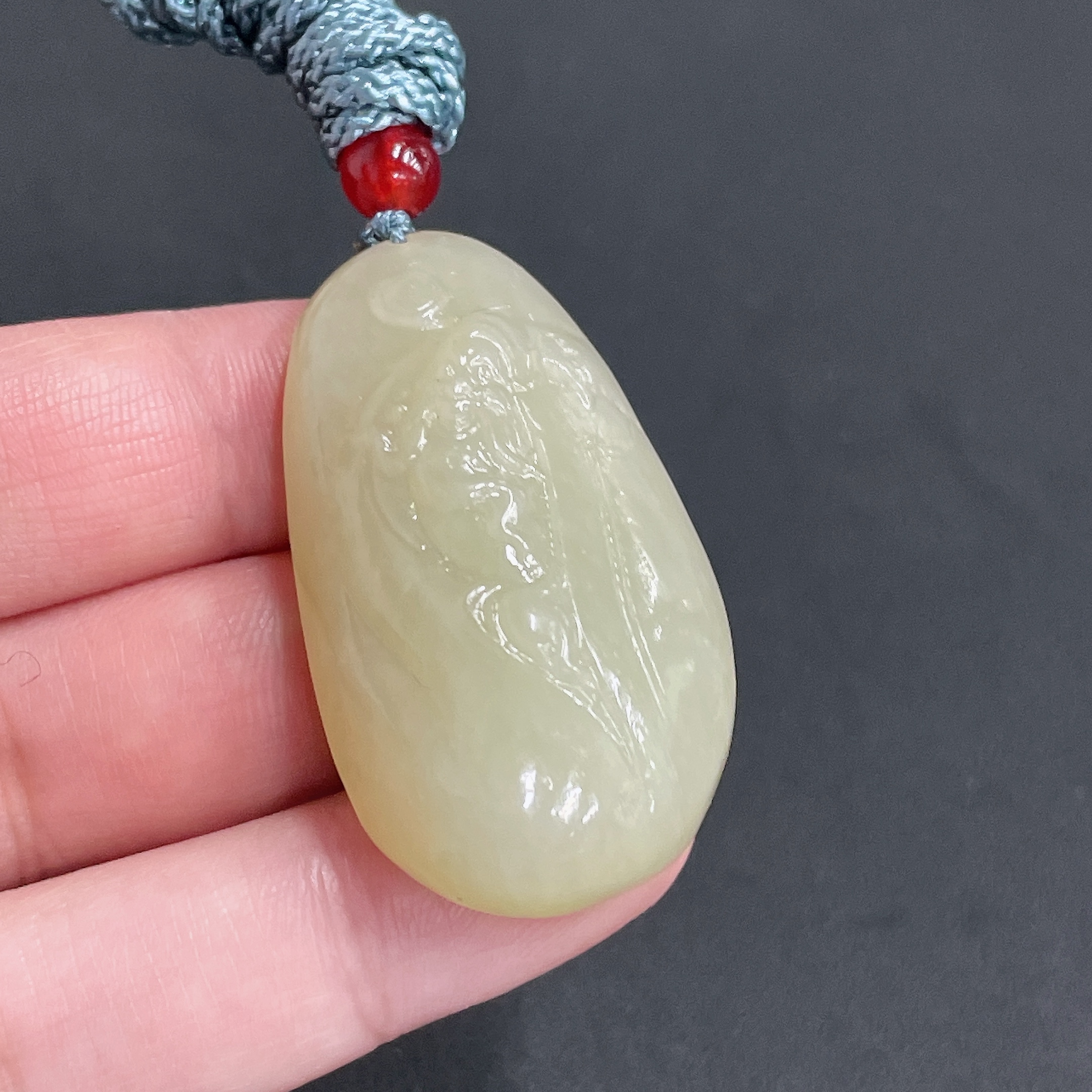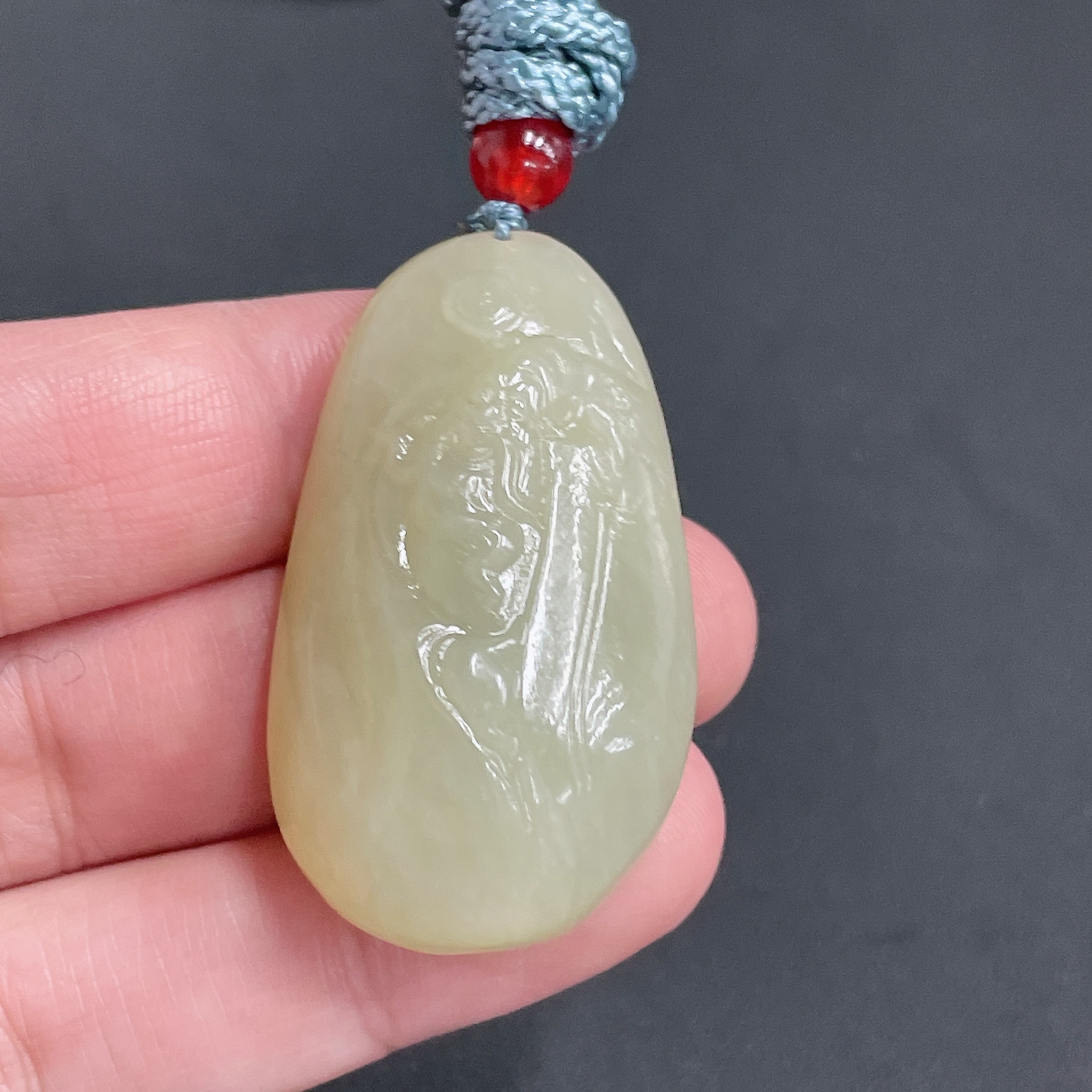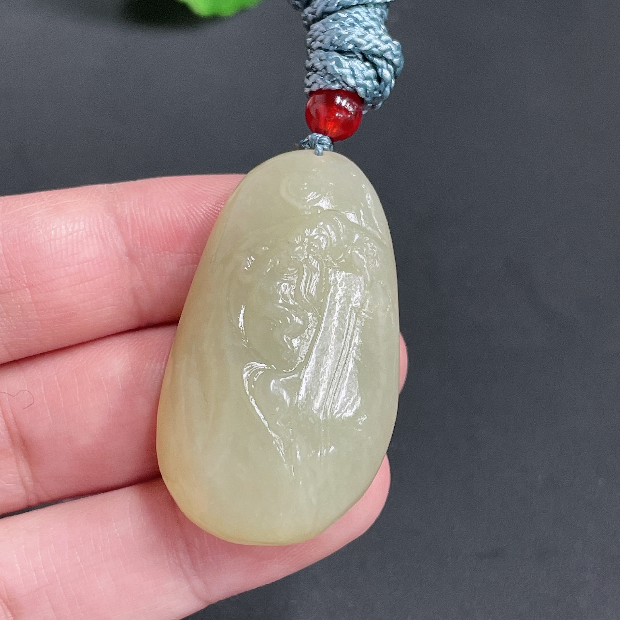 Hetian Jade Pendant - God of Wealth with Cord, Total Weight 21.20g