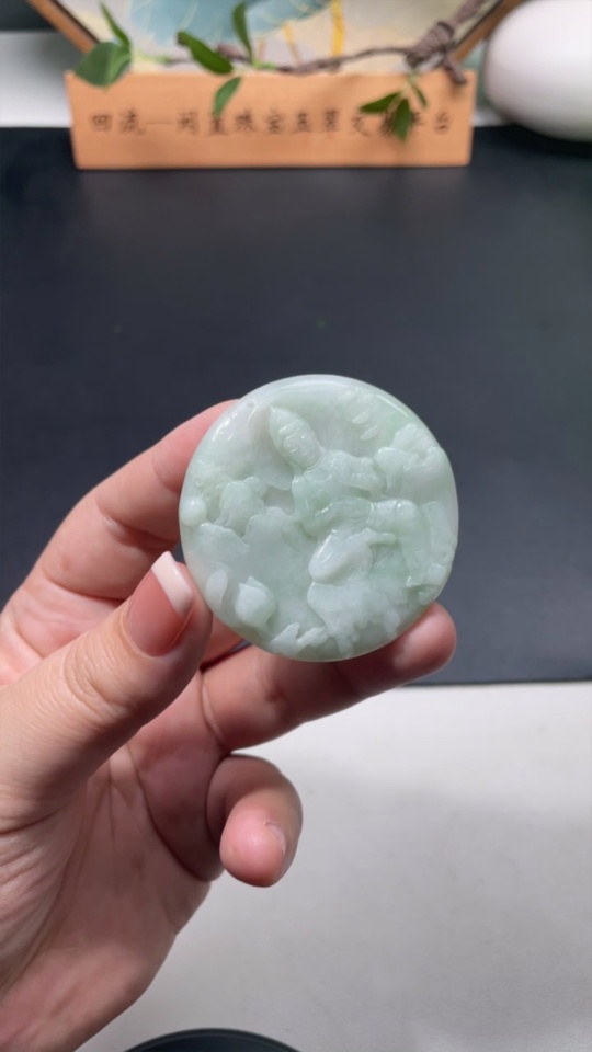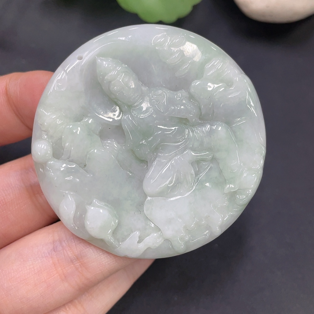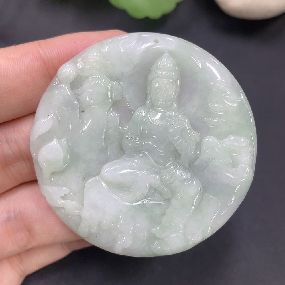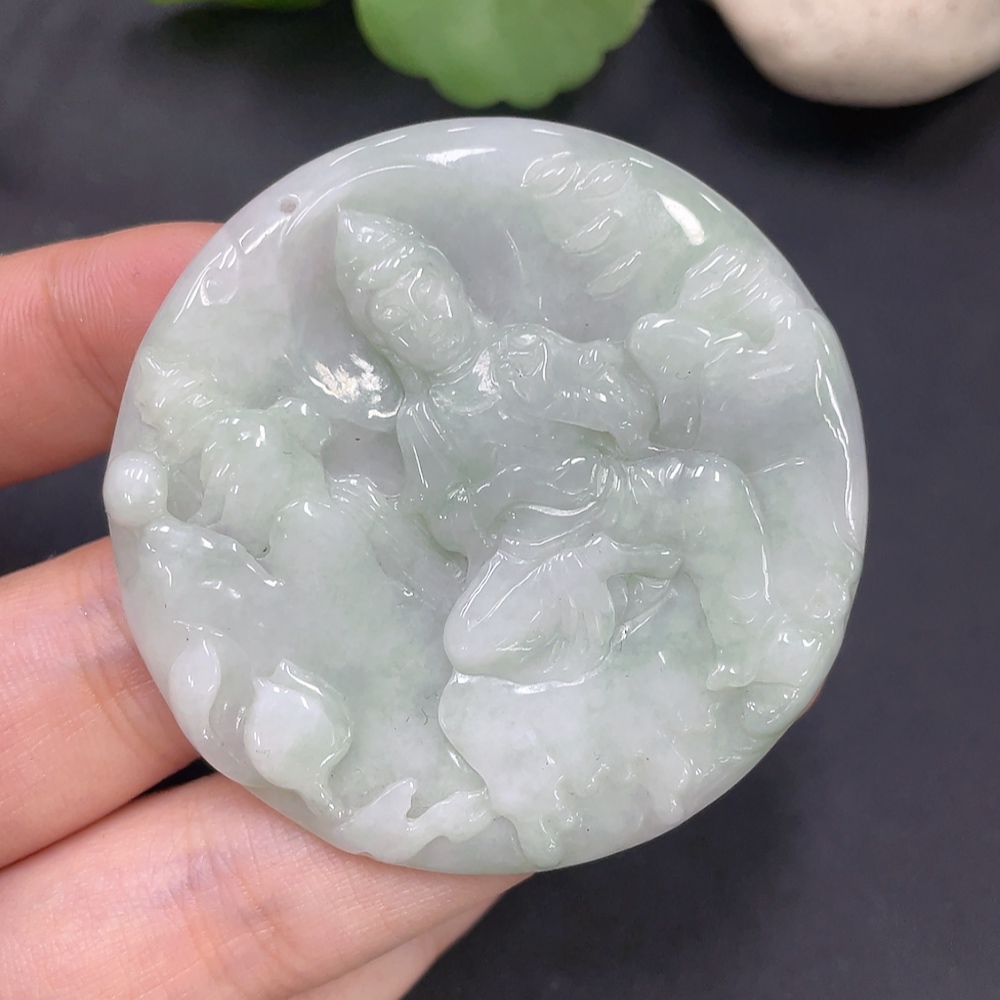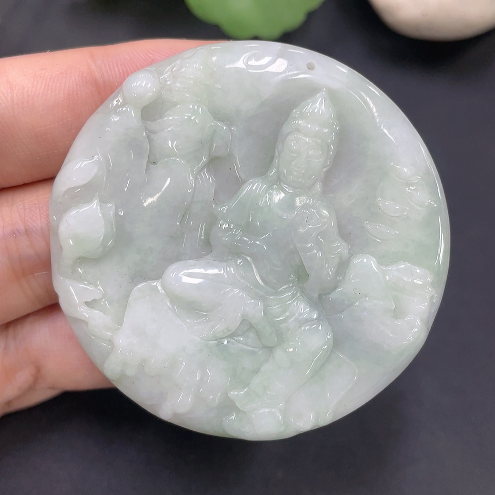 JadeiteLandscape Guanyin Pendant, Total Weight 28.455g