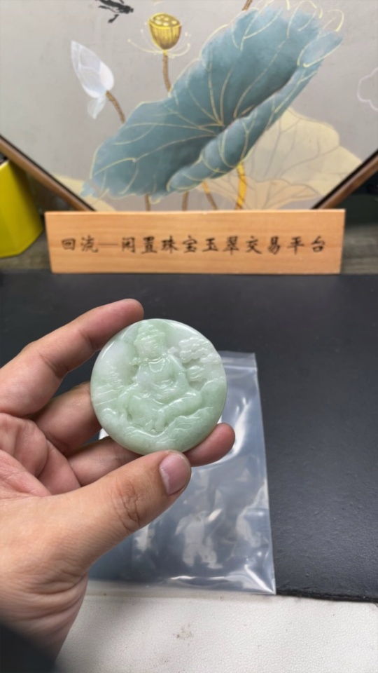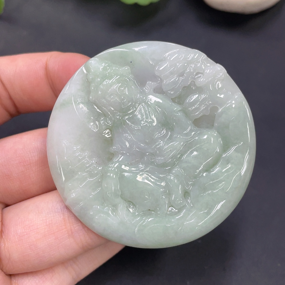 JadeiteLandscape Guanyin Pendant, Total Weight 29.259g