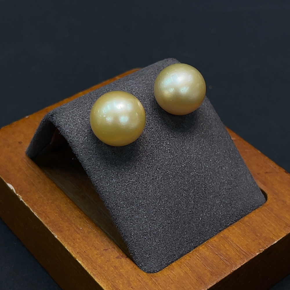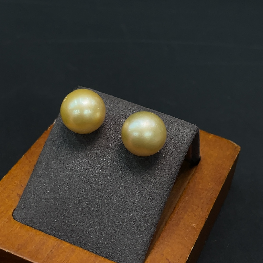 18K Gold Sea Pearl Earrings Approx. 4.56g 11.5mm