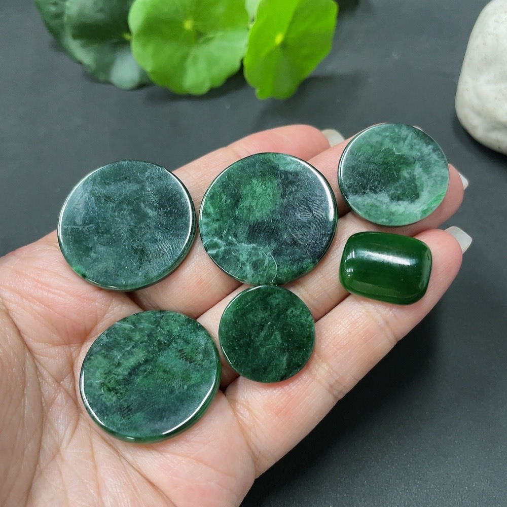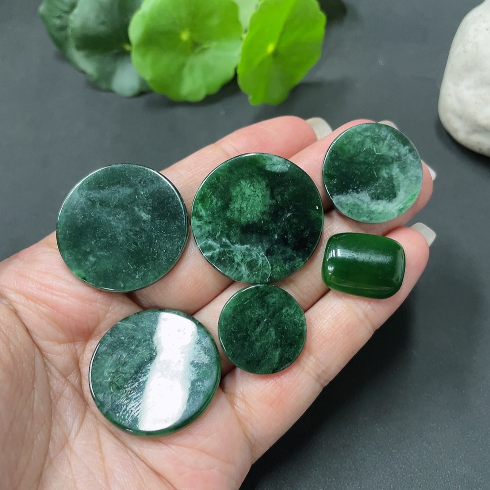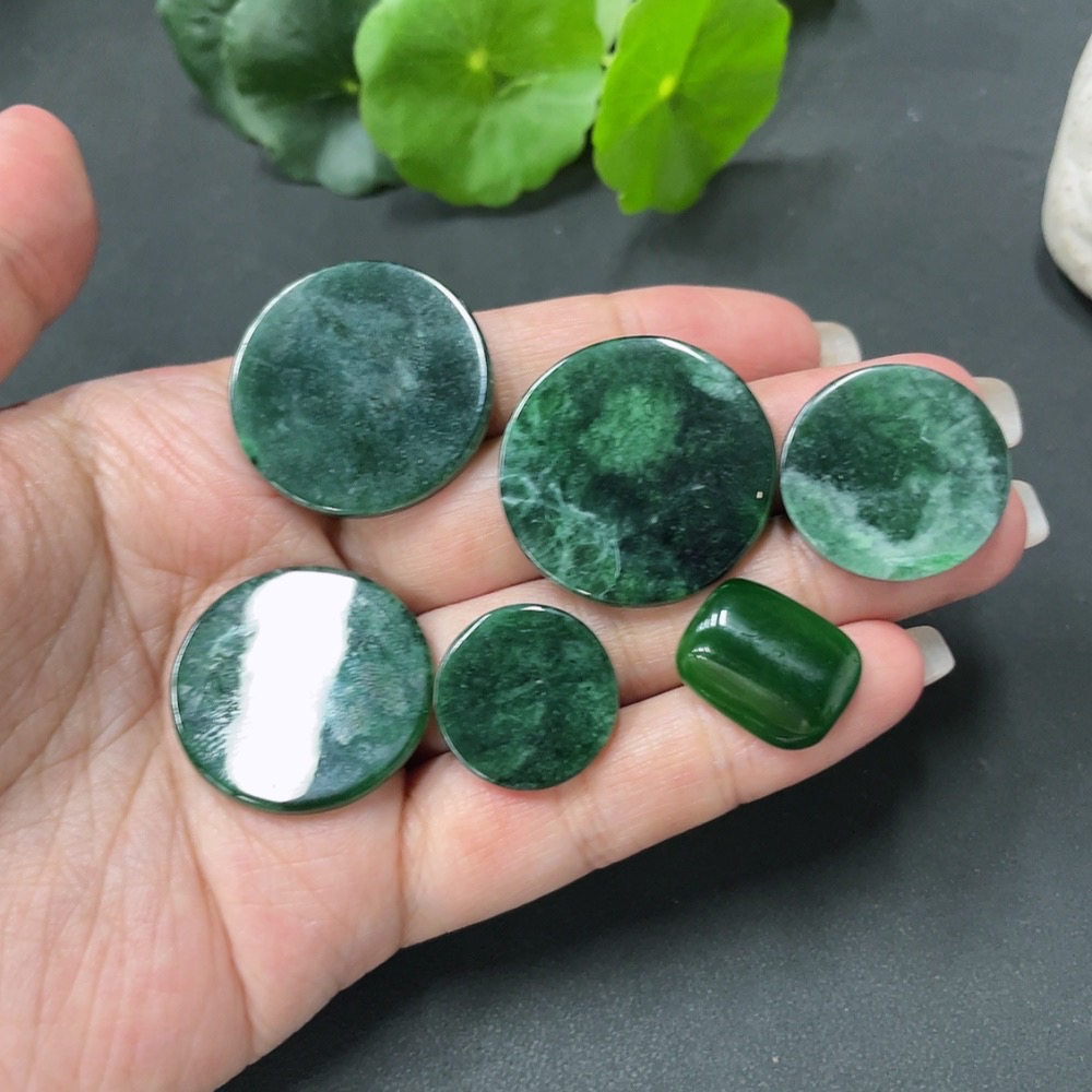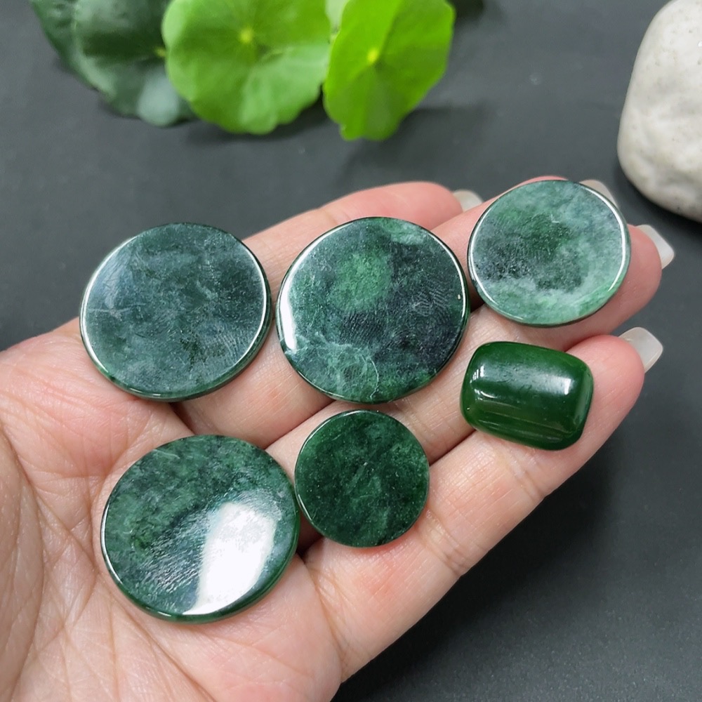 Jadeite Inlaid Piece Plain Pendant Cabochon